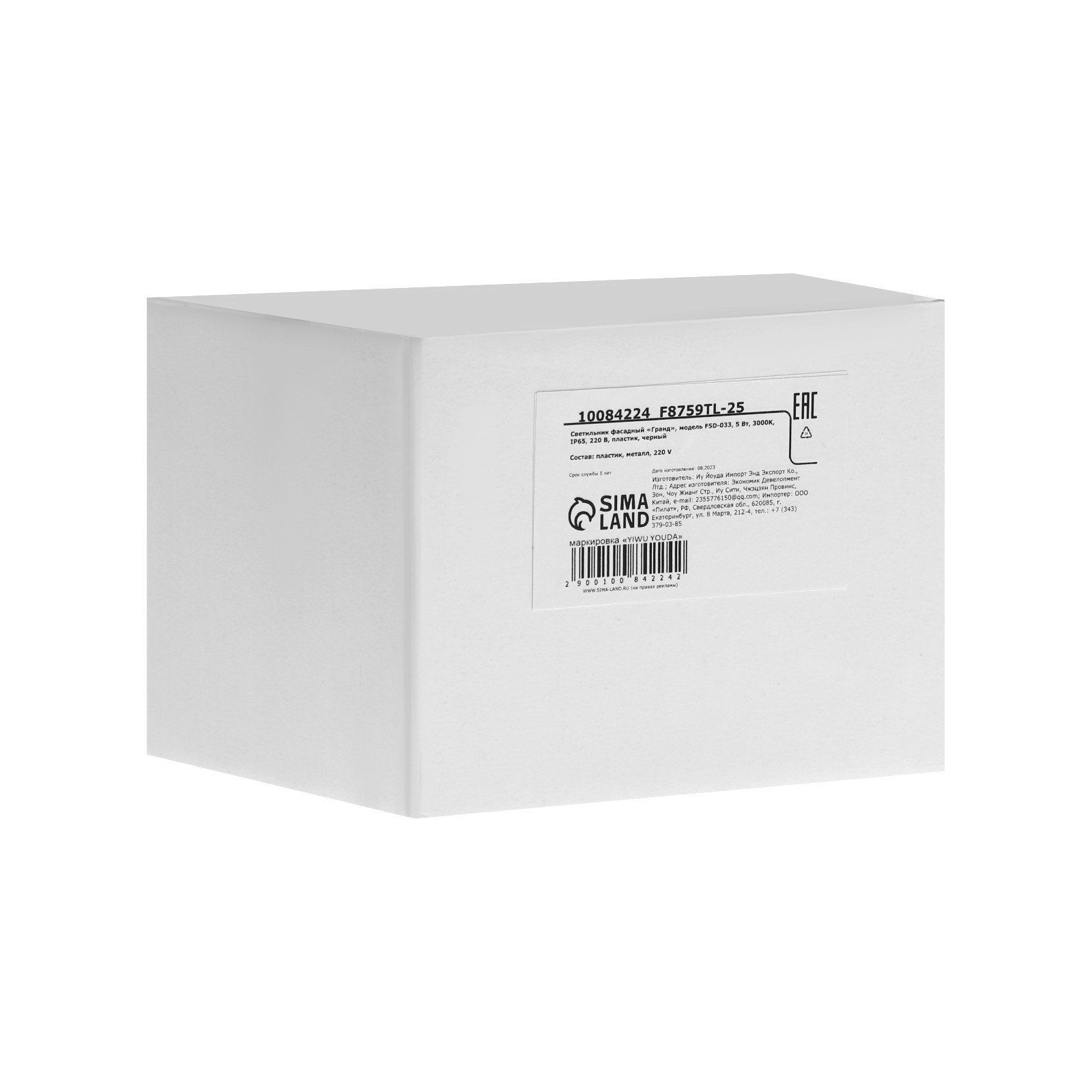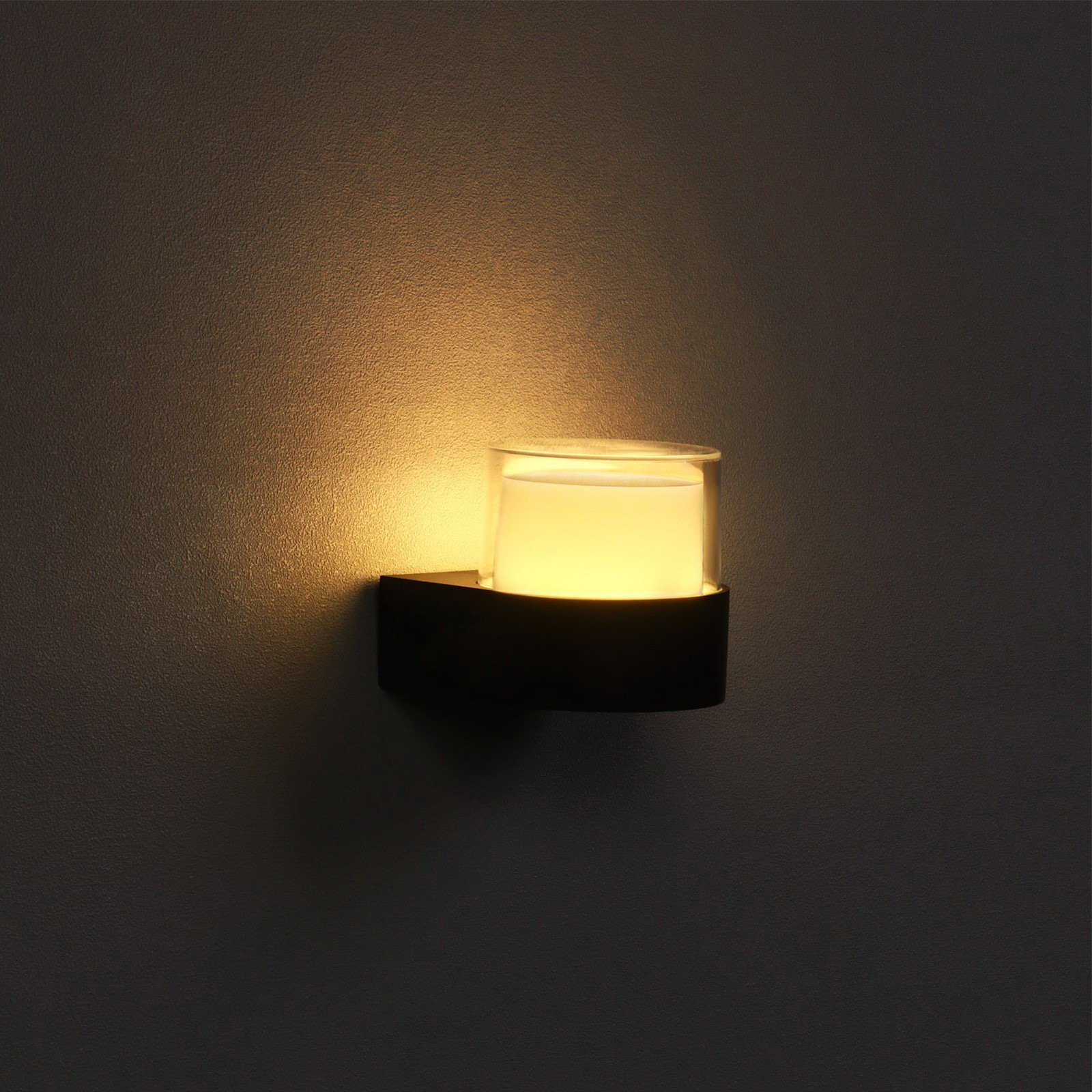 Светильник фасадный "Гранд", 5 Вт, 3000К, IP65, 220 В, пластиковый корпус, чёрный, свечение тёплое белое, 8.5x10x9.5 см., Китай