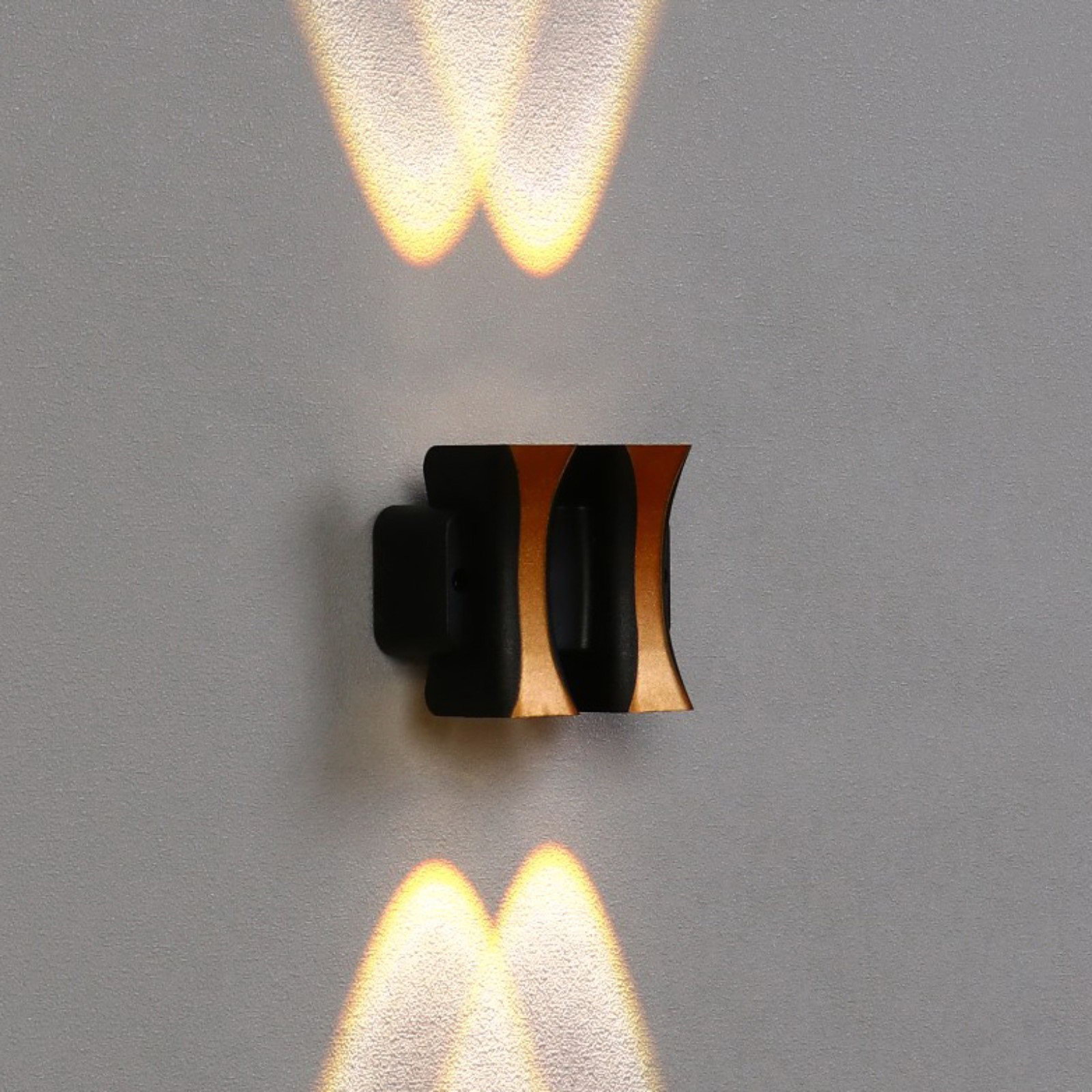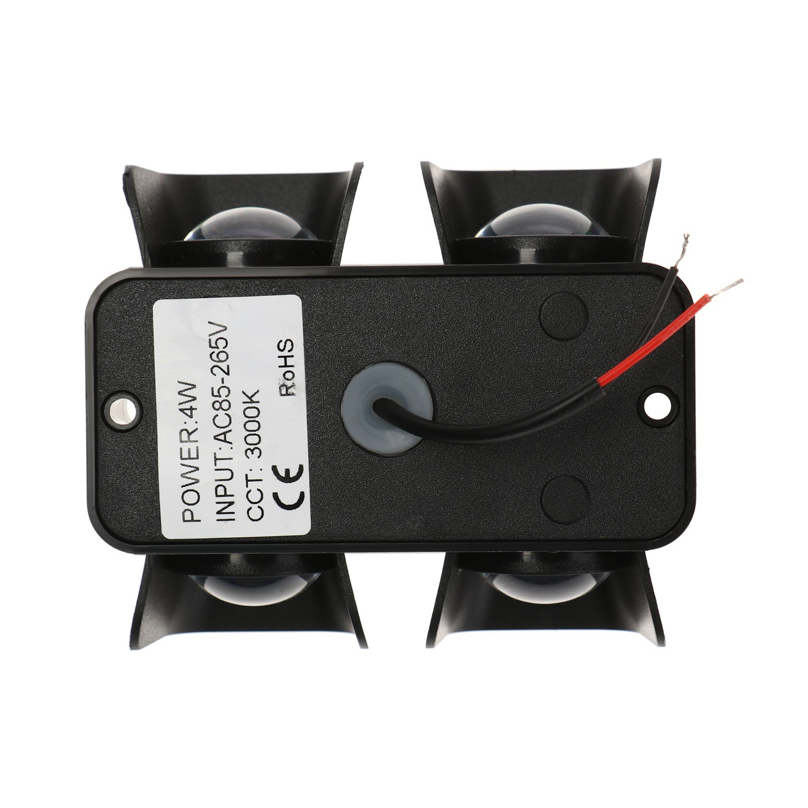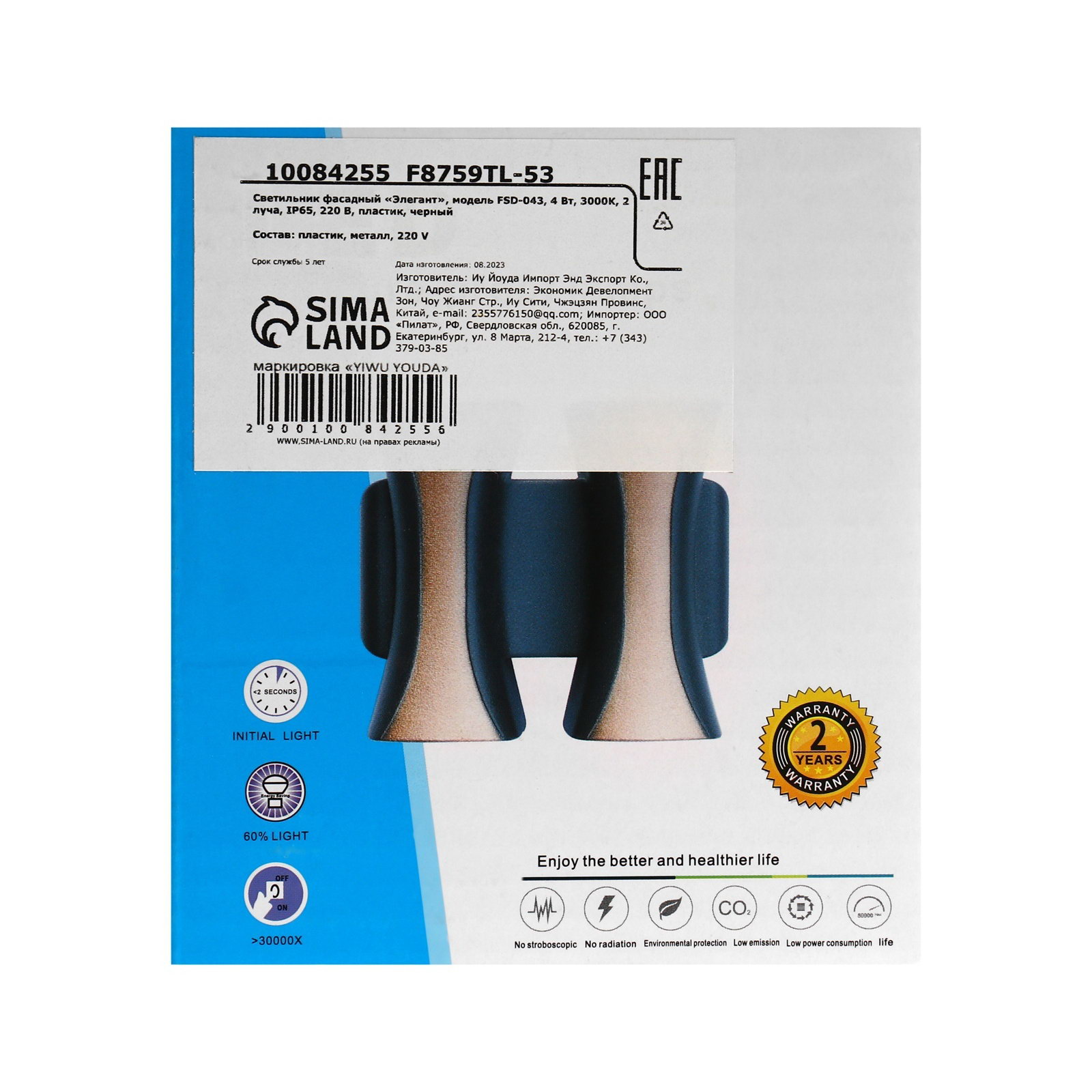 Светильник фасадный "Элегант", 4 Вт, 3000К, 2 луча, IP65, 220 В, пластиковый корпус, чёрный, свечение тёплое белое, 6x10x9 см., Китай
