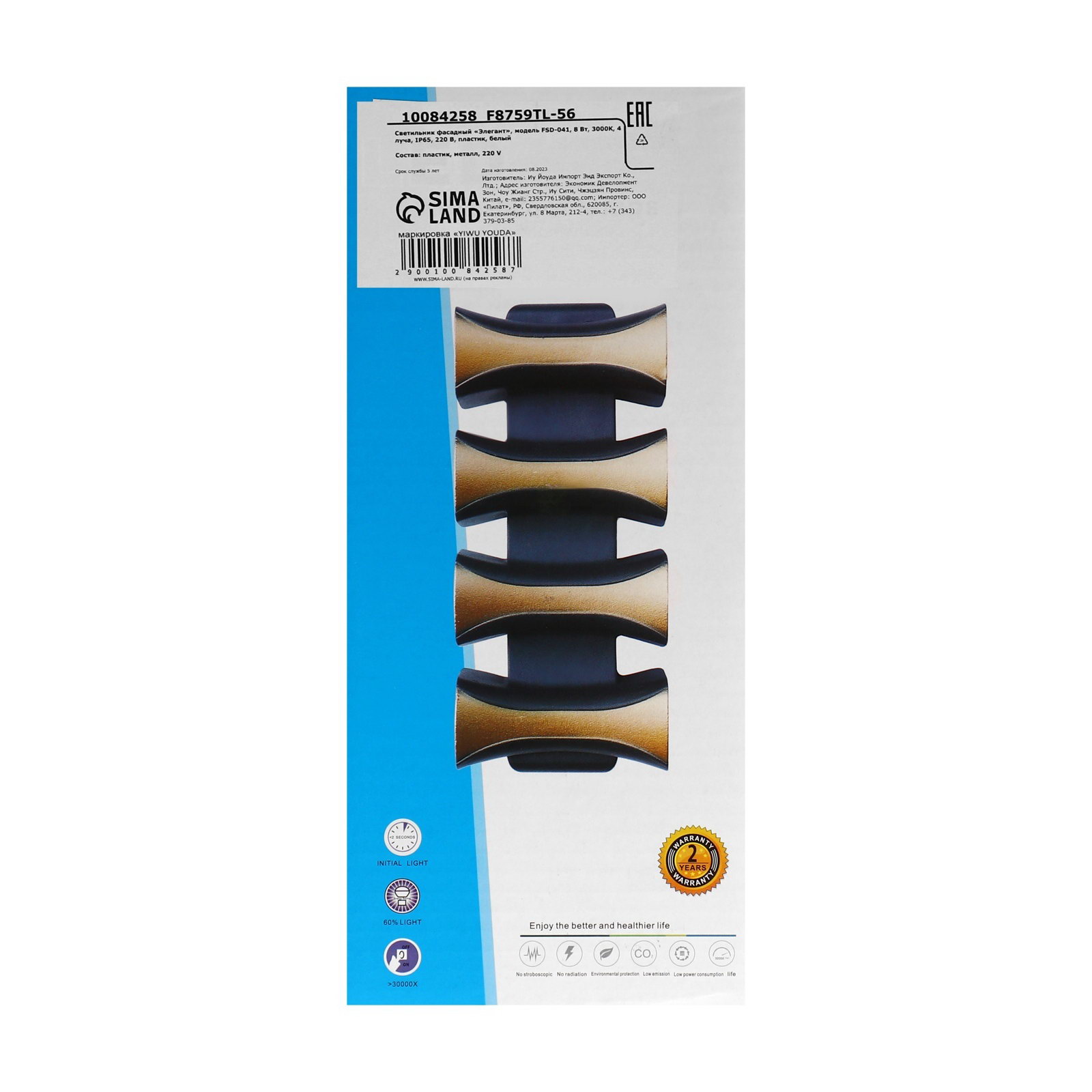 Светильник фасадный "Элегант", 8 Вт, 3000К, 4 луча, IP65, 220 В, пластиковый корпус, белый, свечение тёплое белое, 6x21x9 см., Китай