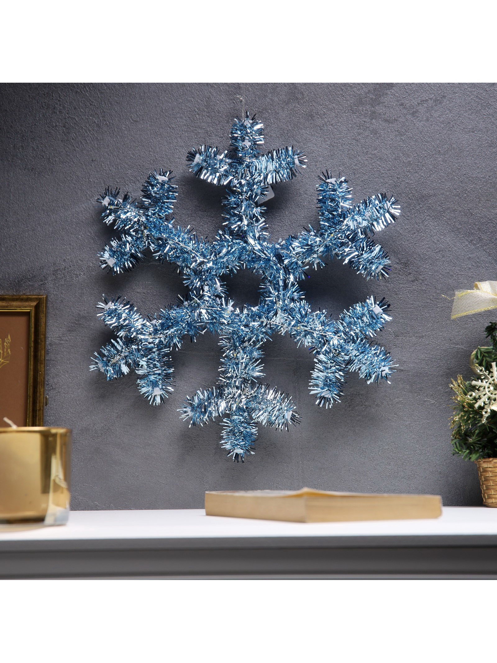 Светодиодная фигура из мишуры "Снежинка голубая" 32x2 см, 20 LED, батарейки AG10x3, 32x2x32 см., Luazon Lighting, Китай