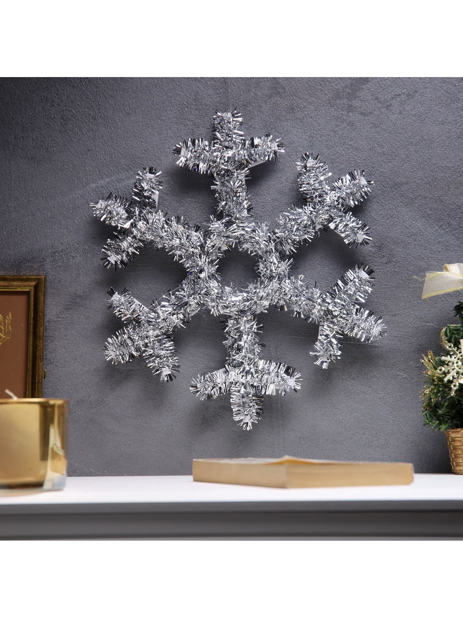 Светодиодная фигура из мишуры "Снежинка серебристая" 32x2 см, 20 LED, батарейки AG10x3, 32x2x32 см., Luazon Lighting, Китай