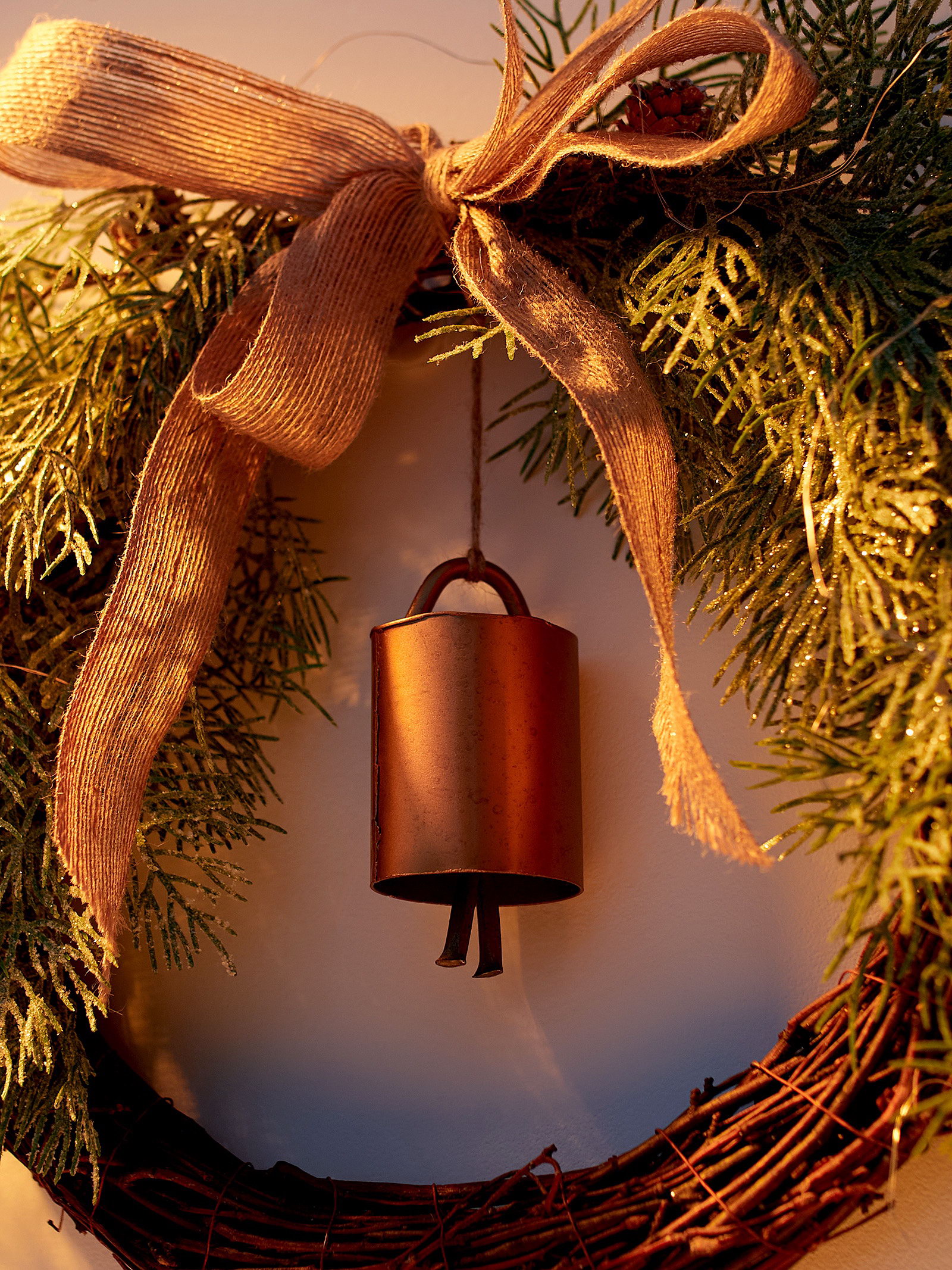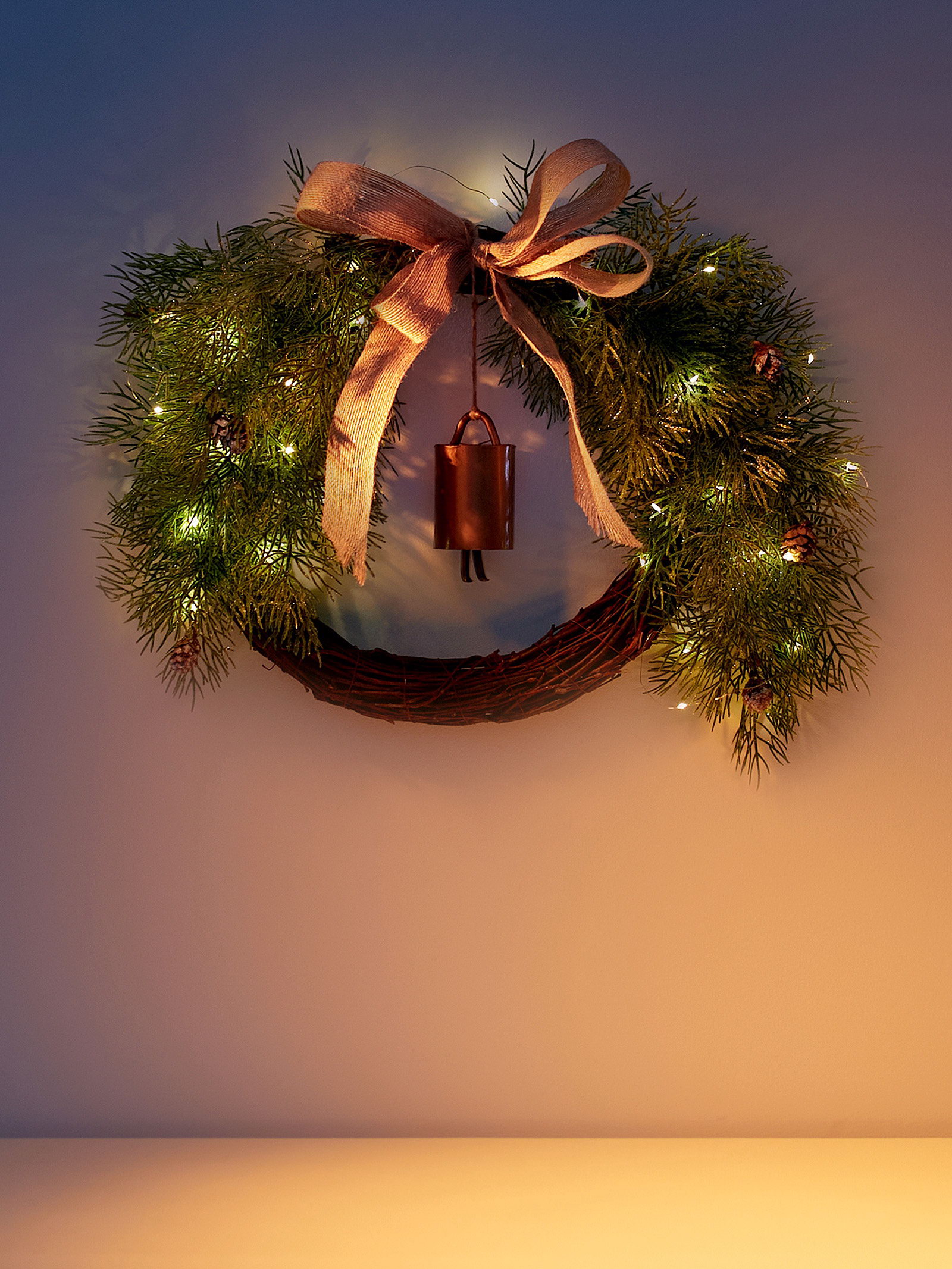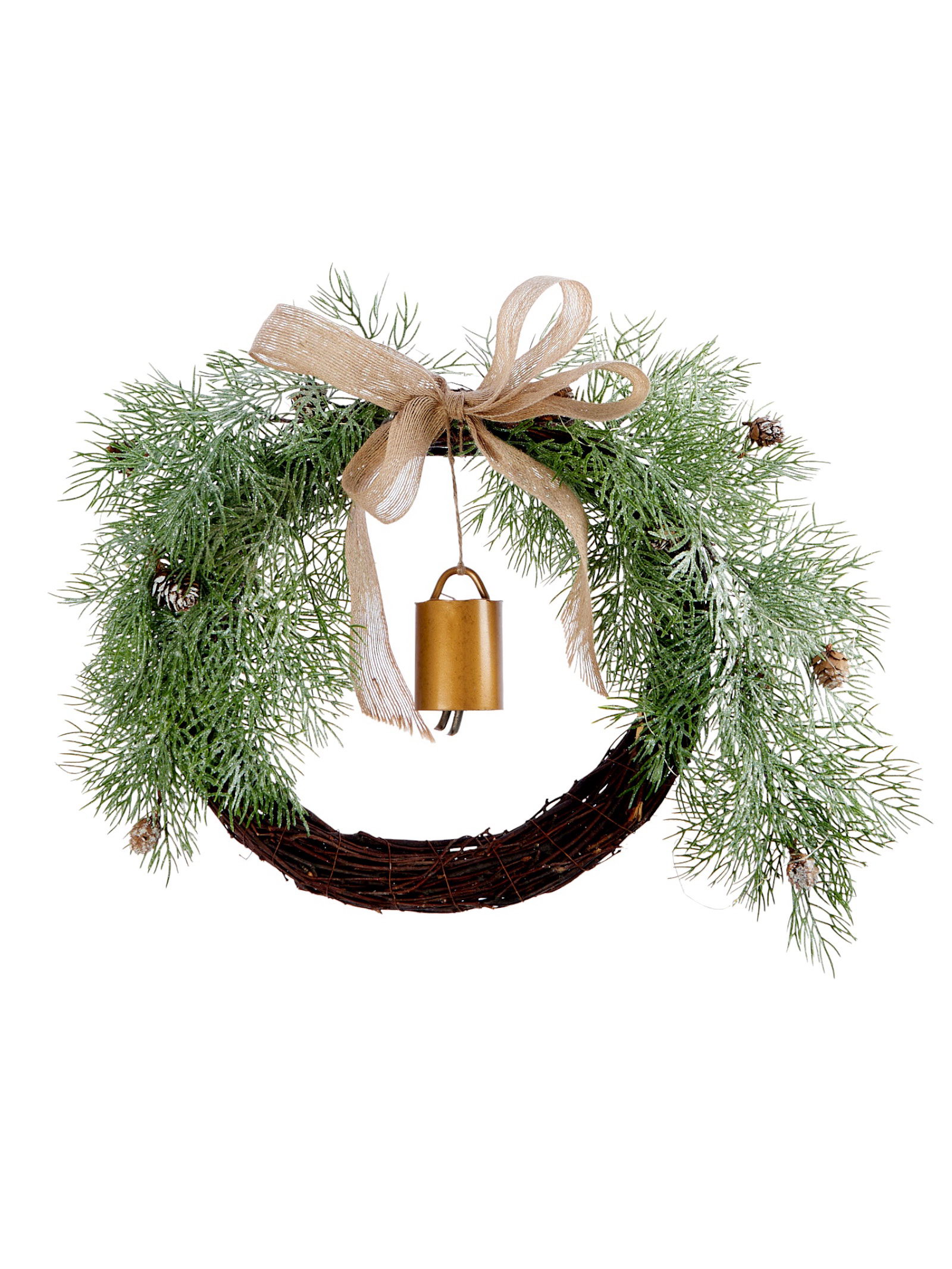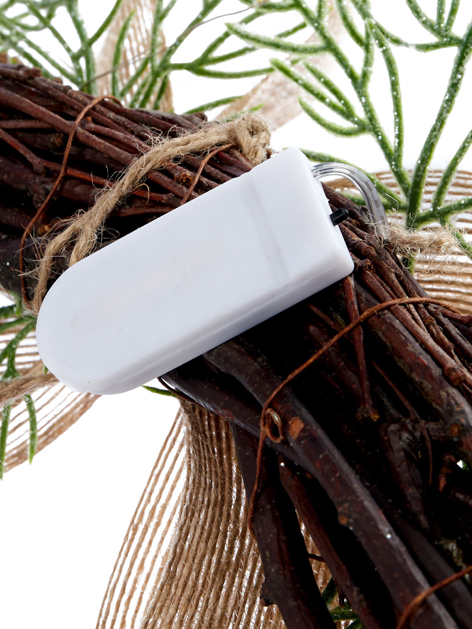 Декоративный венок "Ель с колокольчиком", d=55 см, 30LED, от батареек CR2032x2, свечение тёплое белое, 55x55x6 см., Luazon Lighting, Китай