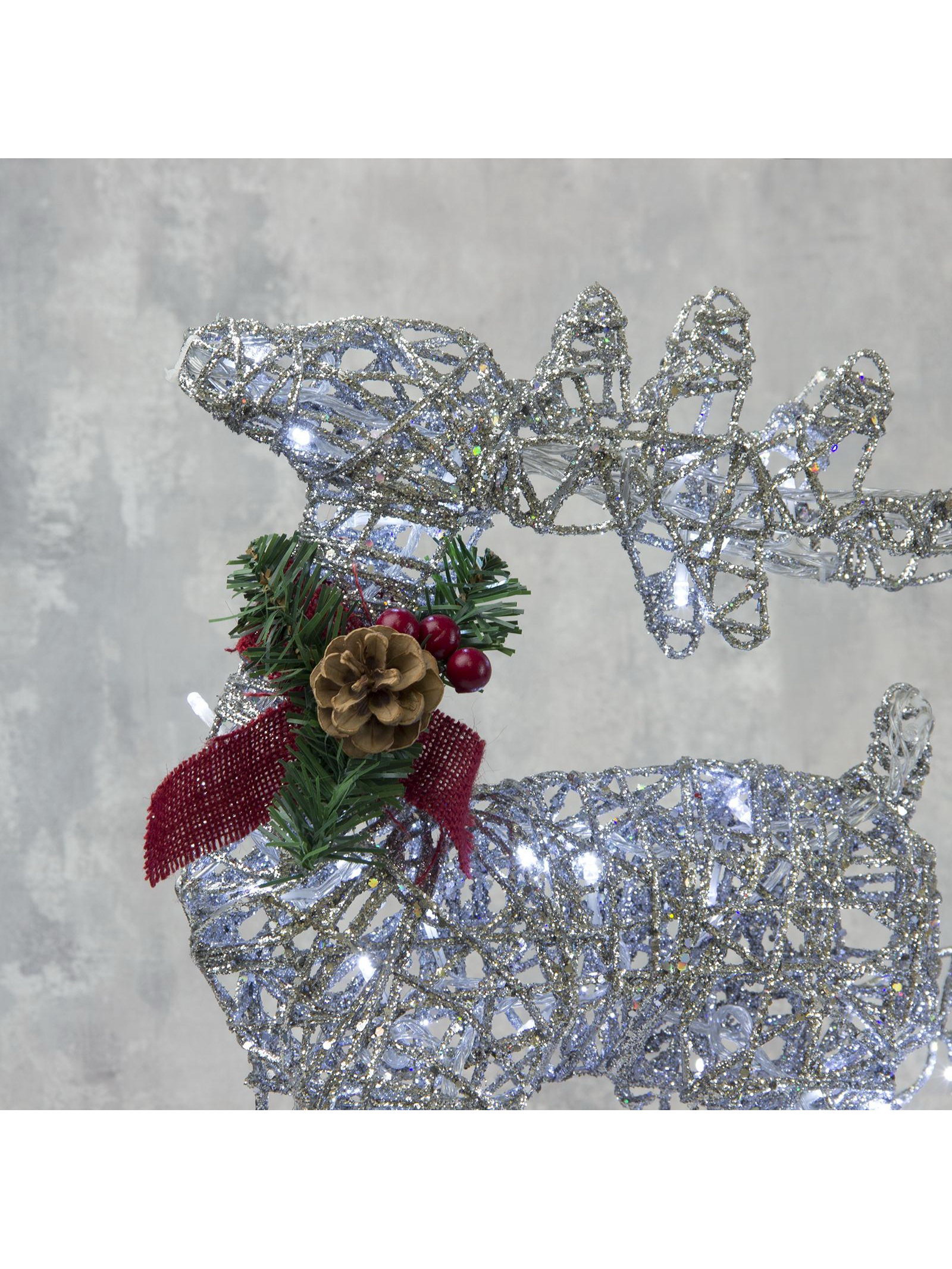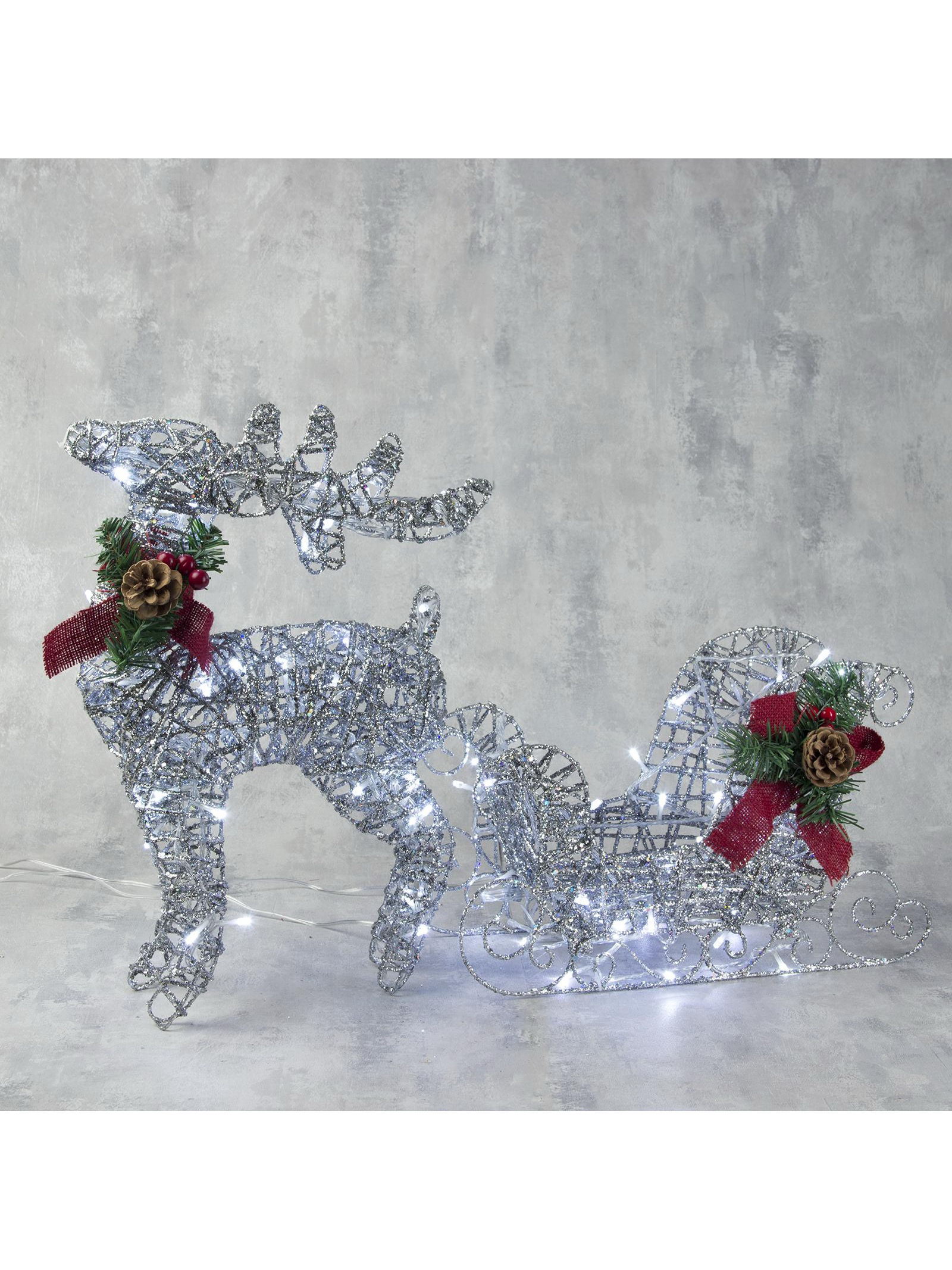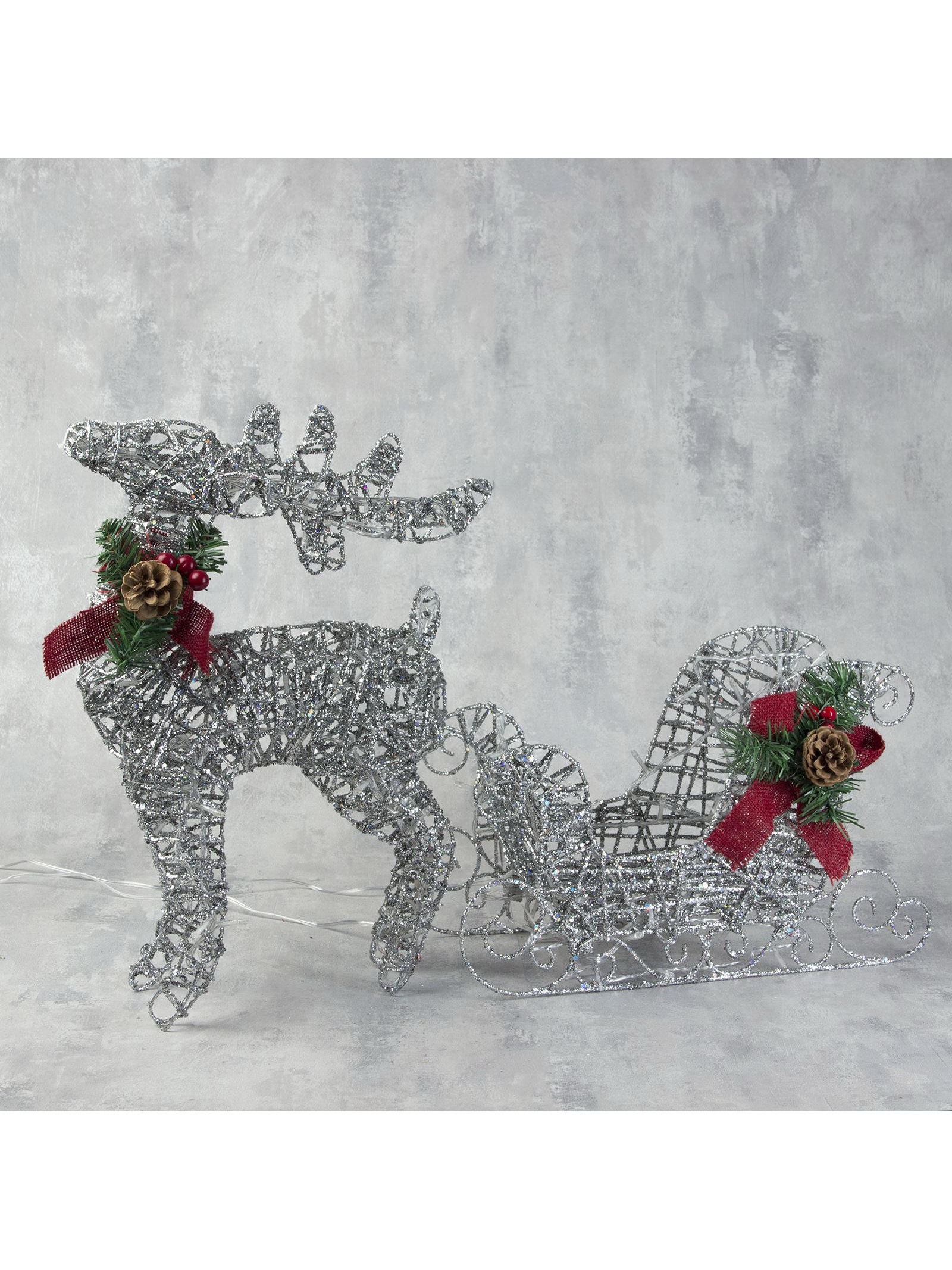 Светодиодная фигура "Олень с санями серебристый", олень: 40x50x16 см, сани: 40x25x10 см, металл, 220 В, свечение белое, 30x80x10 см., Luazon Lighting, Китай