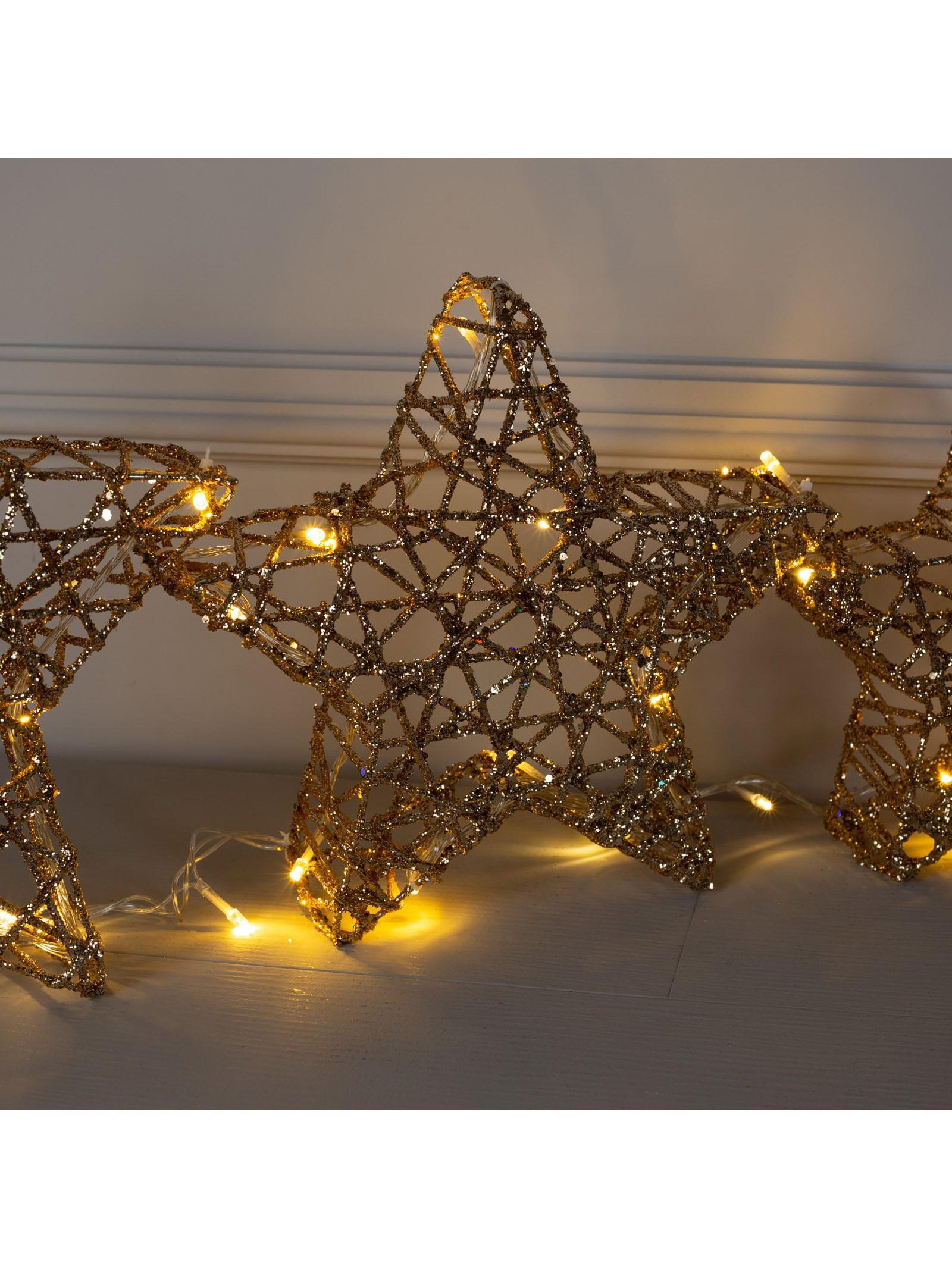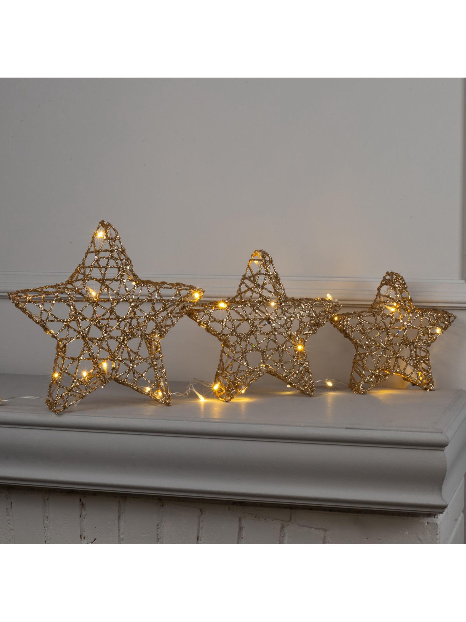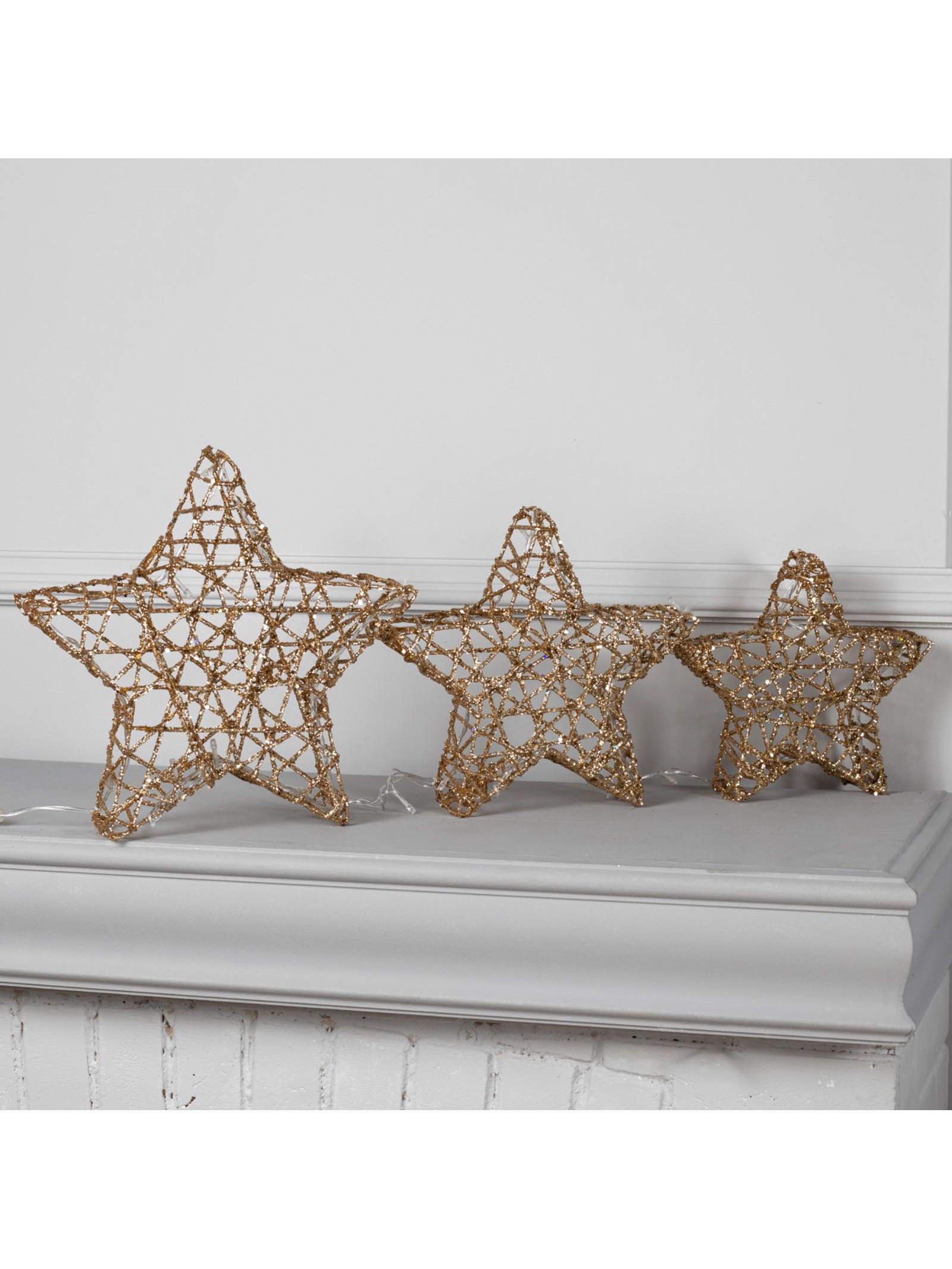 Светодиодная фигура "Звёзды золотистые" 20, 25, 30 см, металл, 220 В, свечение тёплое белое, 30x30x20 см., Luazon Lighting, Китай