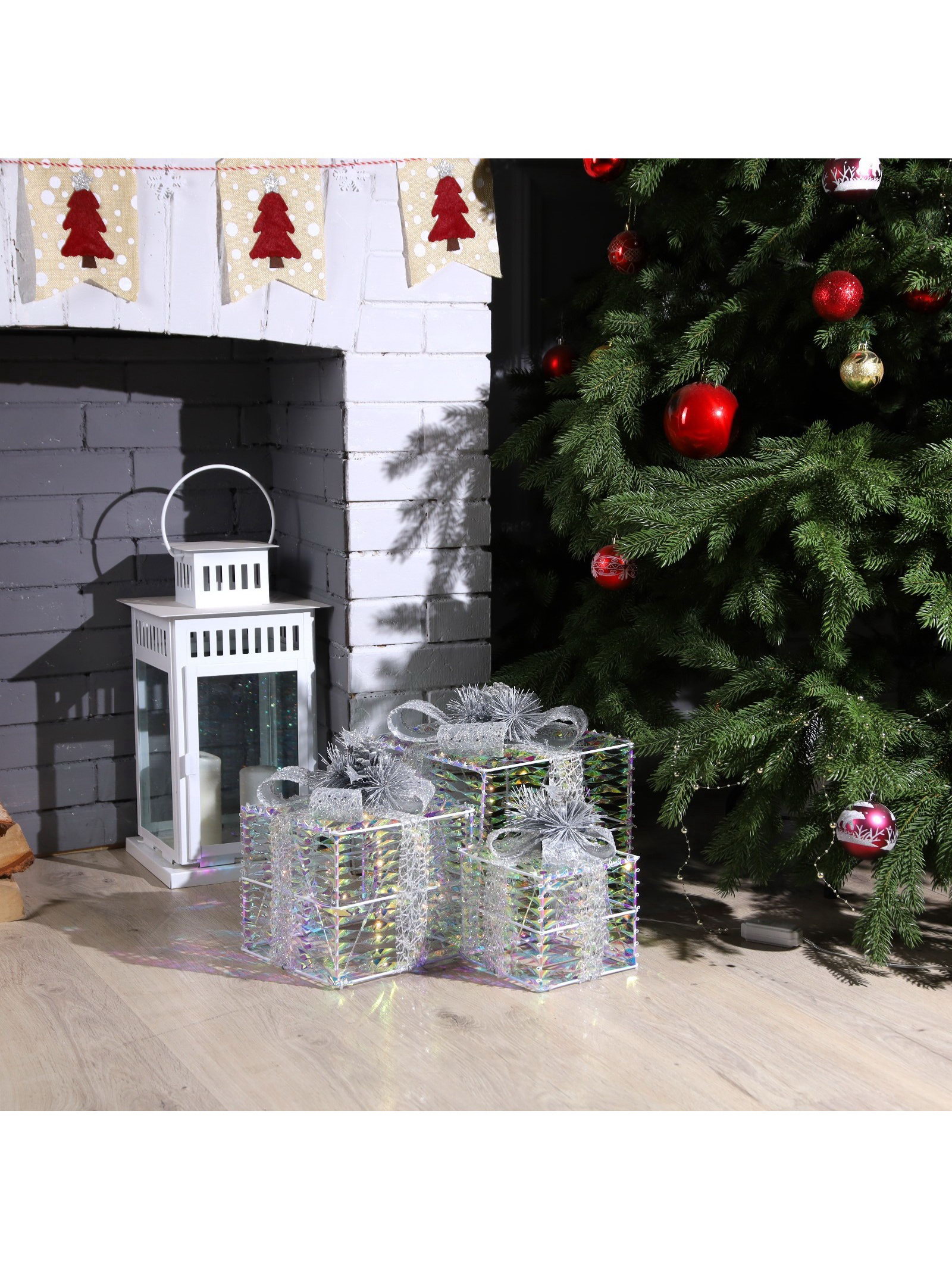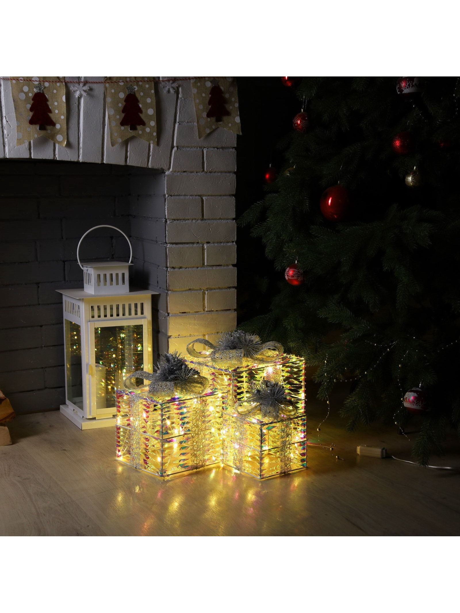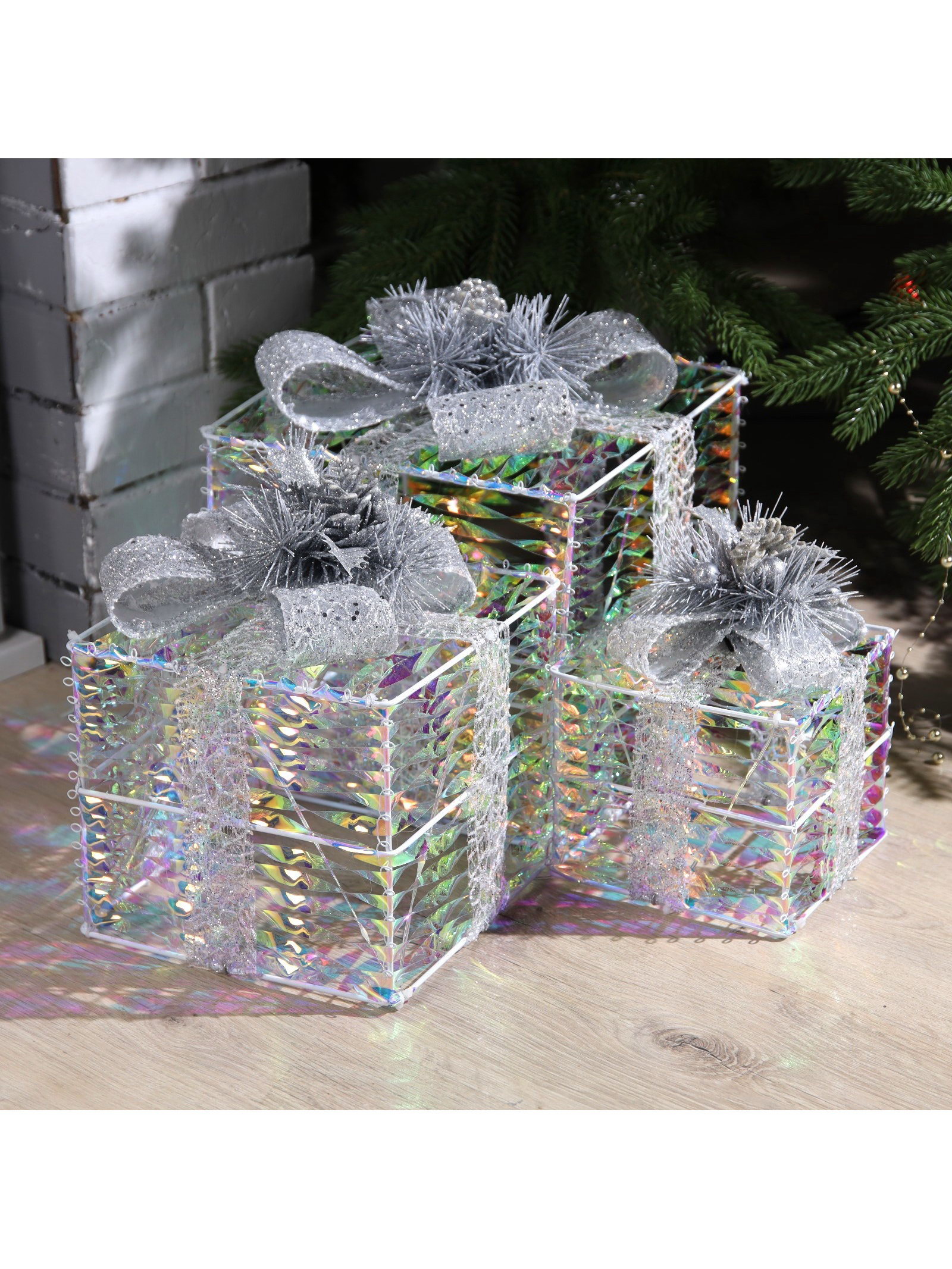 Светодиодная фигура "Блестящие подарки" 15, 20, 25 см, текстиль, металл, 220 В, свечение тёплое белое, Luazon Lighting, Китай