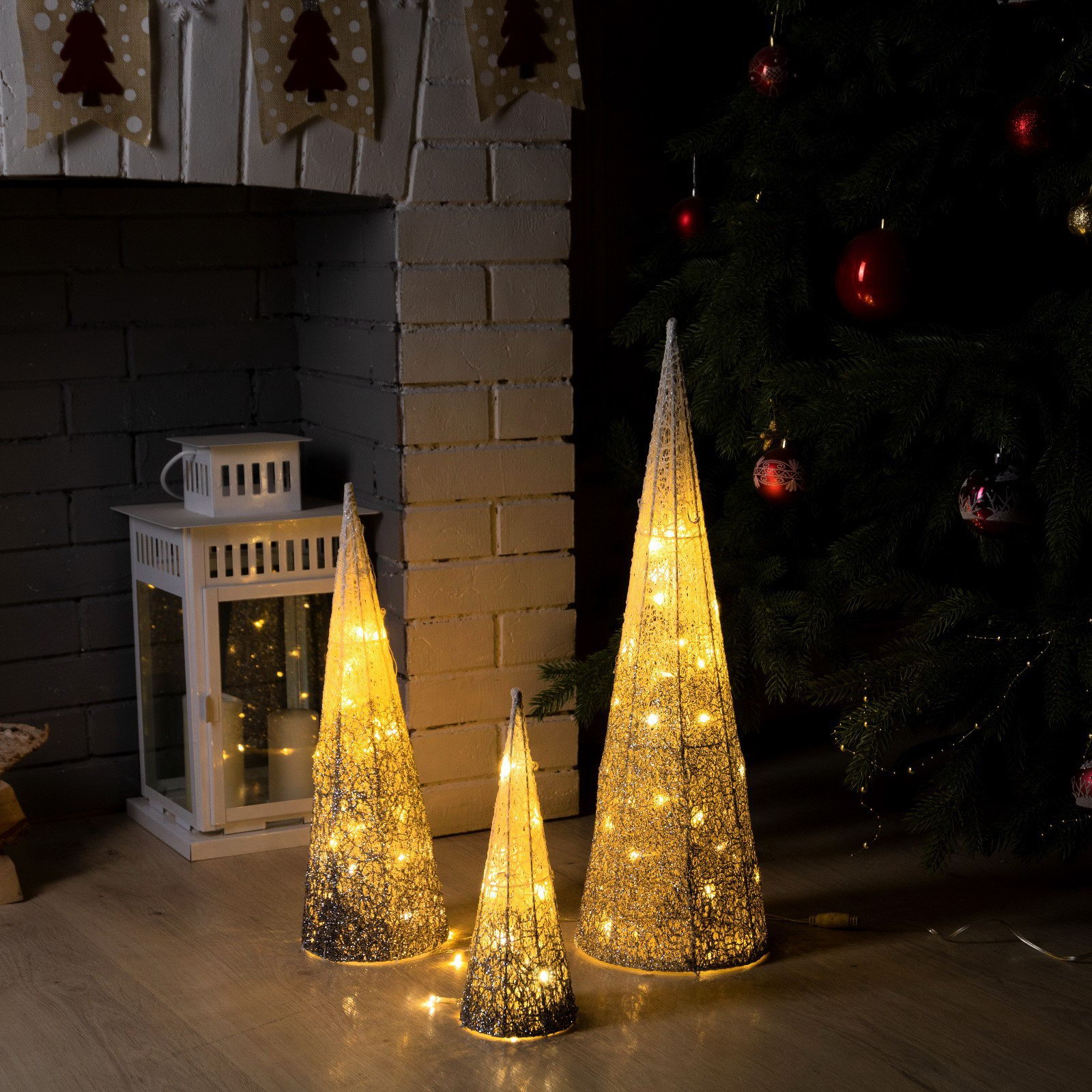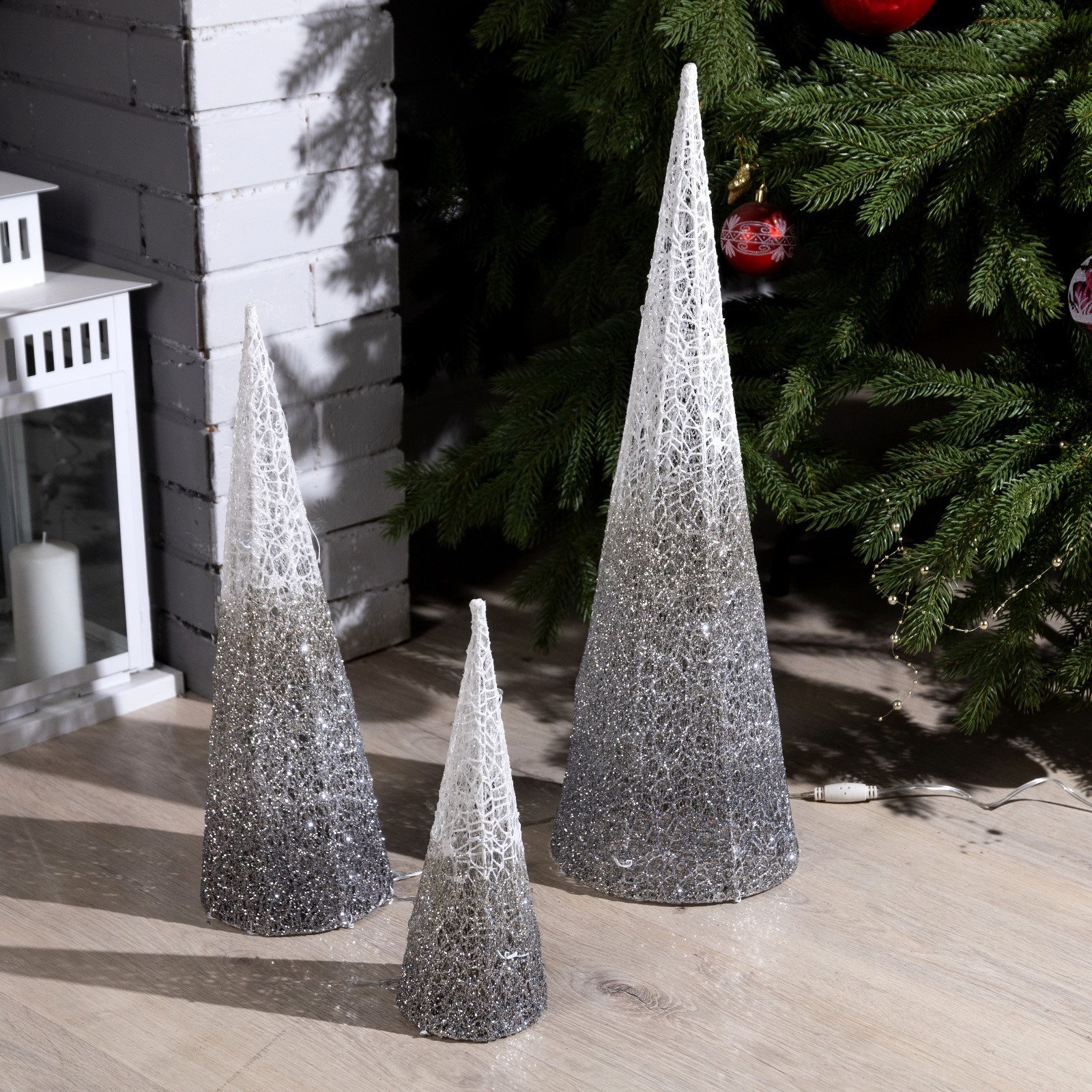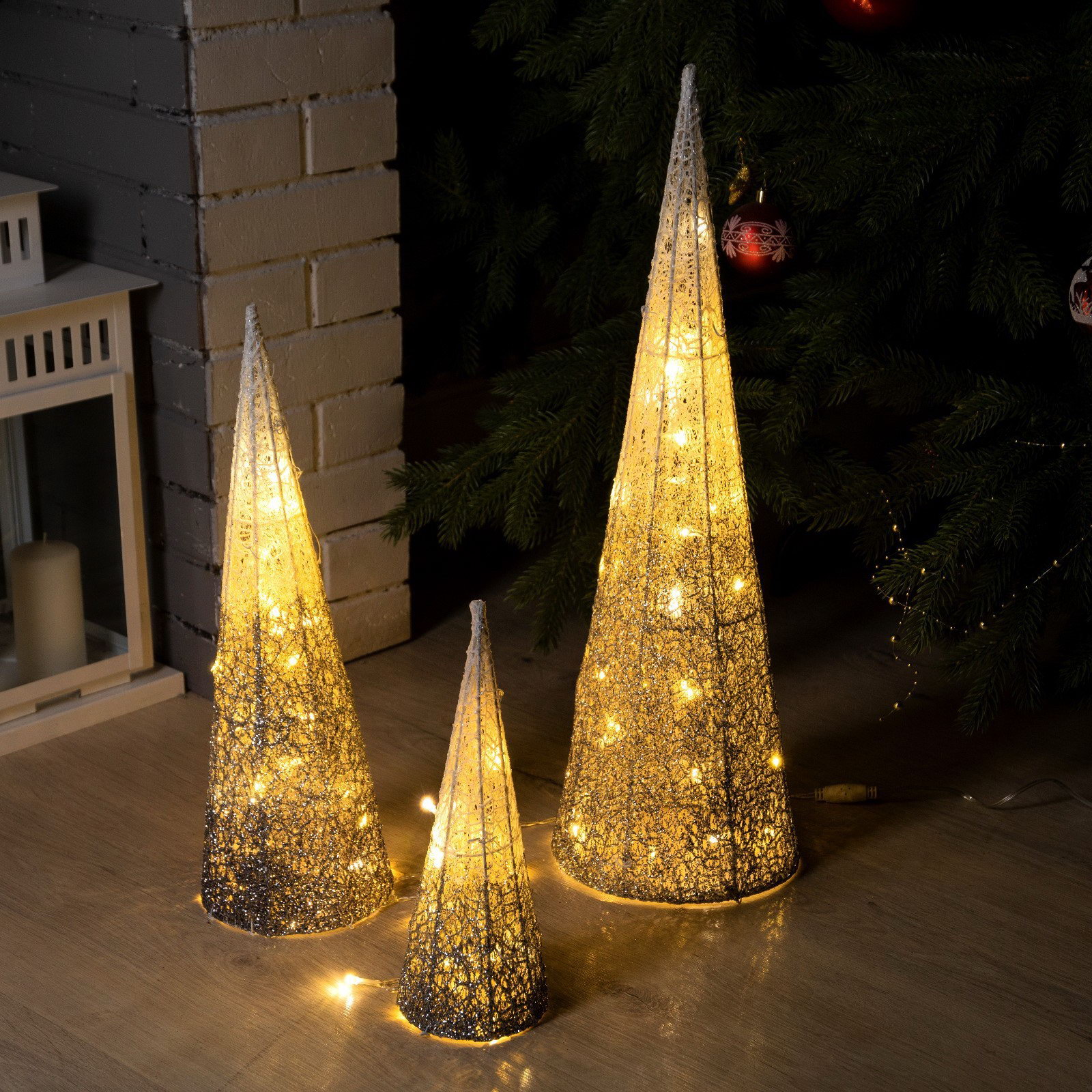 Светодиодная фигура "Серебристые конусы" 30, 45, 60 см, текстиль, металл, 220 В, свечение тёплое белое, 25x25x25 см., Luazon Lighting, Китай