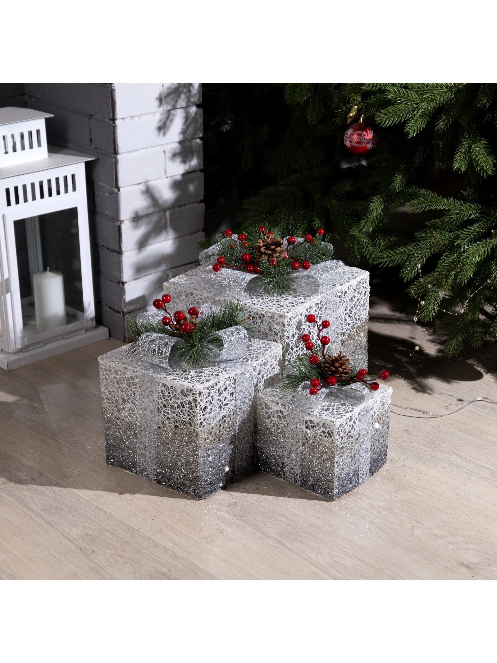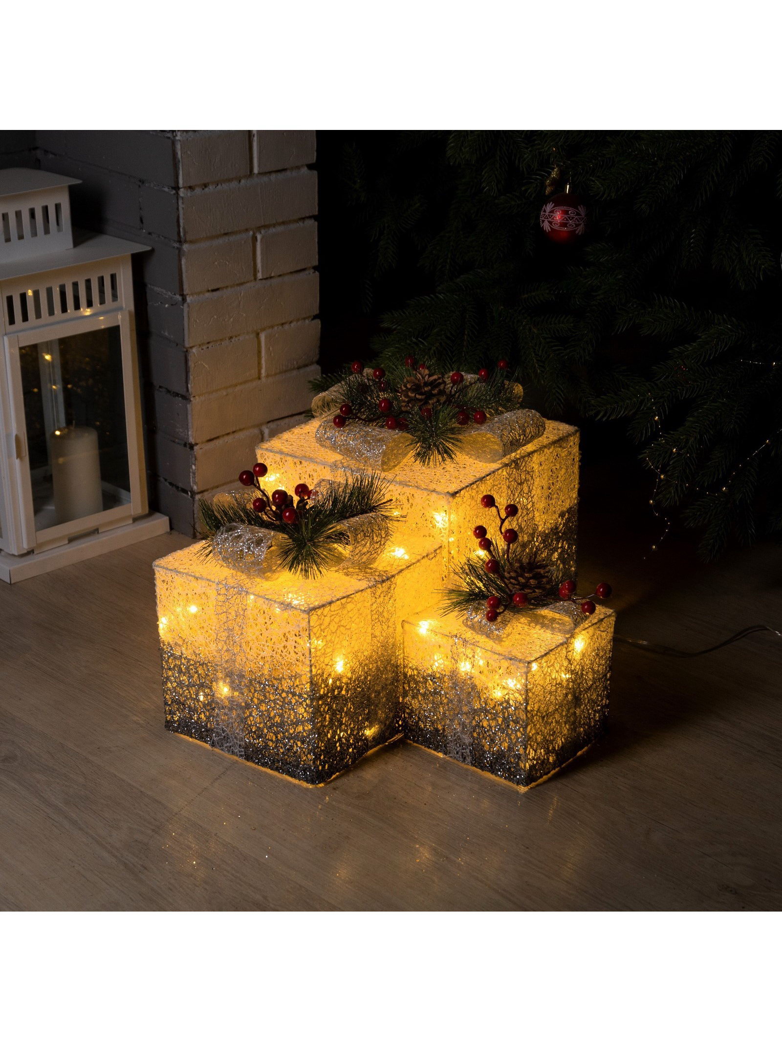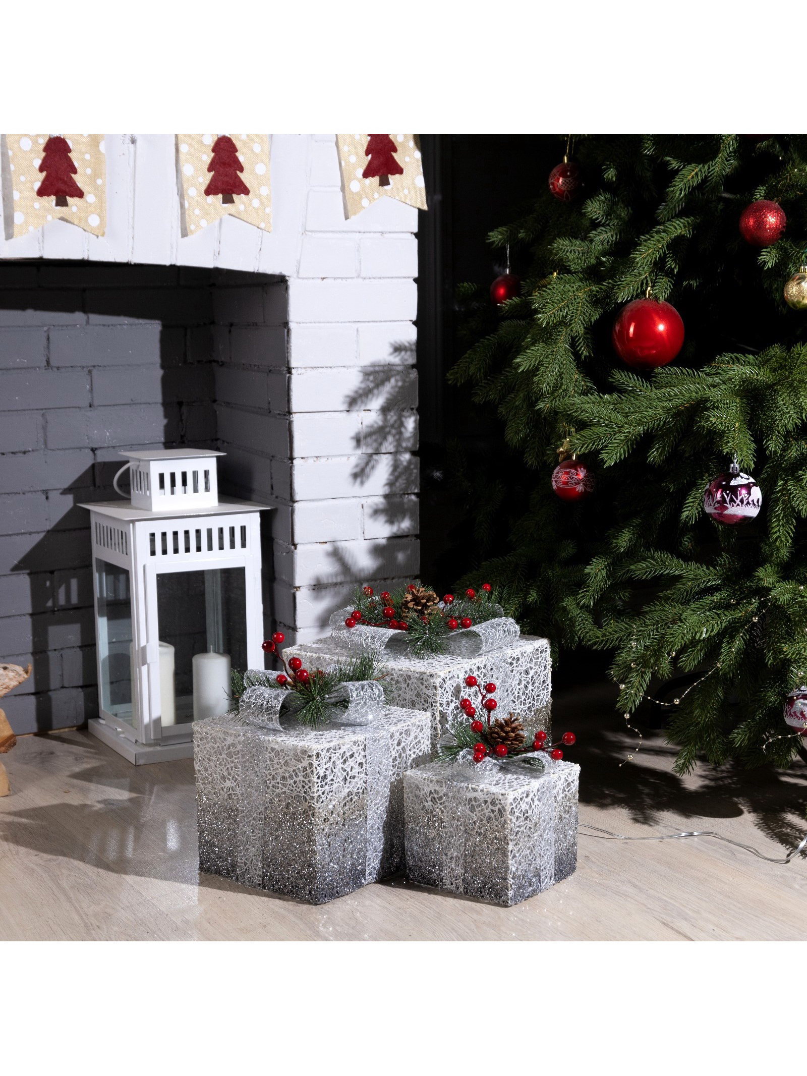 Светодиодная фигура "Серебристые подарки" 15, 20, 25 см, текстиль, металл, 220 В, свечение тёплое белое, Luazon Lighting, Китай
