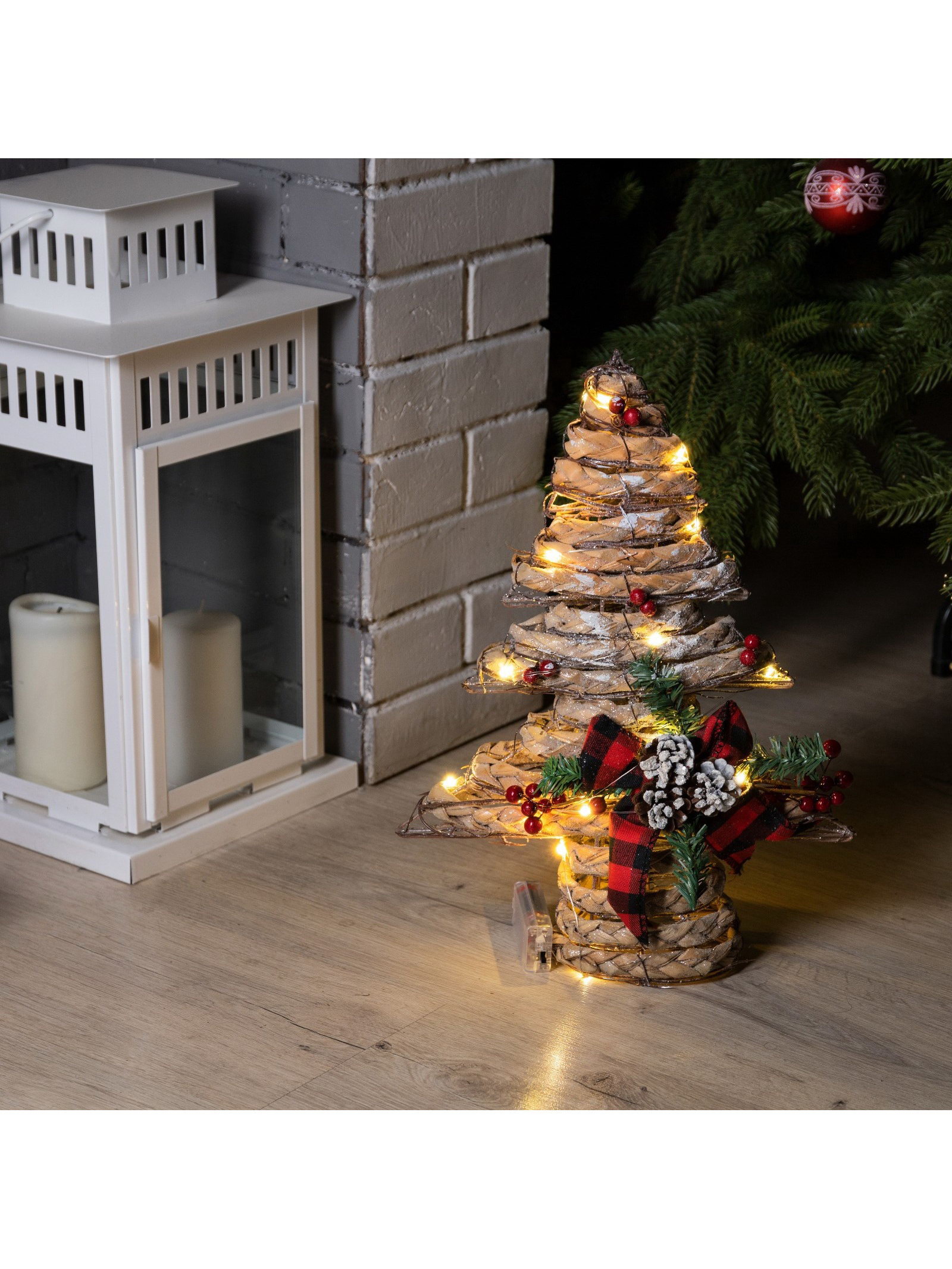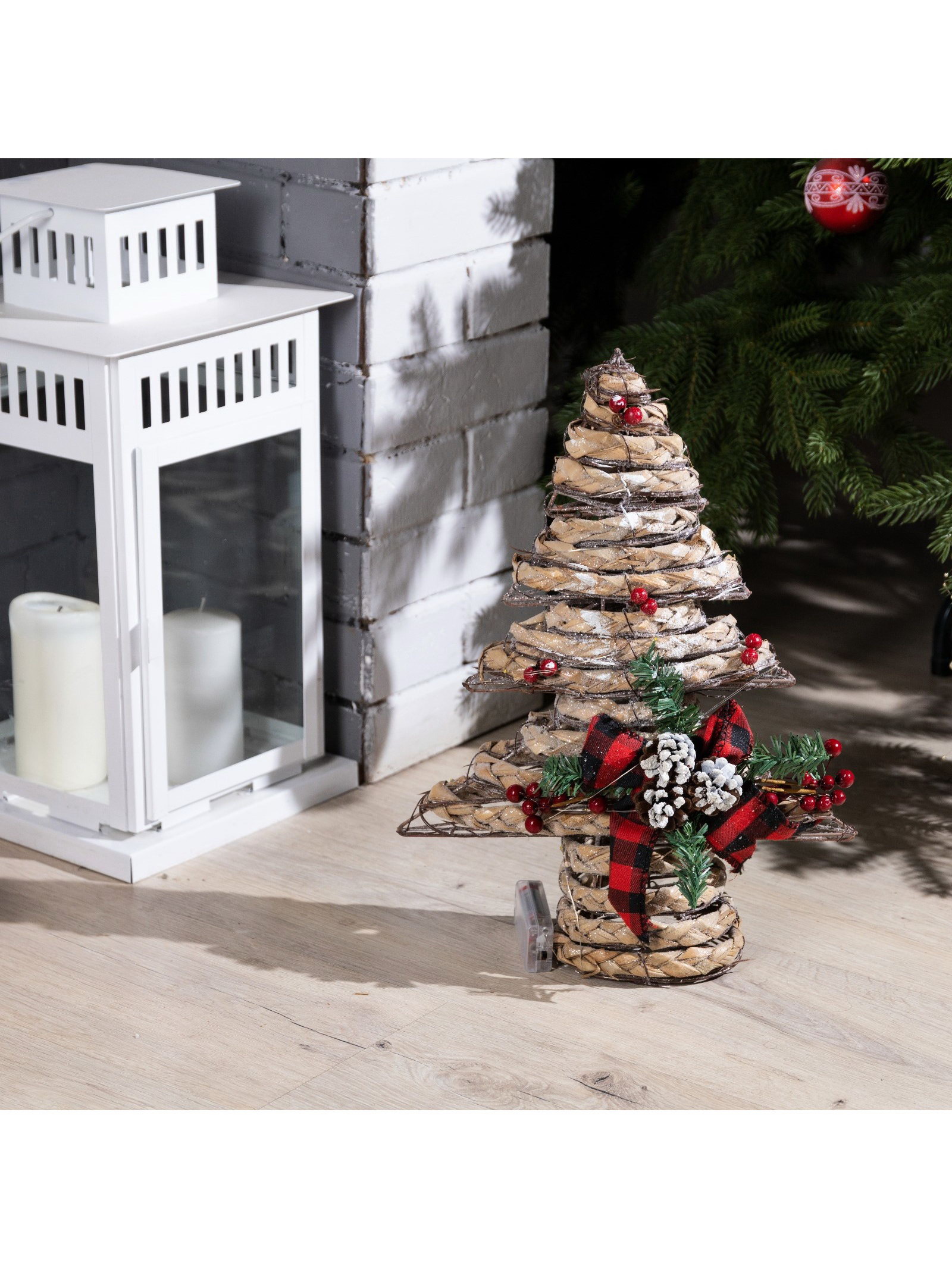 Светодиодная фигура "Ёлка с шишками" 31x40x9 см, текстиль, металл, от батареек AAх2, свечение тёплое белое, 25x40x15 см., Luazon Lighting, Китай