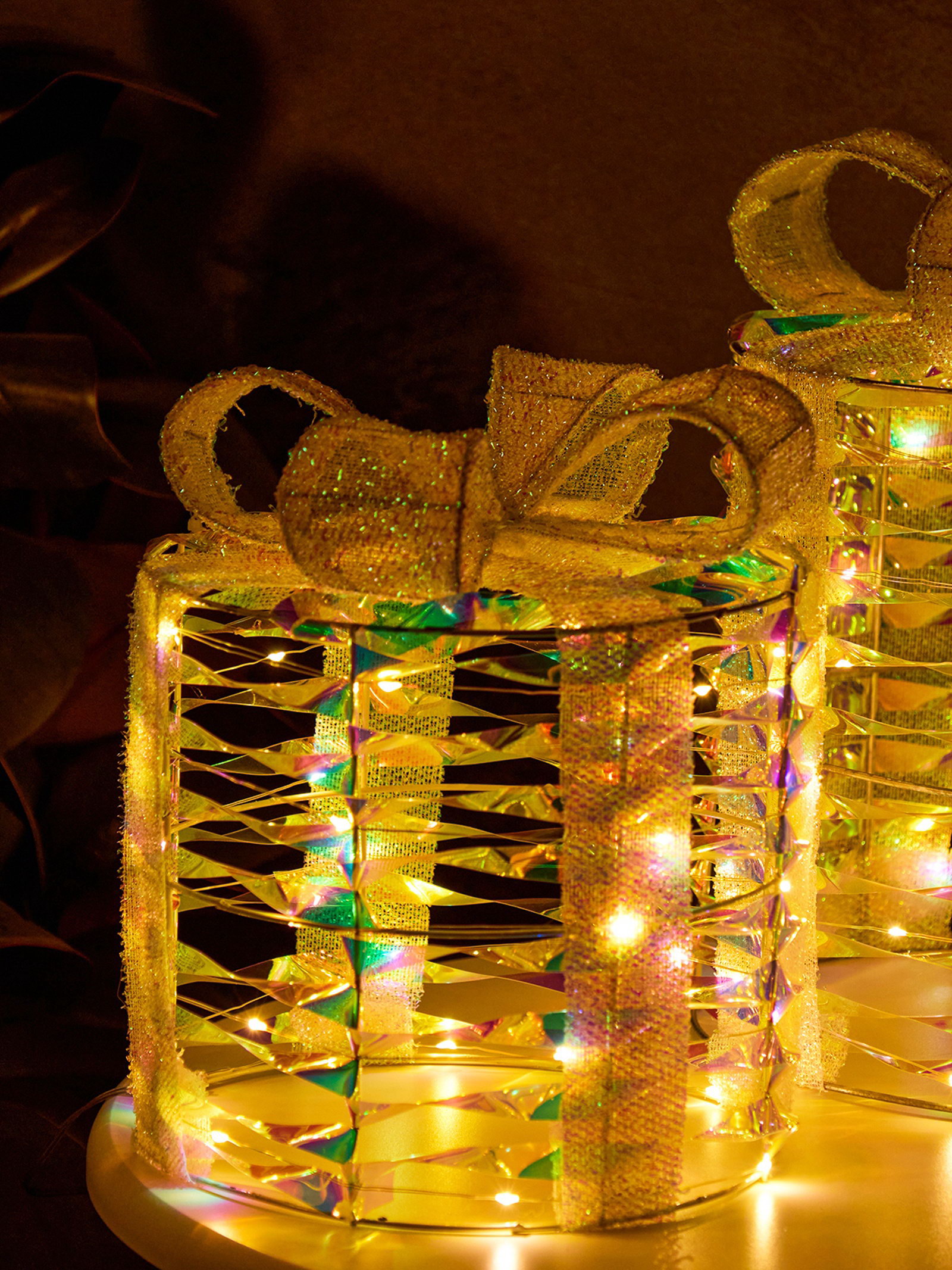 Фигура световая "Подарки цилиндр серые", 25x20x15 см, 90 LED, от батареек AAx8, свечение тёплое белое, 20x15x25 см., Luazon Lighting, Китай