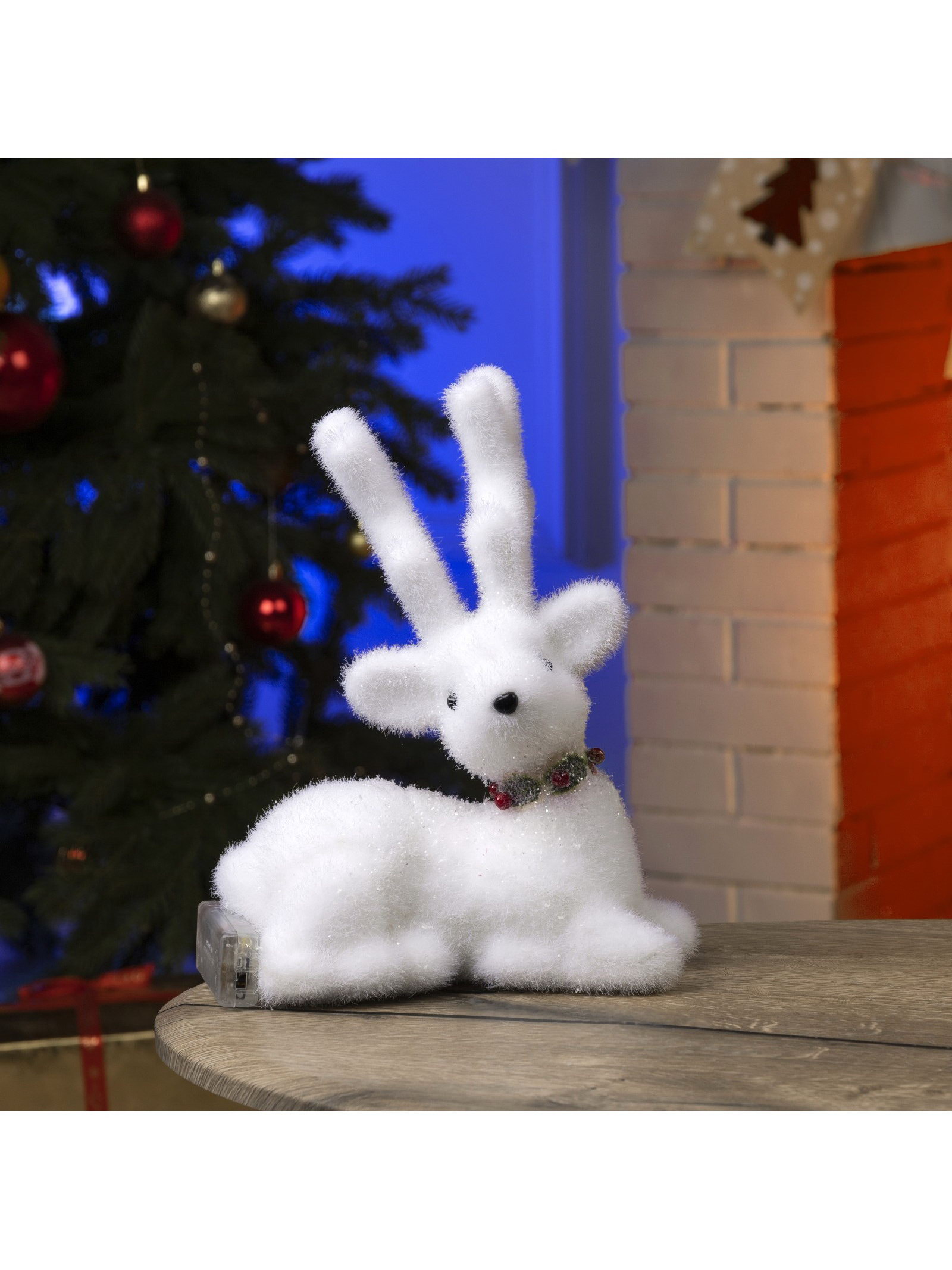 Светодиодная фигура "Олень" 20x25x12 см, флок, от батареек, свечение тёплое белое, 12x29x25 см., Luazon Lighting, Китай