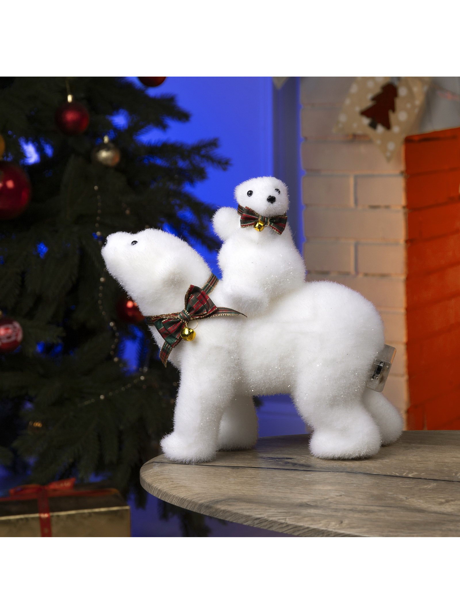 Светодиодная фигура "Медведица и медвежонок" 27x26x12 см, флок, от батареек ААх2, свечение тёплое белое, 12x26x27 см., Luazon Lighting, Китай