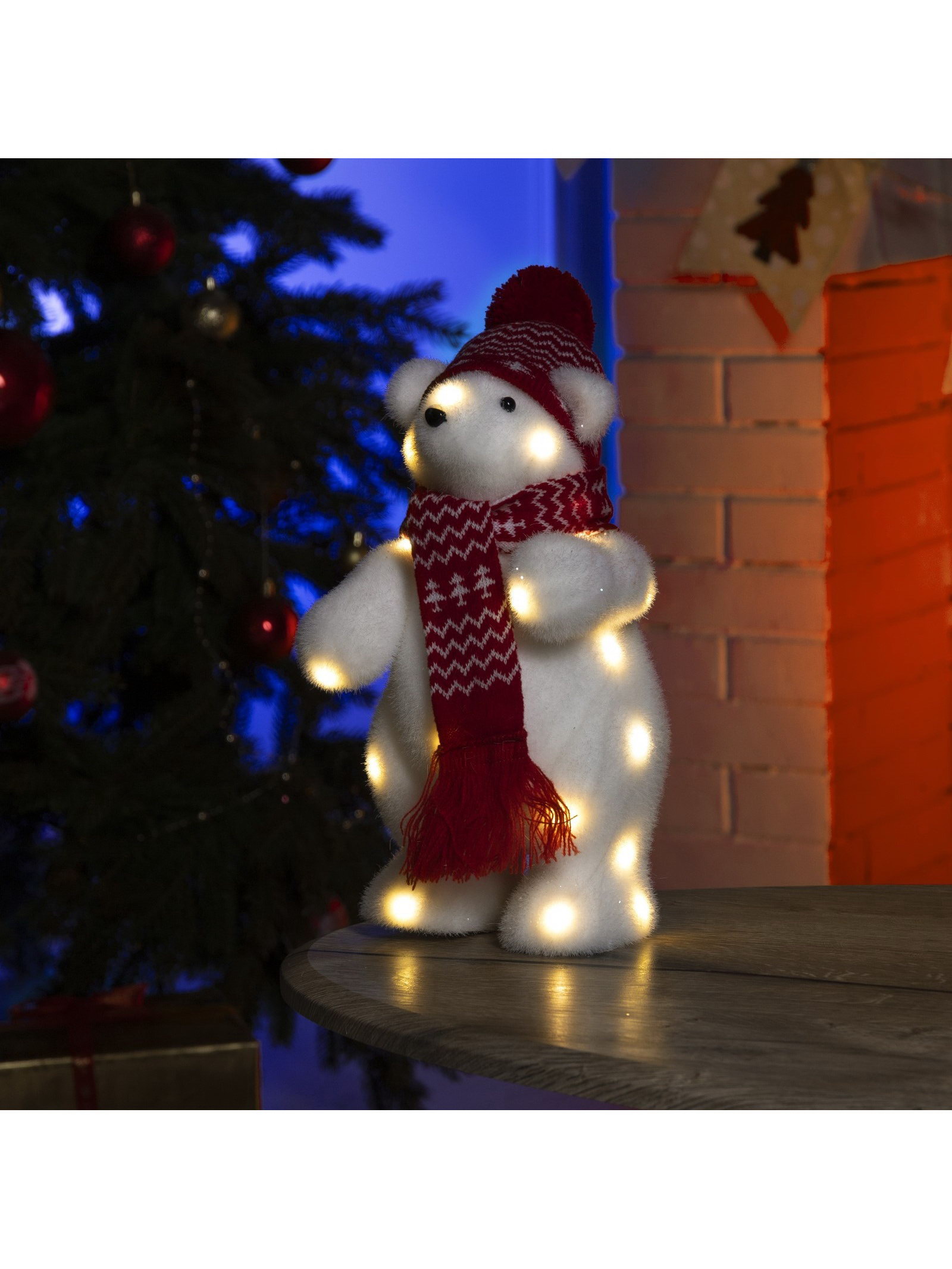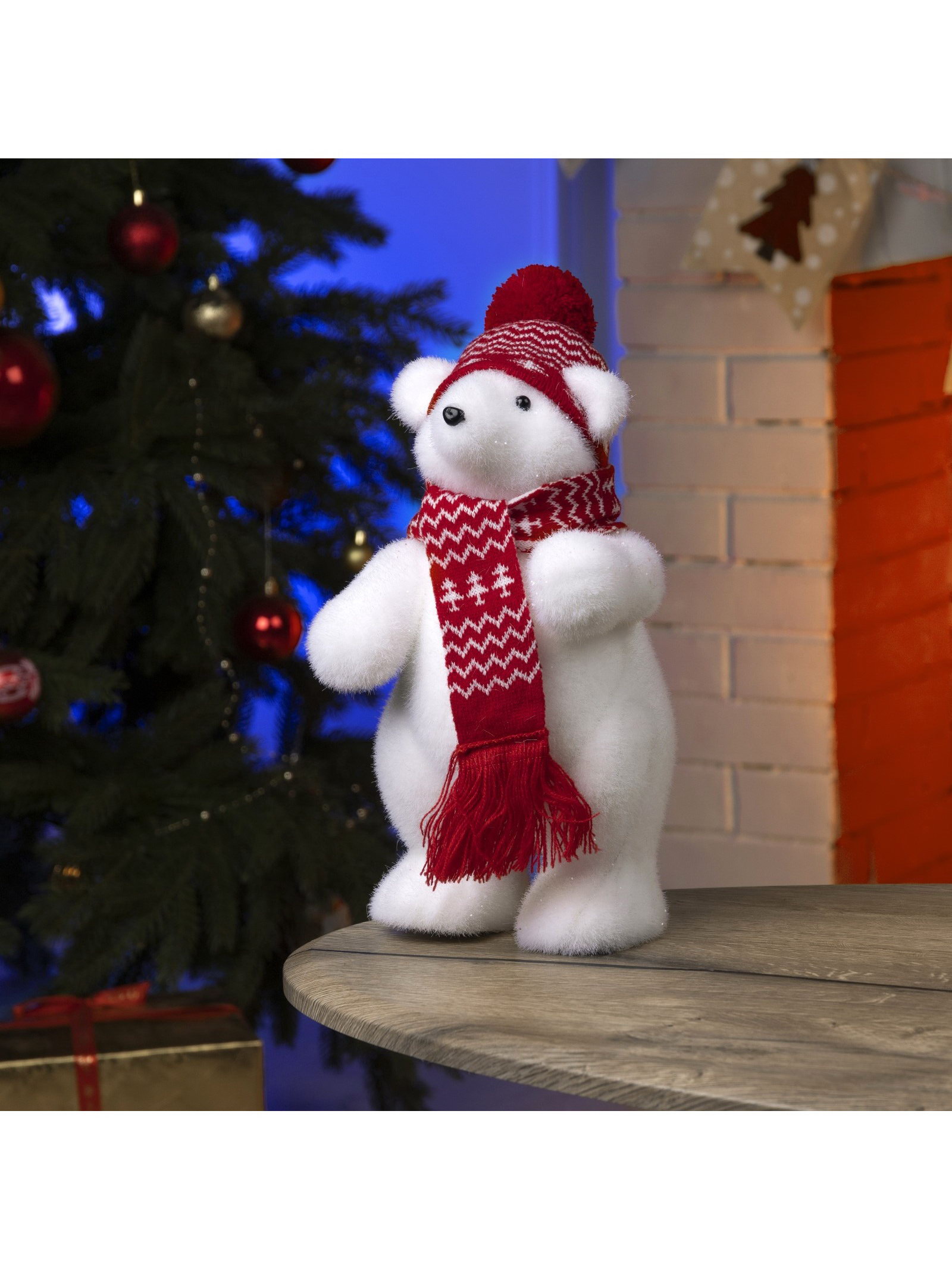 Светодиодная фигура "Мишка в шапке" 18x30x17 см, флок, батарейки ААх2, 30x18x17 см., Luazon Lighting, Китай