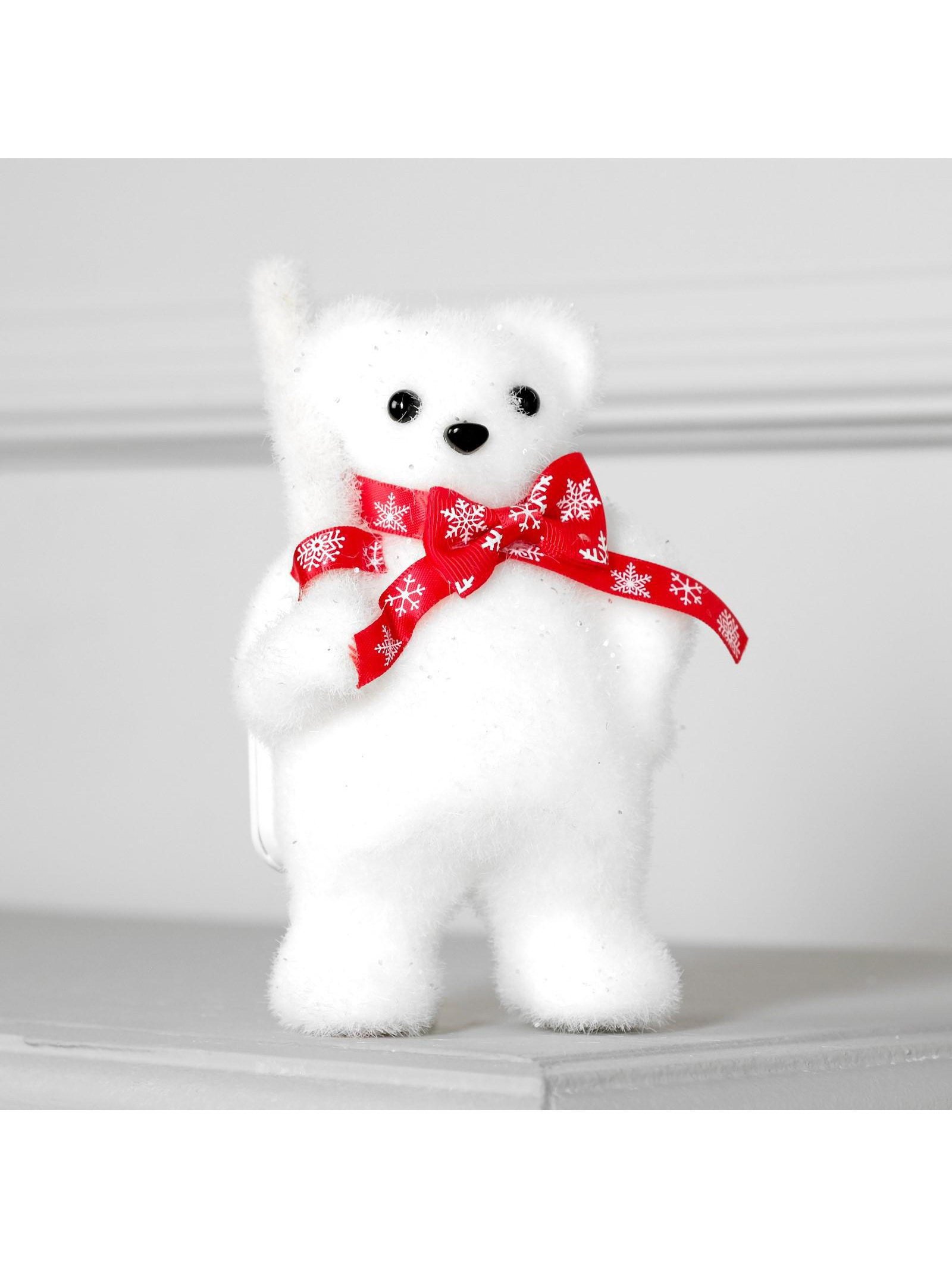 Светодиодная фигура "Медведь с посохом" 9x15x6 см, флок, от батареек CR2032x2, свечение тёплое белое, 9x6x15 см., Luazon Lighting, Китай