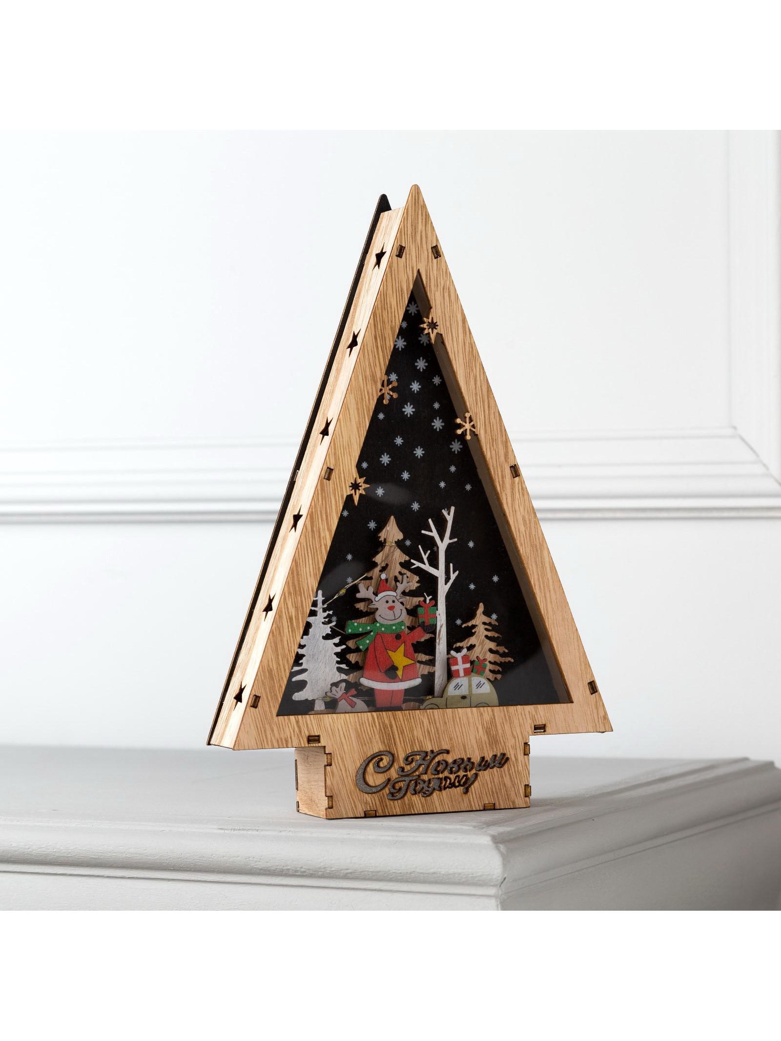 Светодиодная фигура "Новогодний олень" 19x30x4.5 см, дерево, от батареек АААх2, свечение тёплое белое, 19x30x4.5 см., Luazon Lighting, Китай