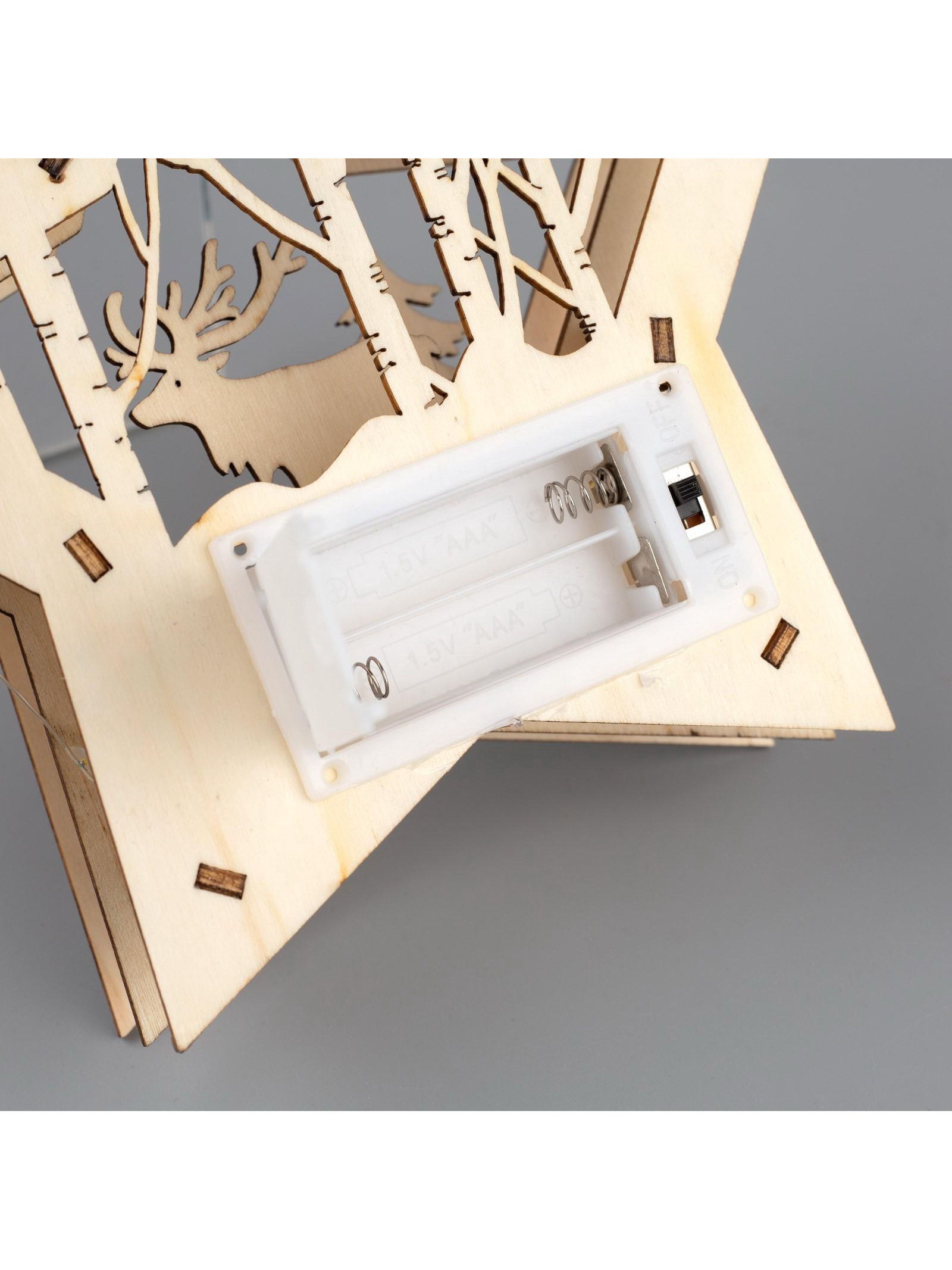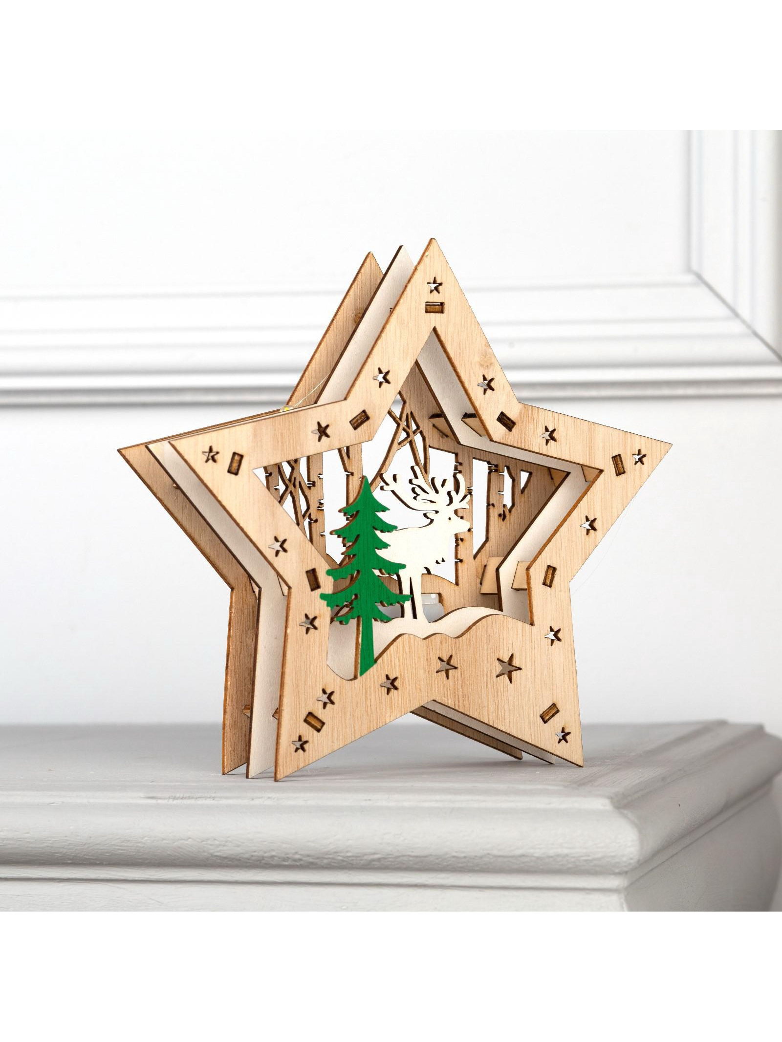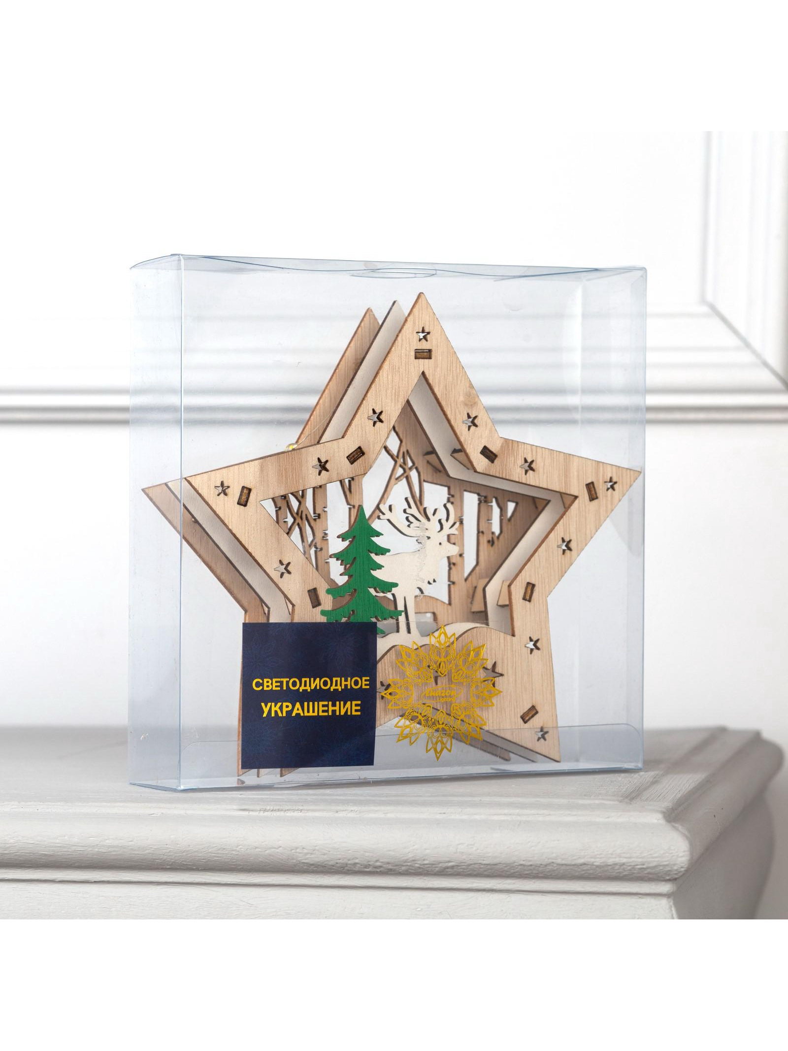 Светодиодная фигура "Звезда с оленем в лесу" 18x18x5 см, дерево, от батареек АААх2, свечение тёплое белое, 18x18x5 см., Luazon Lighting, Китай