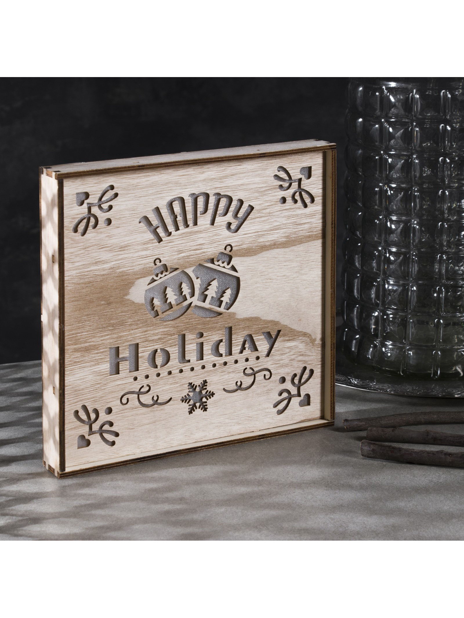 Светодиодная фигура "Счастливые каникулы" 22x22x4 см, дерево, от батареек АААх2, свечение тёплое белое, 22x22x4 см., Luazon Lighting, Китай