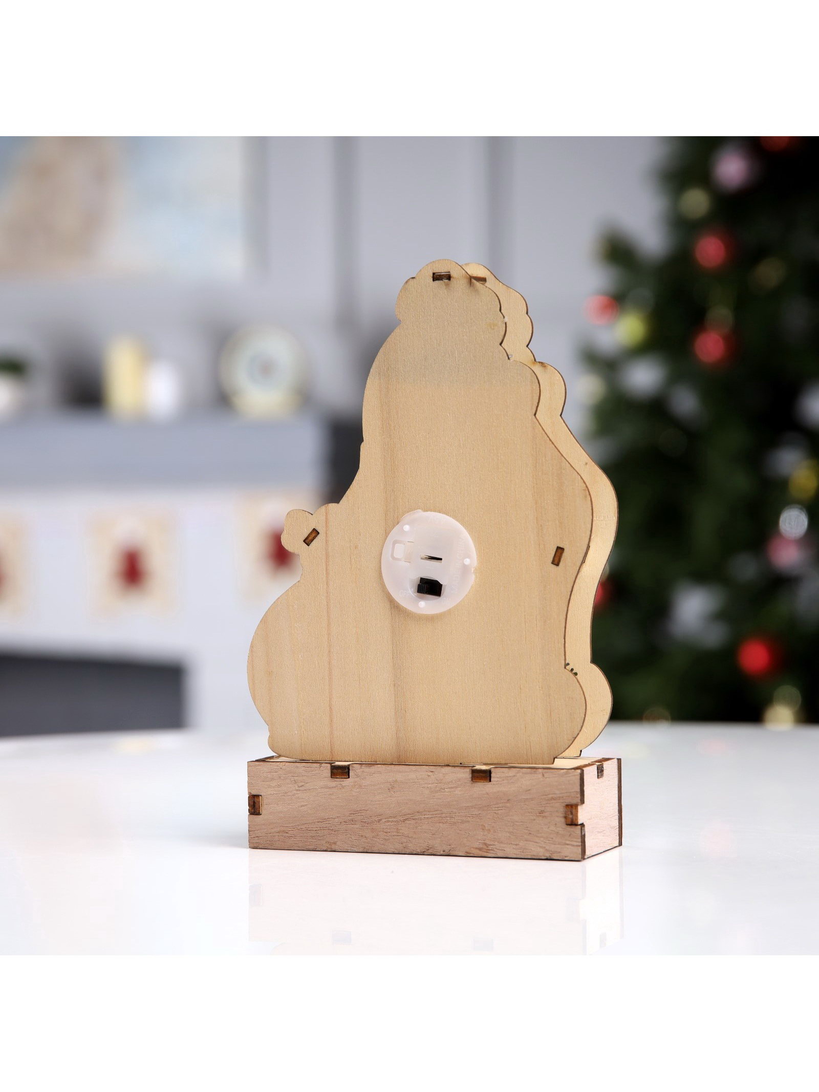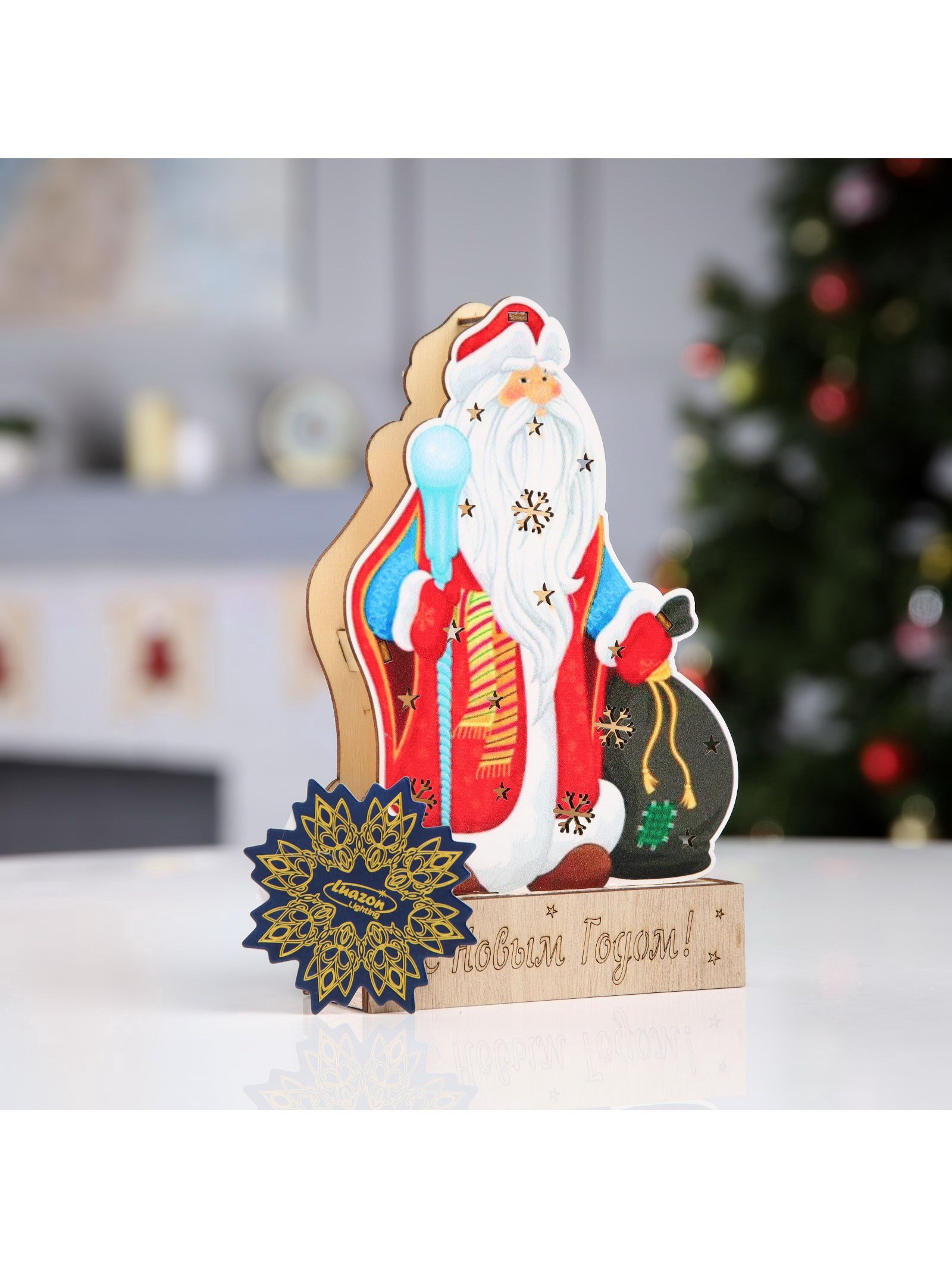 Светодиодная фигура "Дед Мороз" 14x20x2.5 см, дерево, от батареек LR1130x3, свечение тёплое белое, 3x15x20 см., Luazon Lighting, Китай