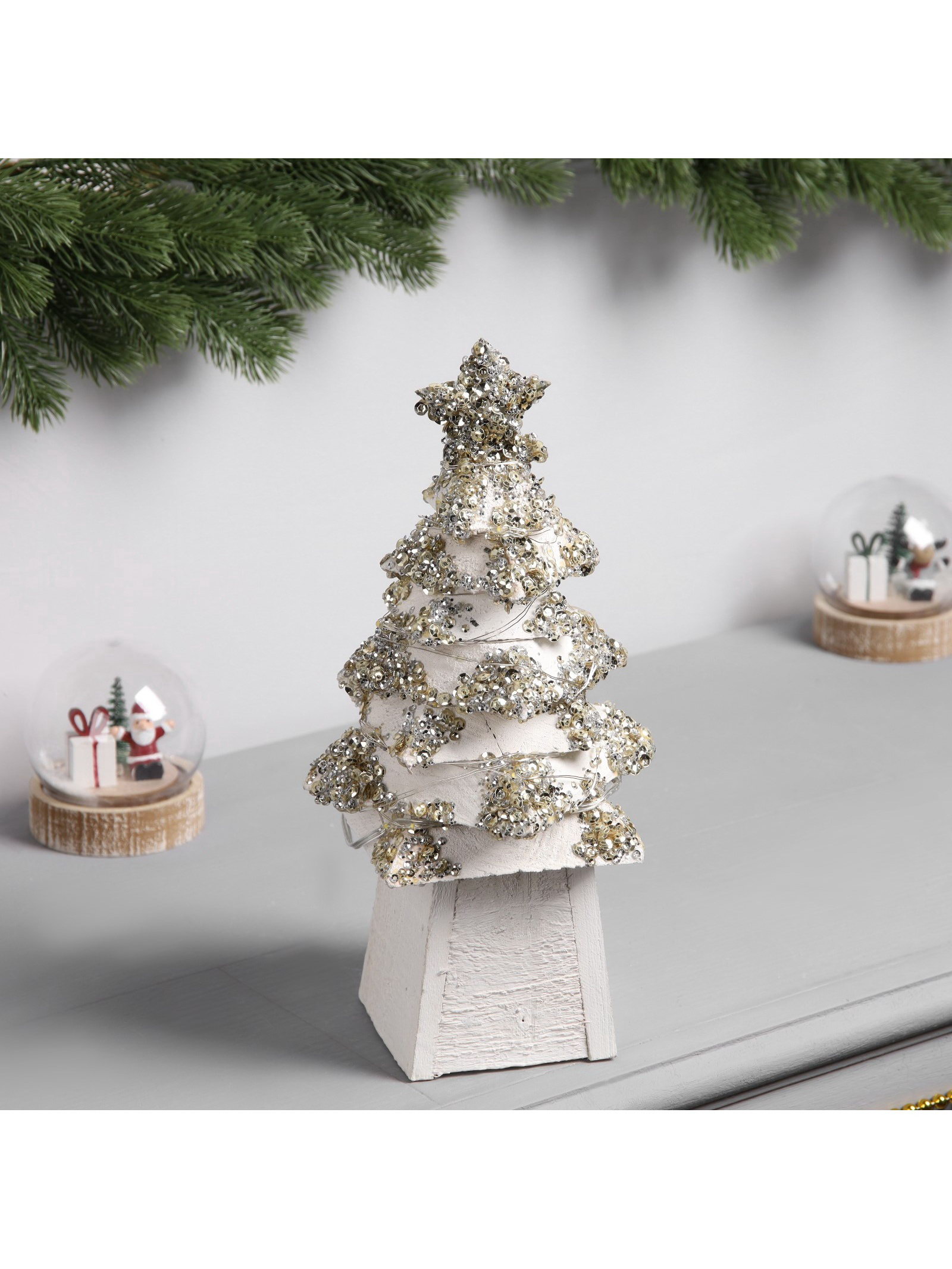 Фигура деревянная "Ёлочка белая", 27x14x14 см, 35 LED, от батареек AAx2, свечение тёплое белое, 27x14x14 см., Luazon Lighting, Китай