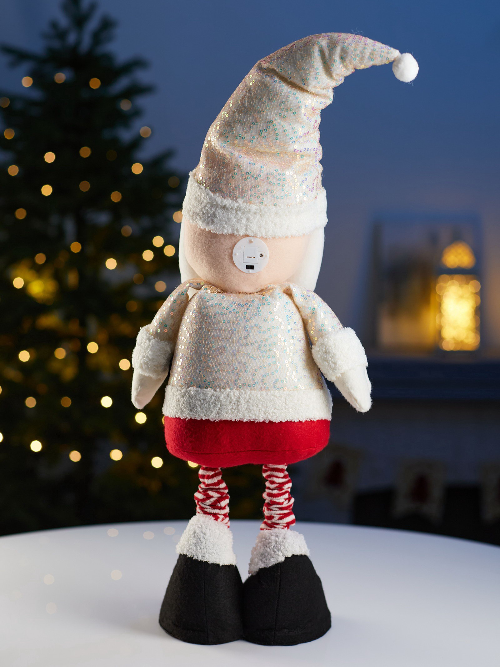 Высота, см: 55, 84 Цвет: Белый, Красный Размер упаковки: 21 x 13.5 x 55 см. tnved: 9505109000 Гарантийный срок, мес.: 6 Форма фигуры: Дед Мороз Тип питания: От батареек Количество светодиодов: 1 Цвет свечения: Тёплый белый Режим работы: Постоянное свечение Тематика праздника: Новый год Фигура в форме Деда Мороза с телескопическими ножками высотой от 55 до 84 см станет стильным и функциональным украшением праздничного интерьера. Благодаря регулируемой высоте изделие легко адаптируется к разным пространствам, создавая выразительный акцент и подчёркивая атмосферу уюта и волшебства. Светодиод с тёплым белым свечением обеспечивает мягкое и приятное освещение, которое не раздражает глаза и дарит ощущение тепла даже в самые холодные зимние вечера. Постоянный режим работы гарантирует стабильность свечения, а питание от трёх батареек LR1130 делает использование удобным и мобильным фигуру можно разместить в любом месте без привязки к розетке.