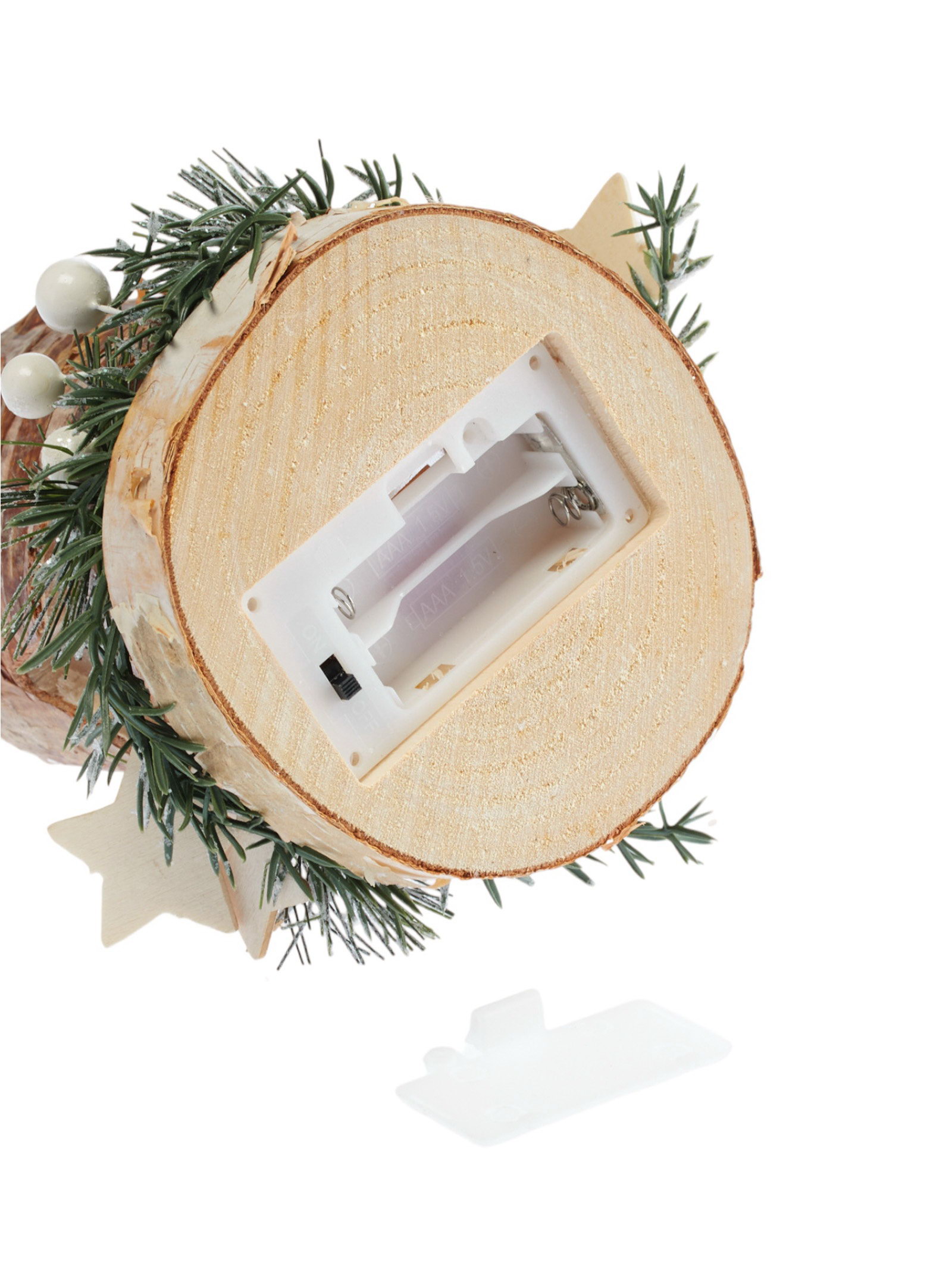 Размер упаковки: 10 x 9 x 12 см. Гарантийный срок, мес.: 6 tnved: 9505109000 Цвет свечения: Тёплый белый Режим работы: Постоянное свечение Количество светодиодов: 1 Тип питания: От батареек Эффект снежного вихря: Нет Тематика праздника: Новый год Высота, см: 11.5 Цвет: Коричневый Форма фигуры: Пень Символ года: Нет Декоративный деревянный пень с аккуратно встроенным светодиодом это уникальное сочетание природной эстетики и современных технологий освещения. Его натуральный коричневый оттенок и фактура дерева создают атмосферу тепла и уюта, идеально подходящую для новогоднего интерьера и зимних композиций. Высота изделия 11,5 см позволяет использовать его как самостоятельный акцент или в составе праздничного декора. Светодиод с тёплым белым свечением обеспечивает мягкое, непрерывное освещение, создавая приятный визуальный эффект без лишних мерцаний. Питание от двух батареек типа AAA гарантирует автономность и удобство размещения без проводов.