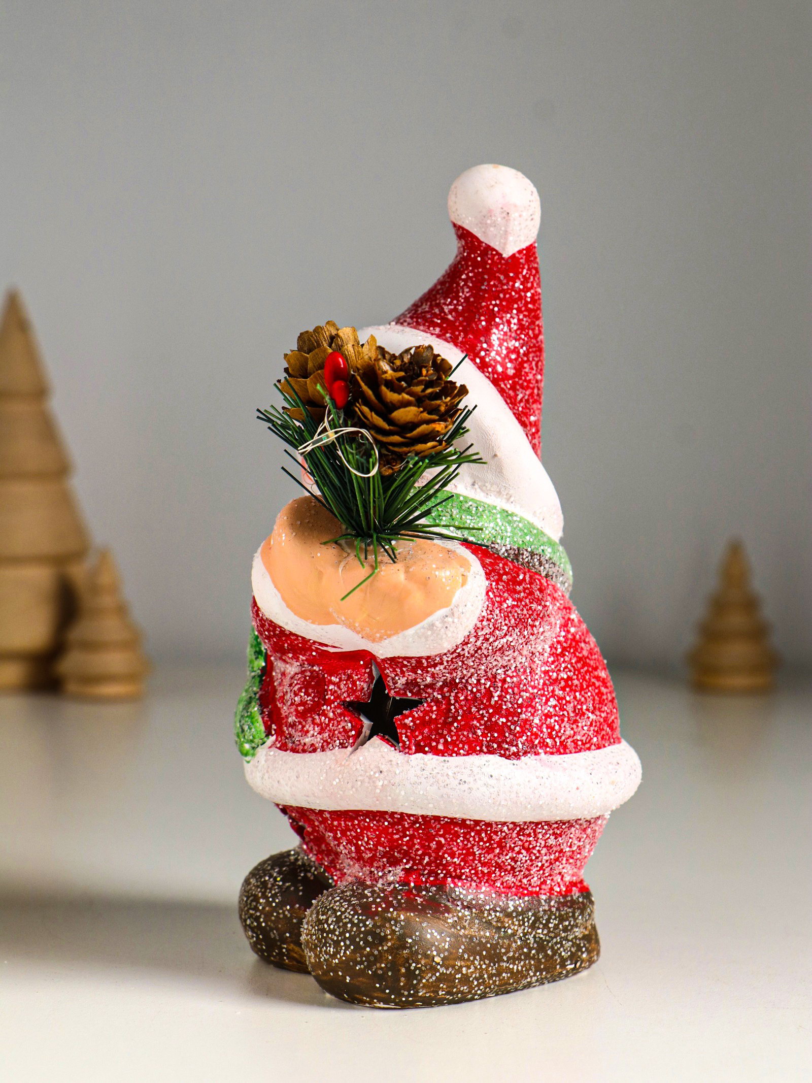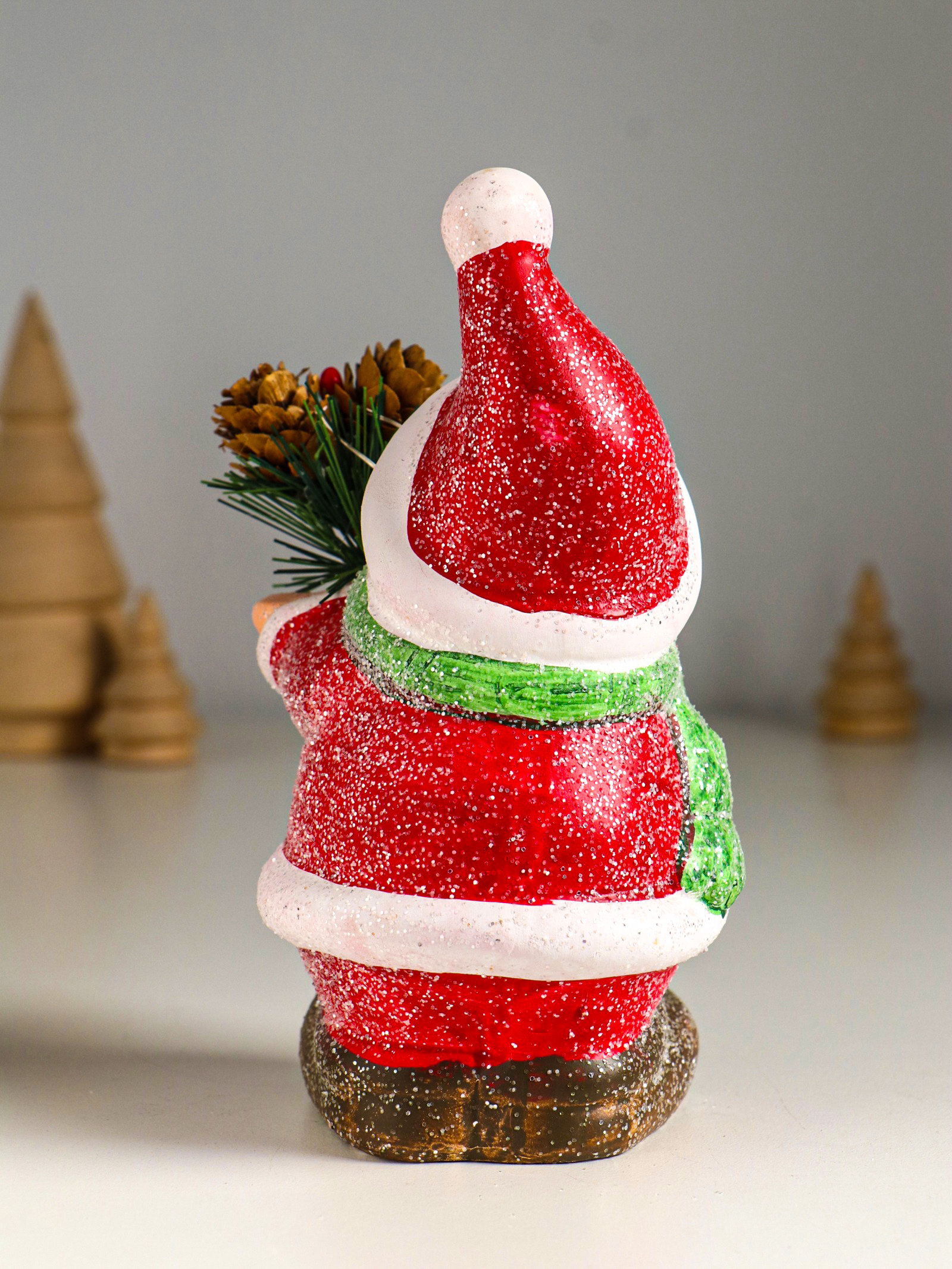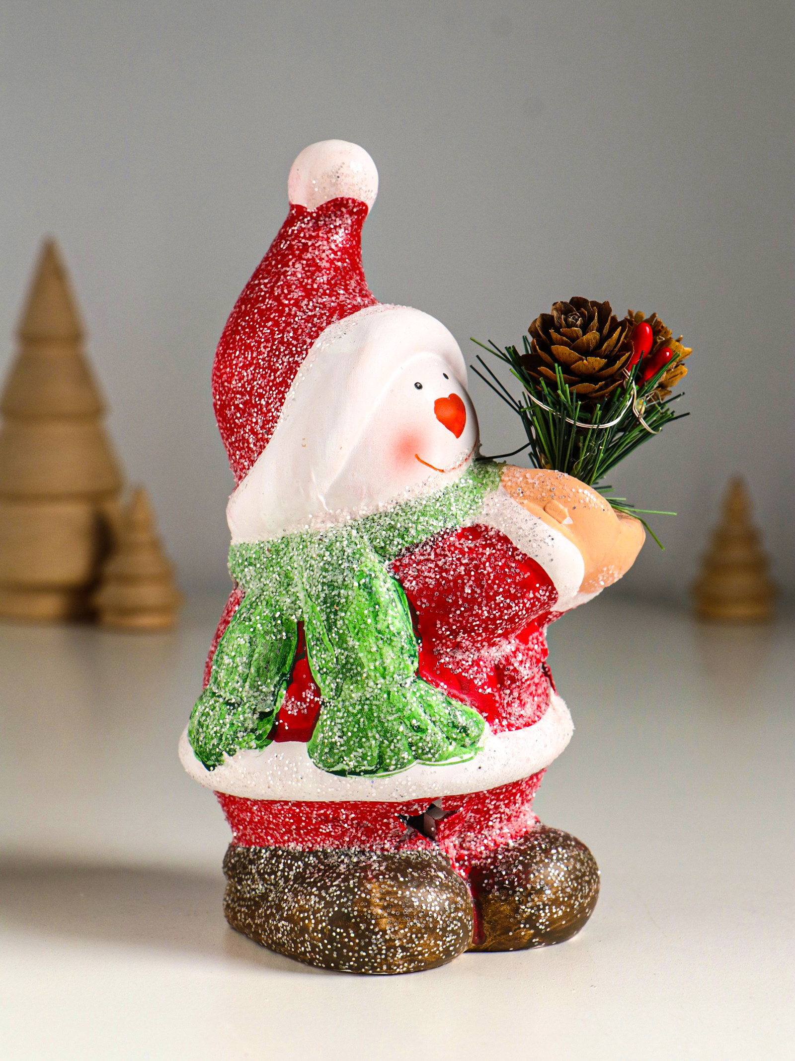 Фигурка светящаяся "Снеговик в красной шубке с еловой веточкой", керамика, 10x7.5x14.5 см, 7.5x10x14.5 см., Китай