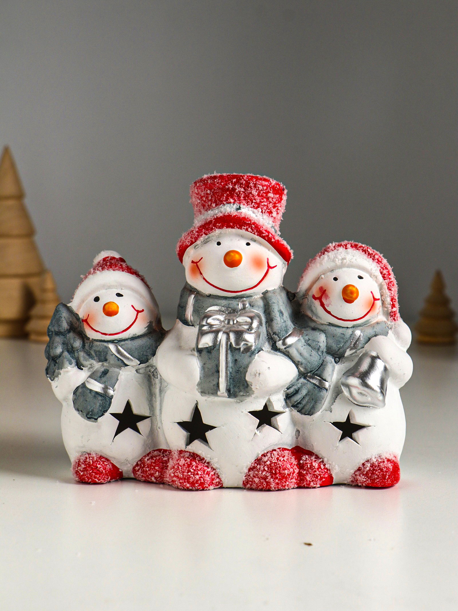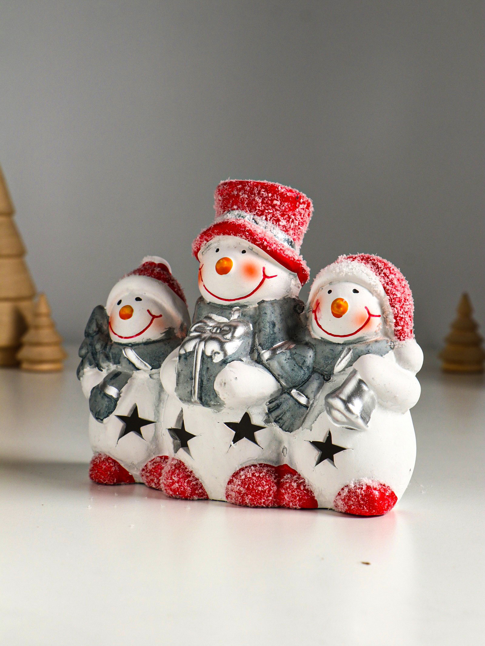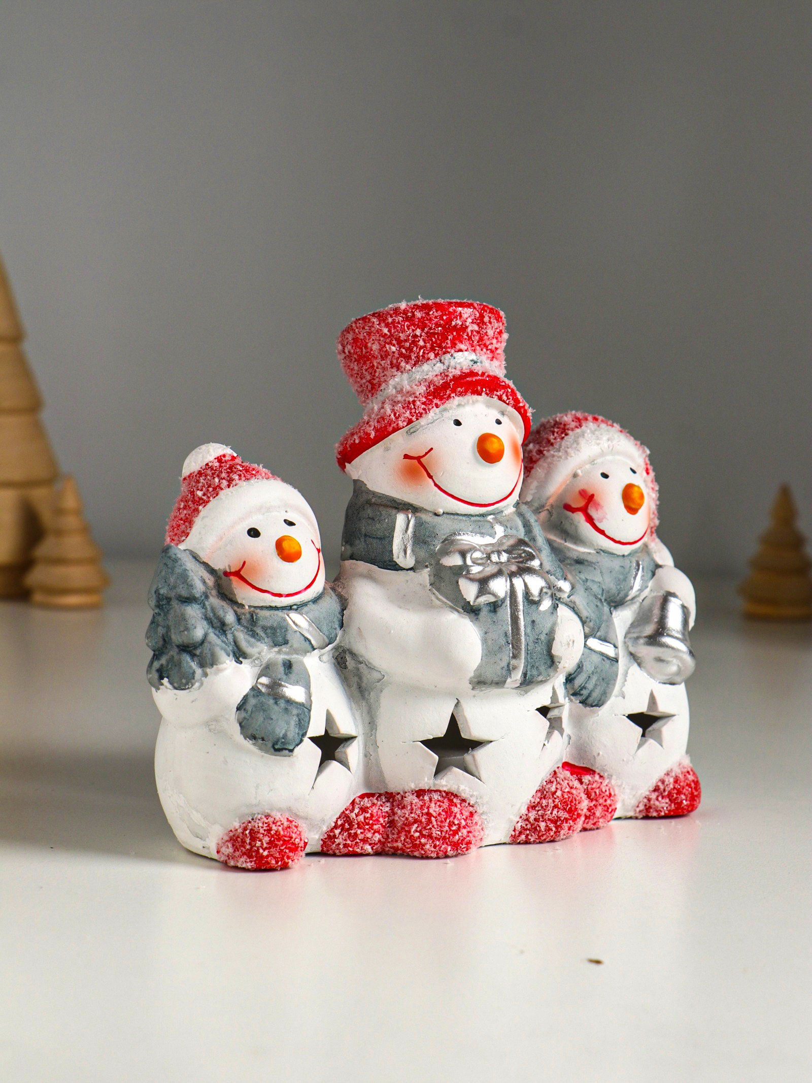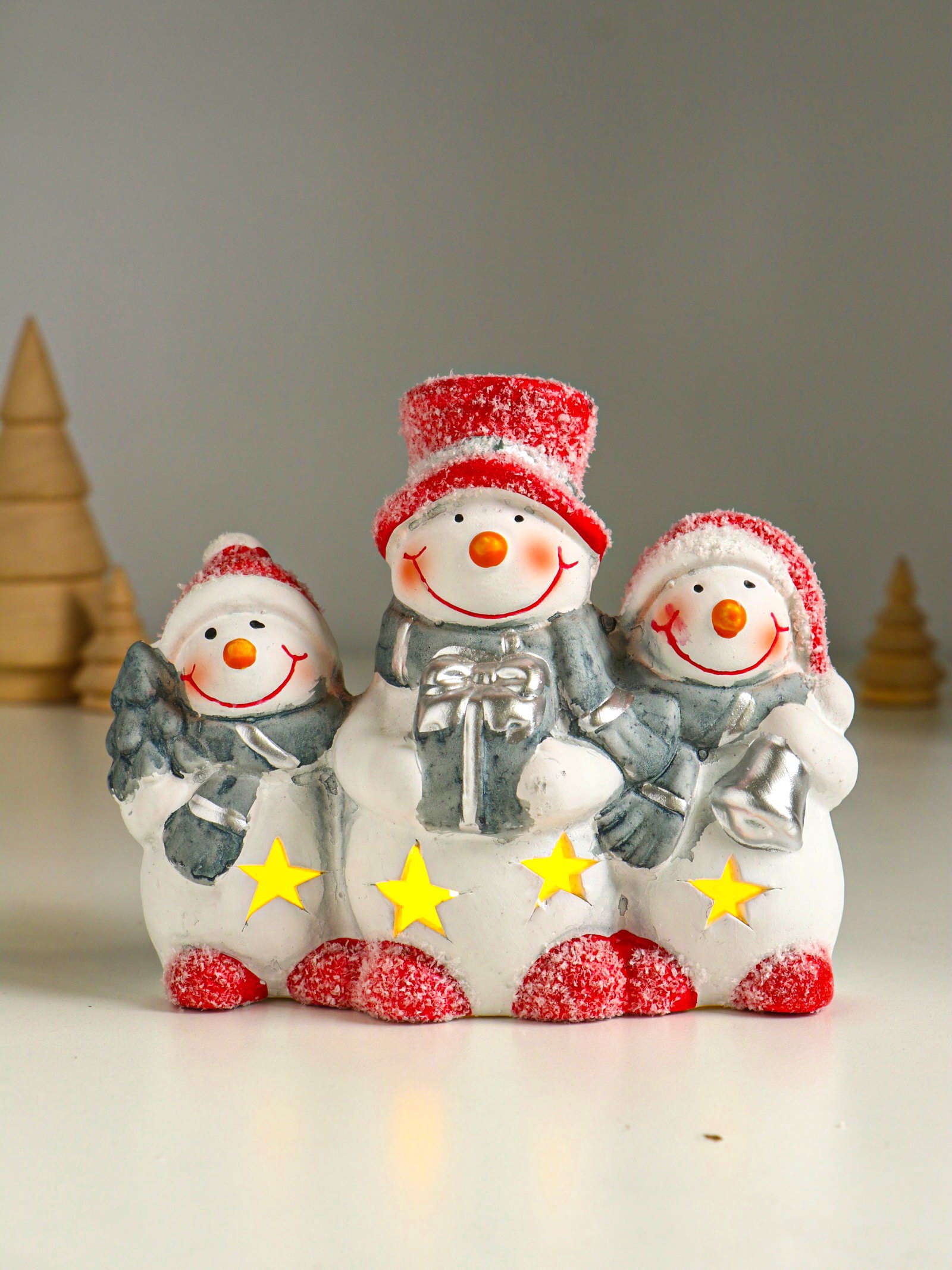 Фигурка светящаяся "Три снеговичка", керамика, 14.2x5.5x11.5 см, 5.5x14.2x11.5 см., Китай