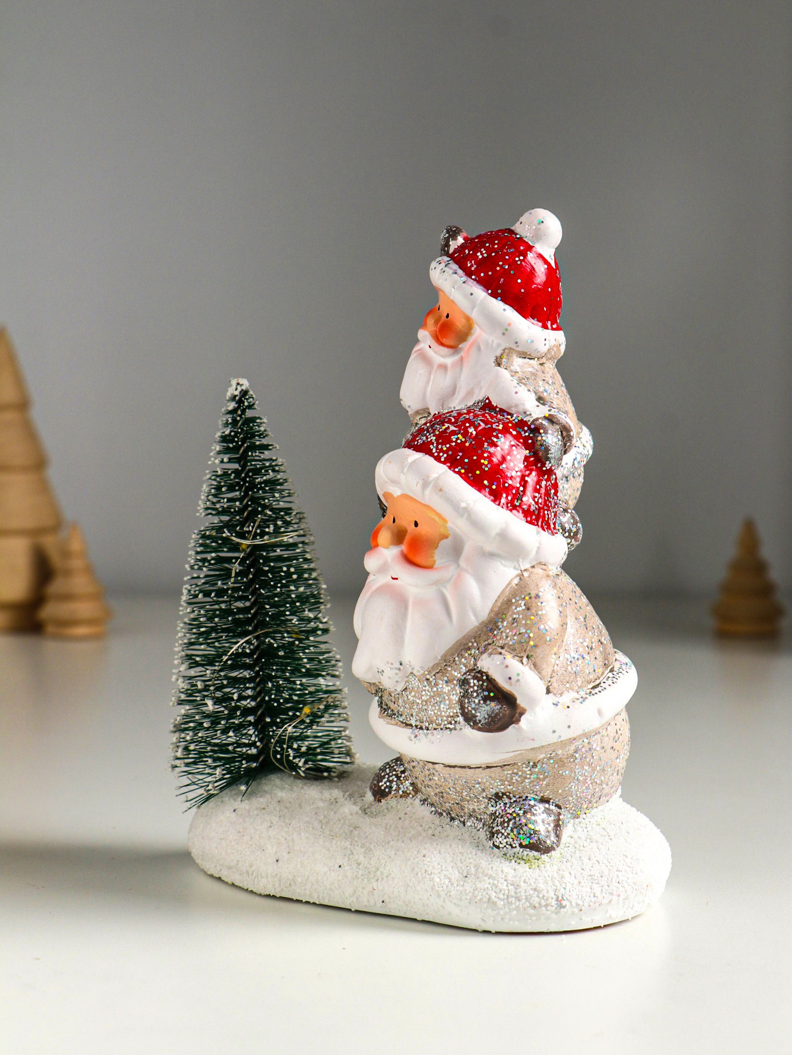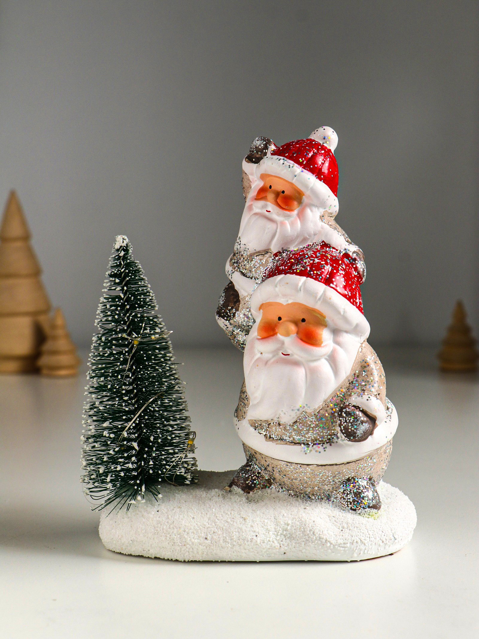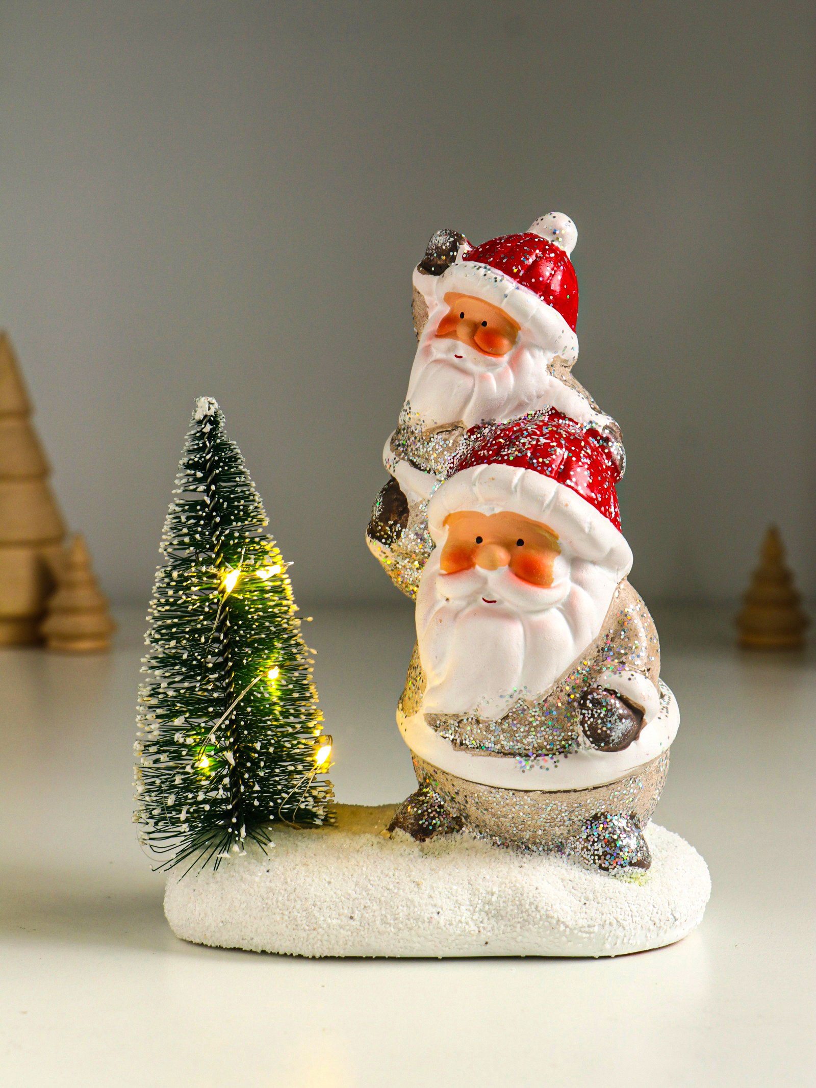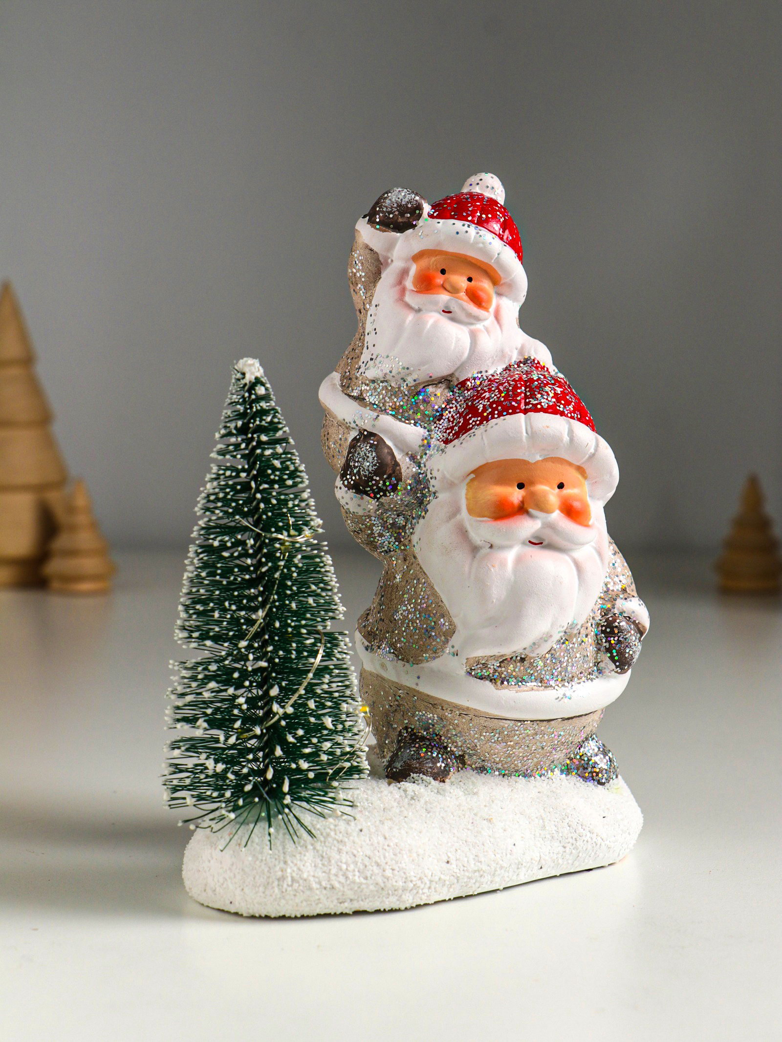 Фигурка светящаяся "Два Деда Мороза у ёлочки", керамика, 12x7x16 см, 7x12x16 см., Китай