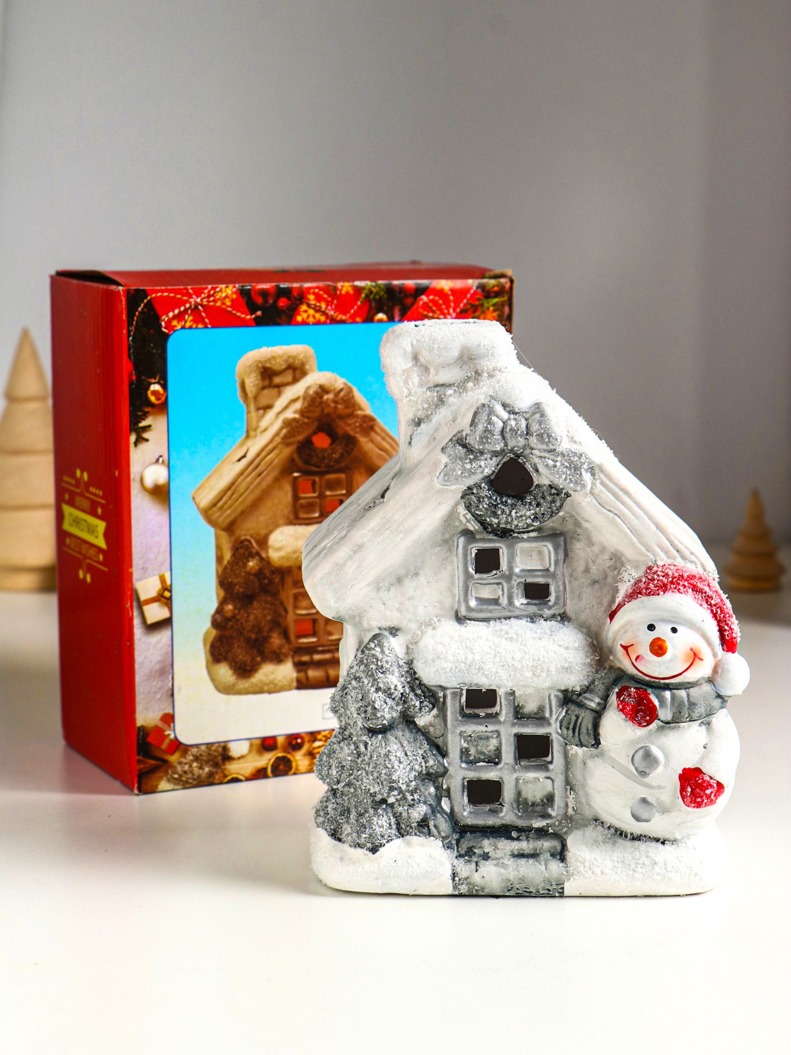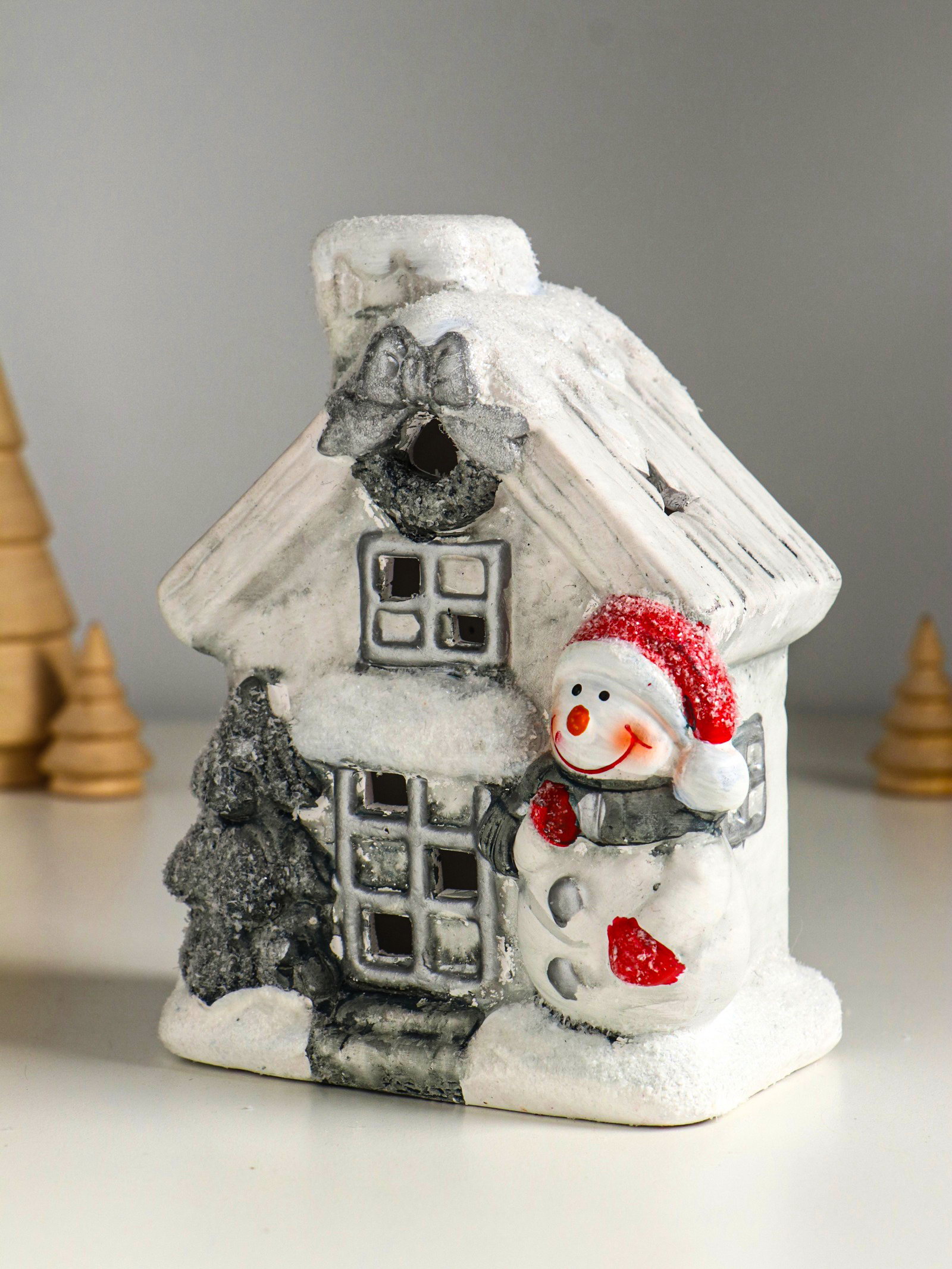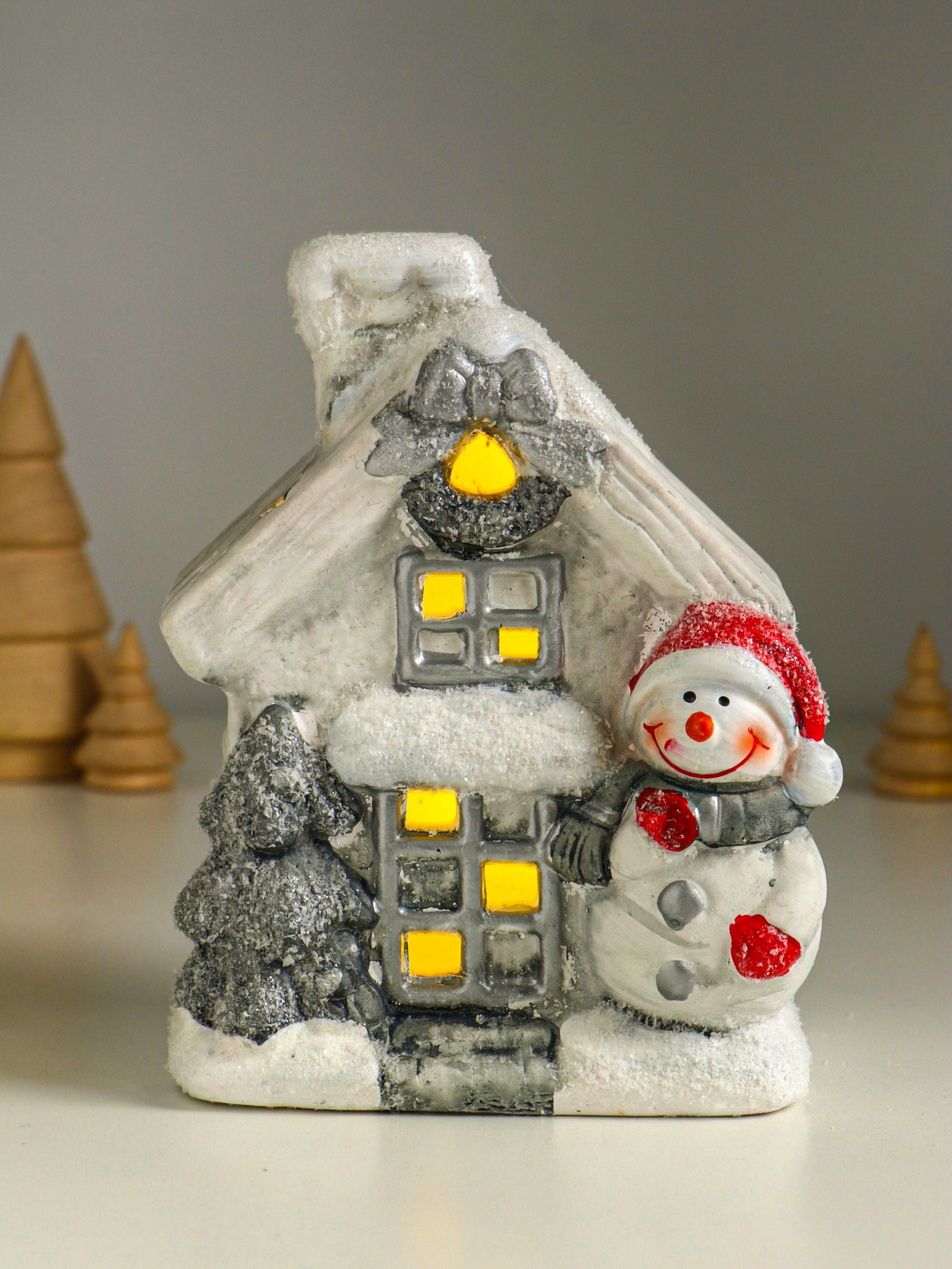 Фигурка светящаяся "Снеговичок у домика", керамика, 11.5x7.5x15.5 см, 7.5x11.5x15.5 см., Китай