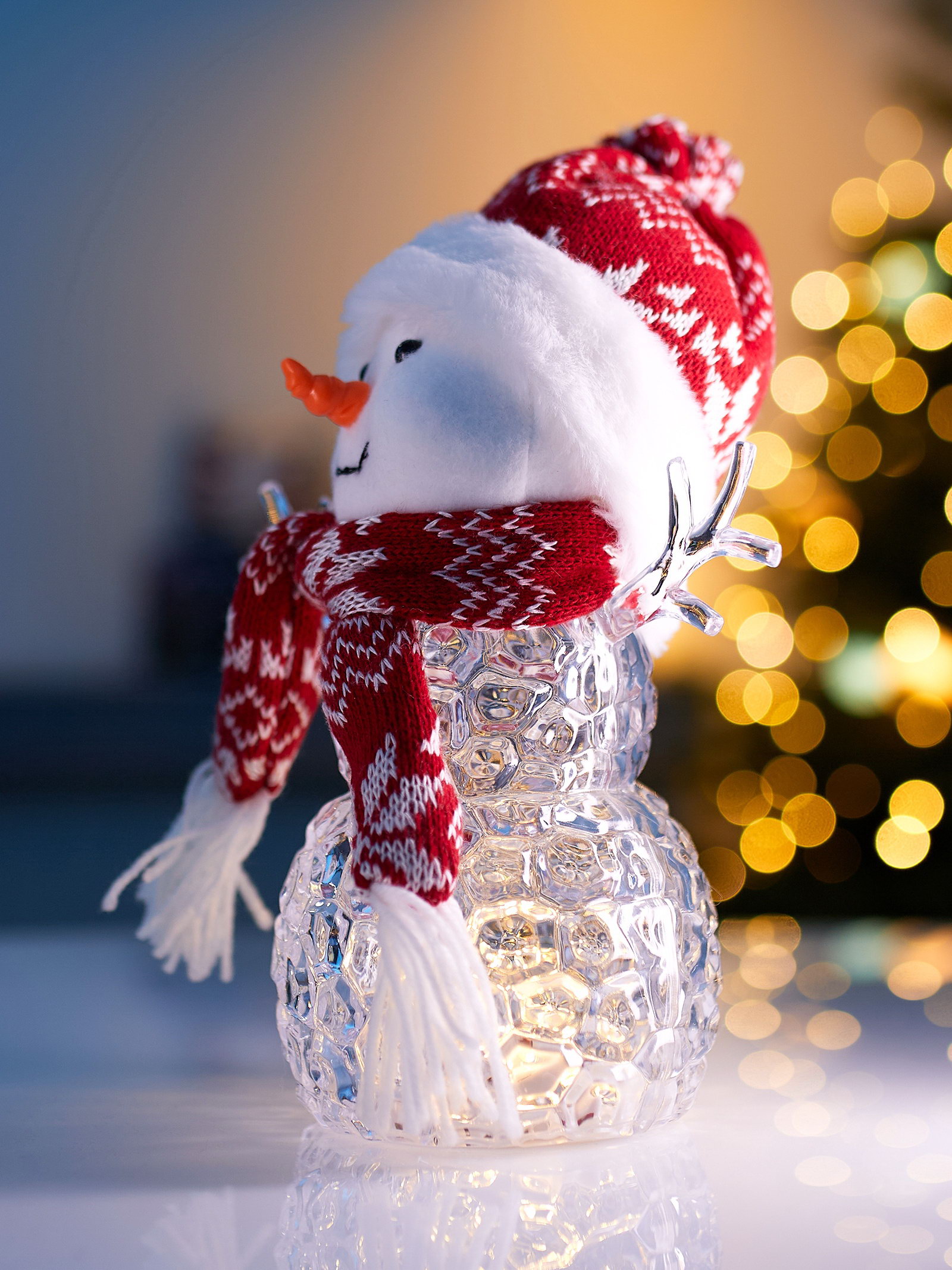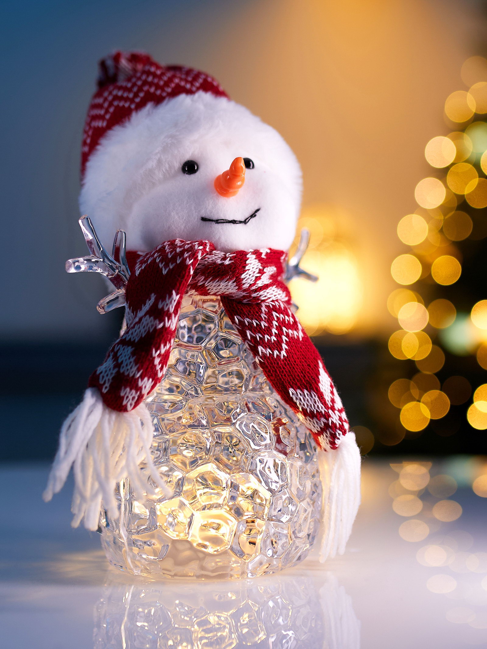 Размер упаковки: 13 x 13 x 26 см. tnved: 9505109000 Гарантийный срок, мес.: 6 Форма фигуры: Снеговик Количество светодиодов: 1 Тип питания: От батареек Эффект снежного вихря: Нет Цвет свечения: Тёплый белый Режим работы: Постоянное свечение Небольшая, но выразительная фигура высотой 28 см снеговик с красной шапочкой и шарфом, который аккуратно подсвечивает пространство мягким тёплым светом. Светодиод создаёт ровное освещение без мерцания, придавая интерьеру нежную праздничную ауру. Корпус комбинирует пластик и текстиль прочный каркас и декоративная "одежда", что делает изделие лёгким и визуально приятным. Питание осуществляется от трёх батареек ААА, что даёт свободу размещения без проводов. Разместите снеговика на подоконнике, полке, прихожей или в композиции с ёлочными украшениями он станет мягким источником уюта и света, при этом не требует особого ухода. | ||