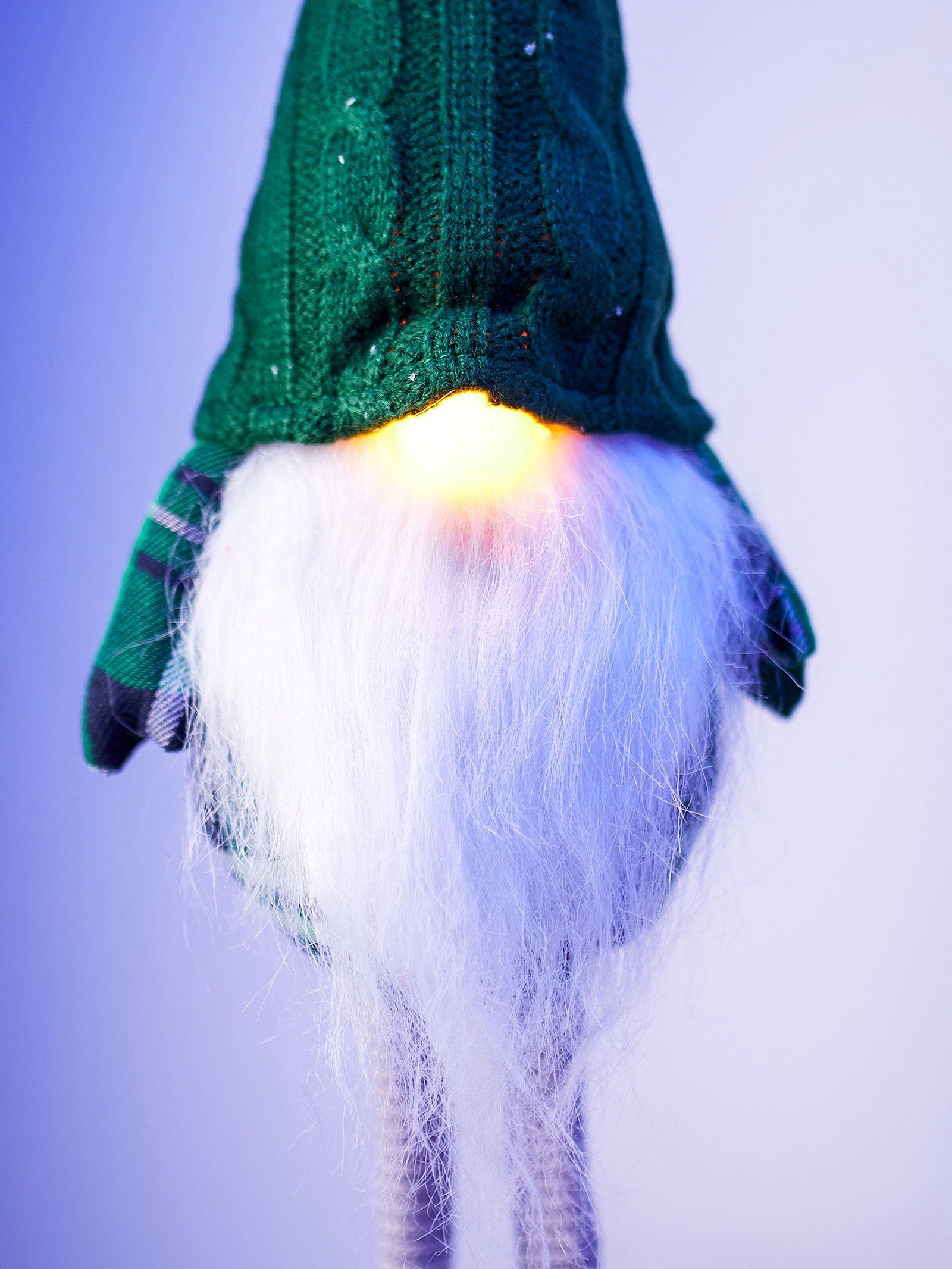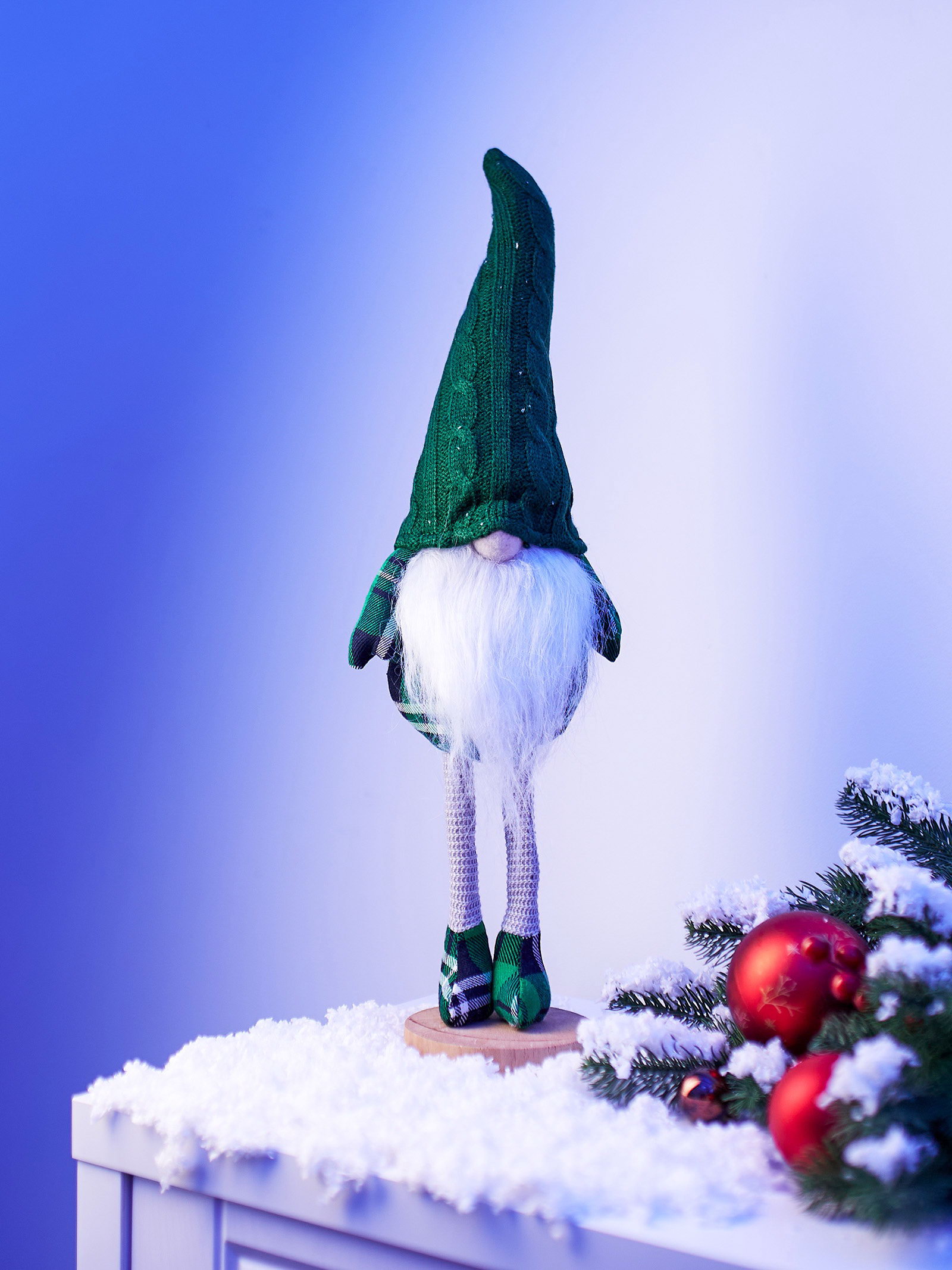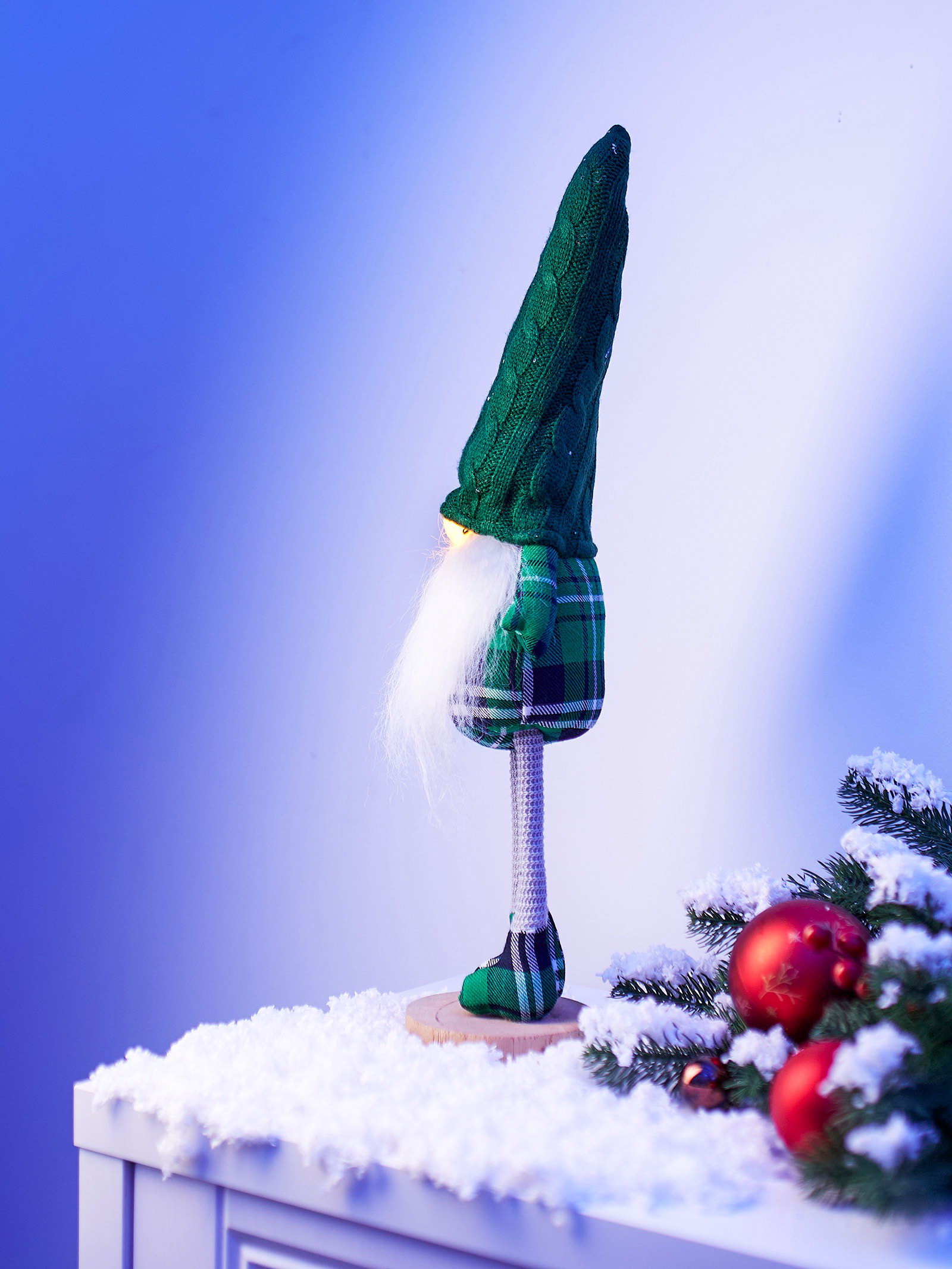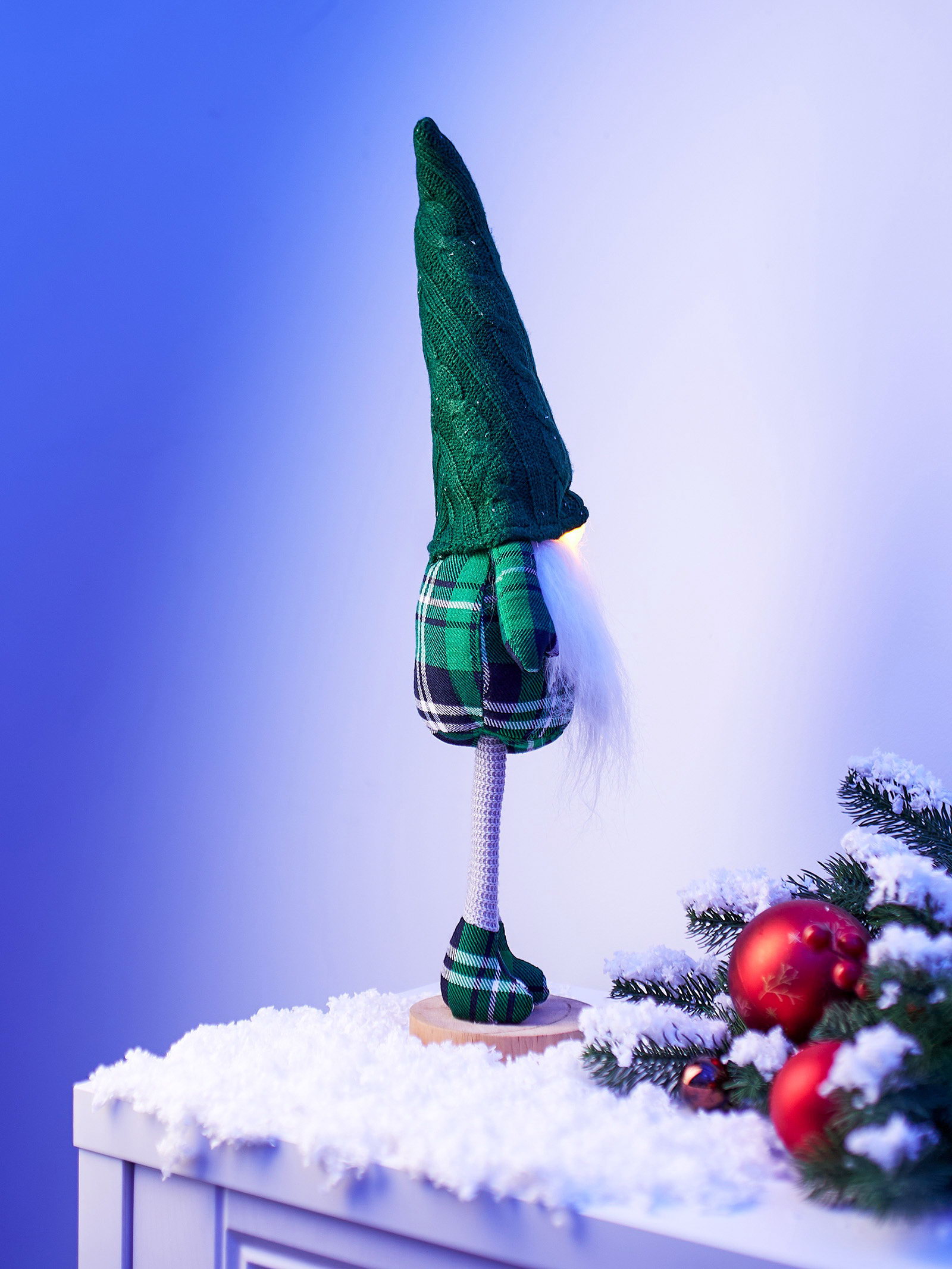 Фигура "Гном в зелёном" 54 см, текстиль, 1 LED, от батареек AG13x3, свечение тёплое белое, 10x10x54 см., Luazon Lighting, Китай