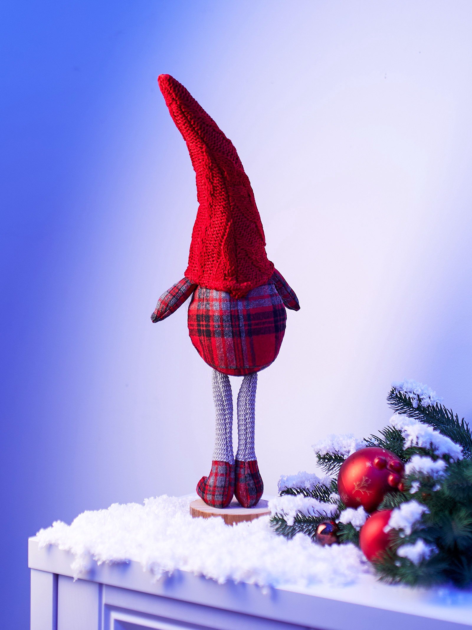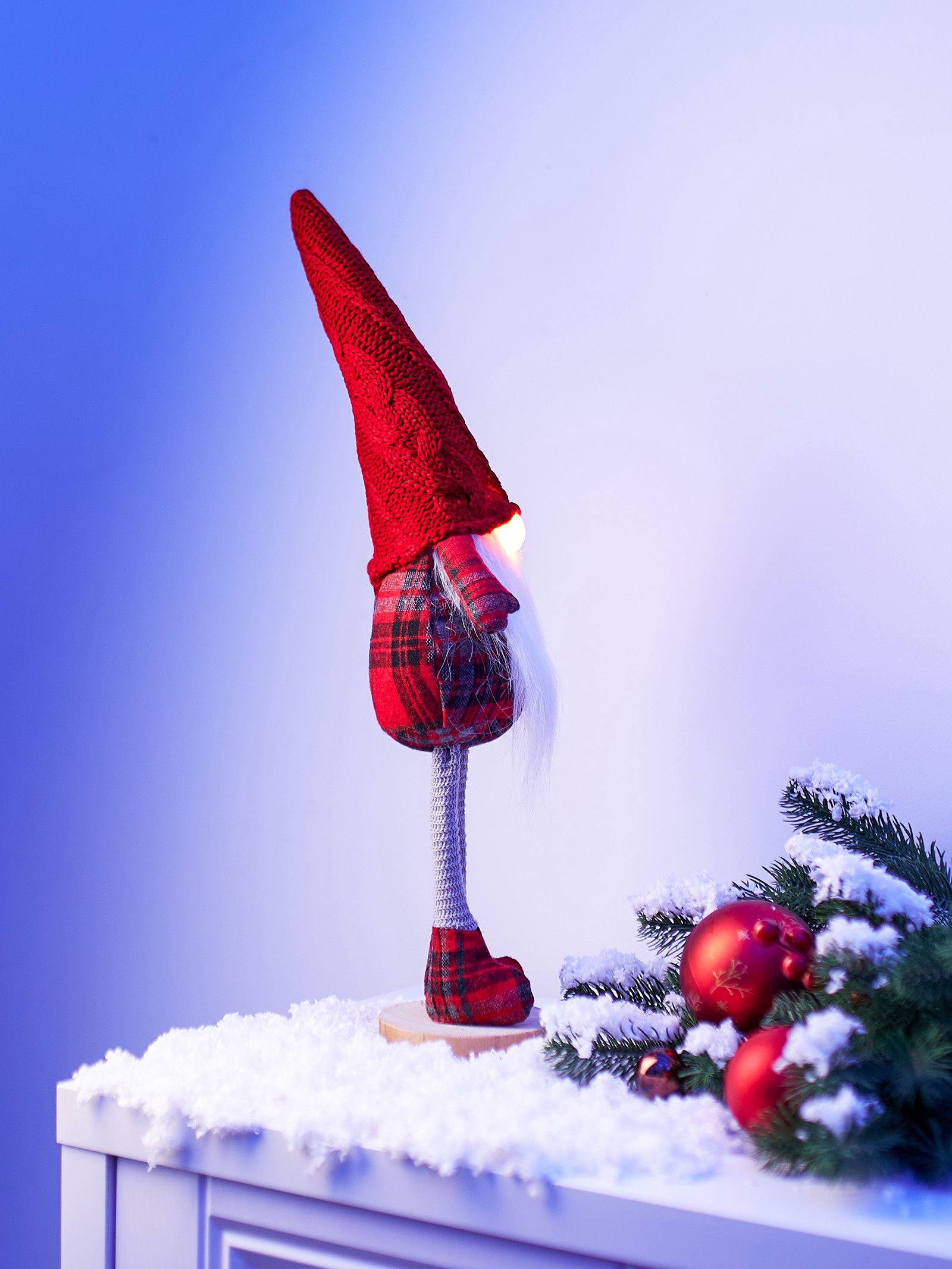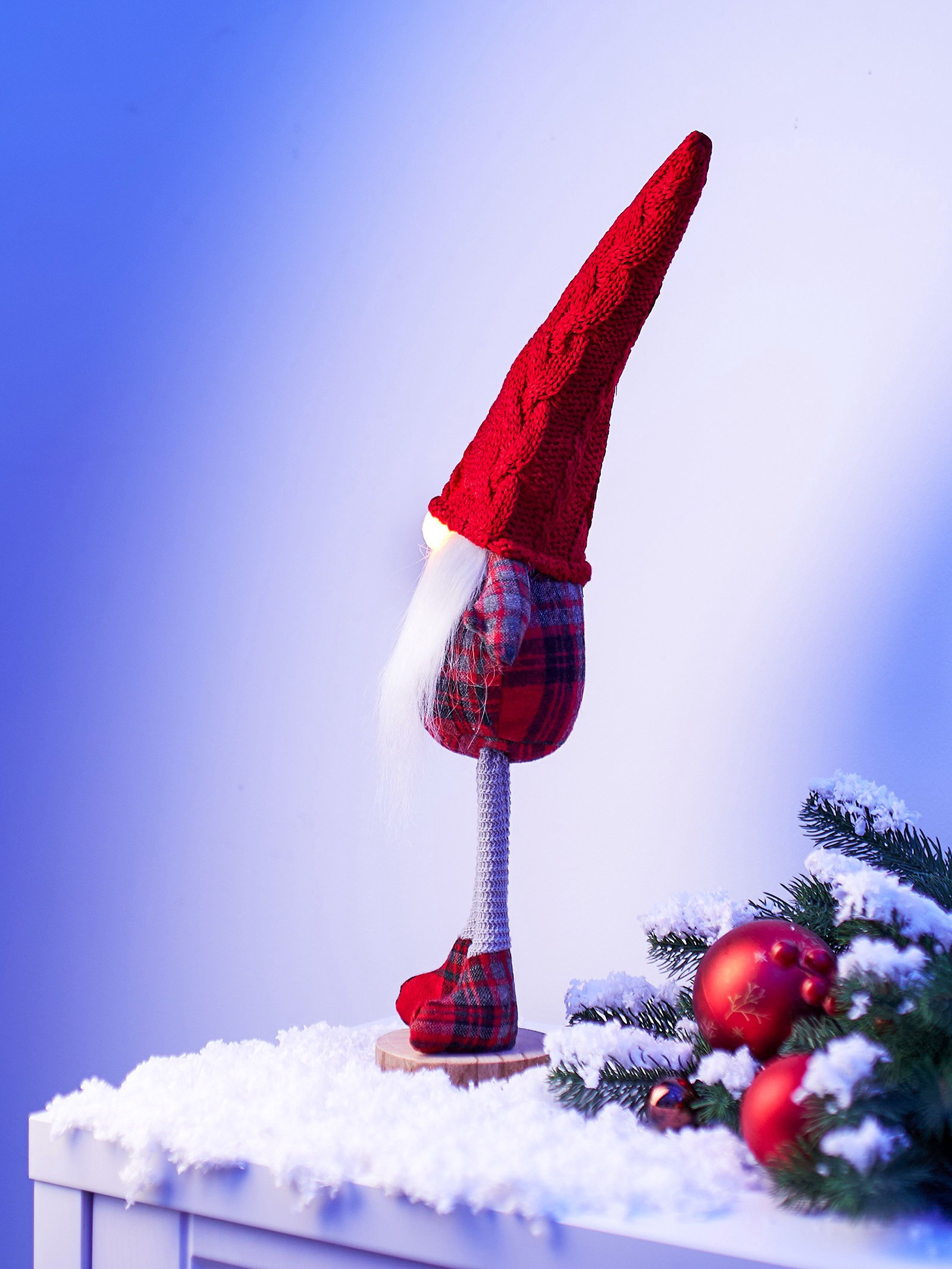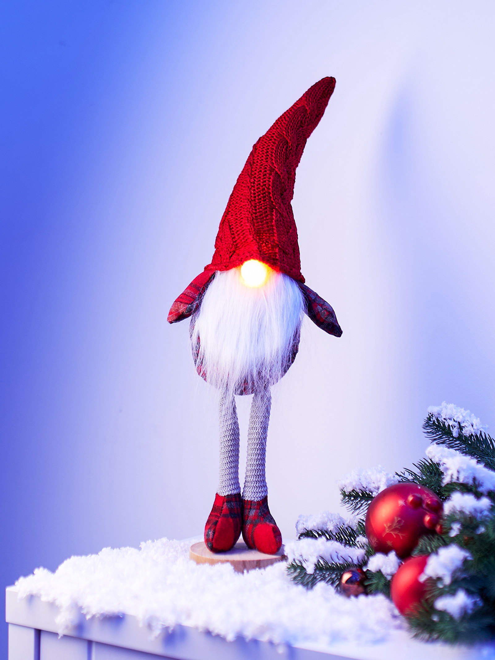Фигура "Гном в красном" 55 см, текстиль, 1 LED, от батареек AG13x3, свечение тёплое белое, 10x13x55 см., Luazon Lighting, Китай
