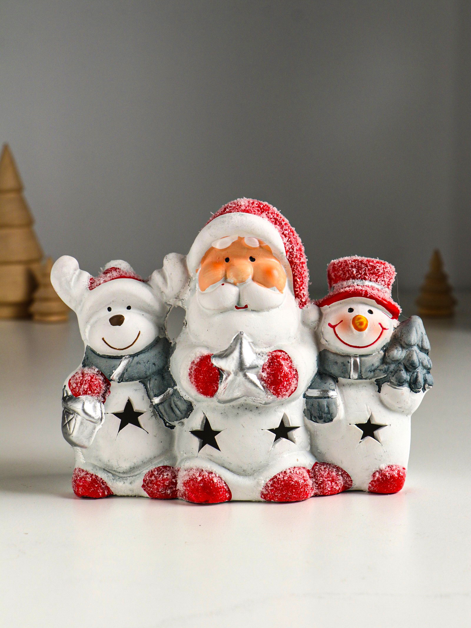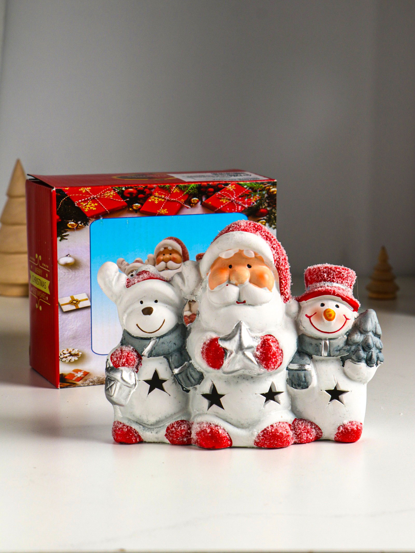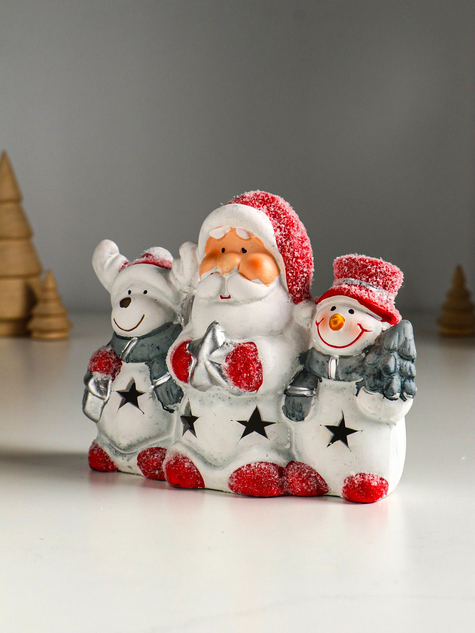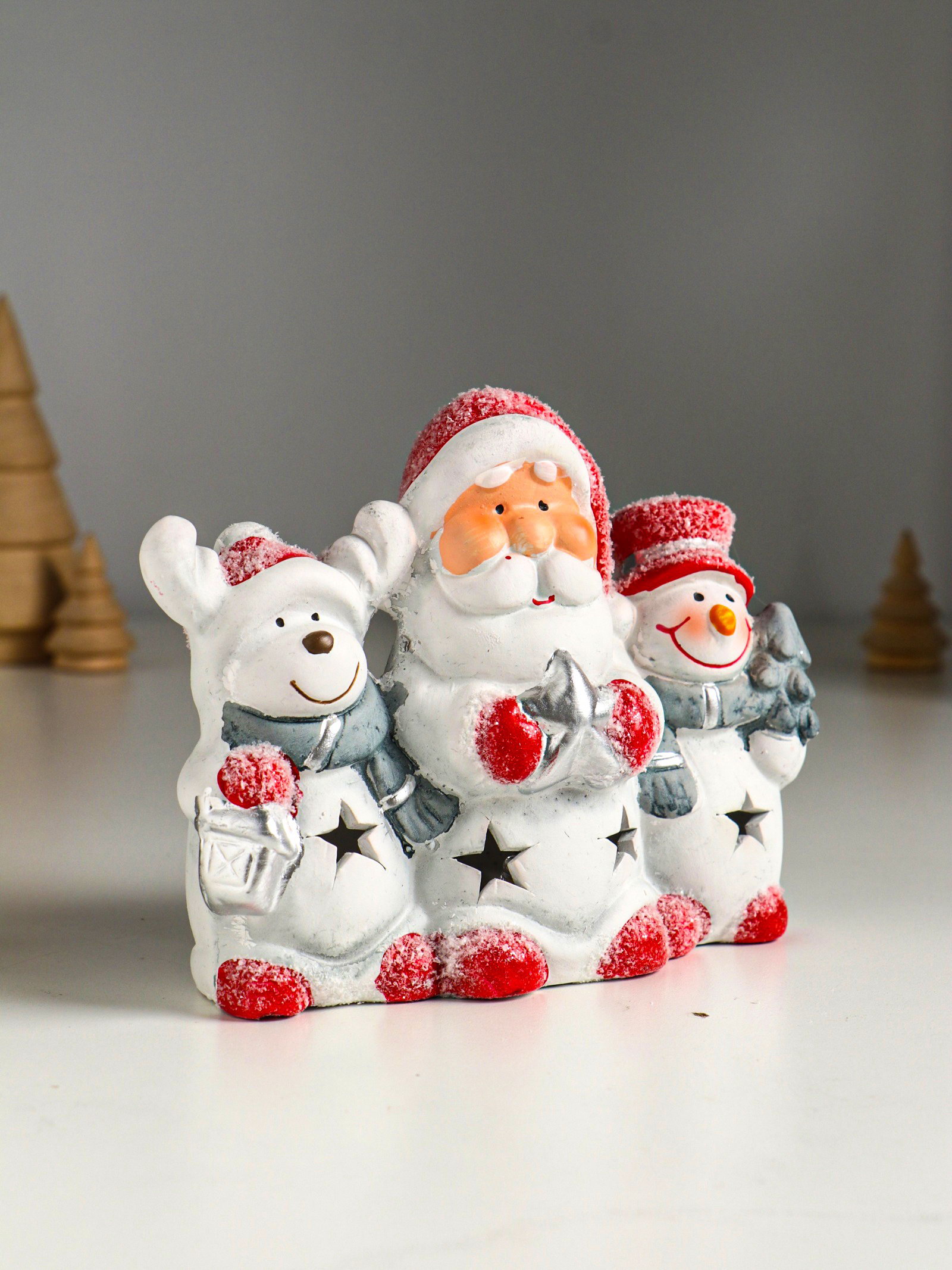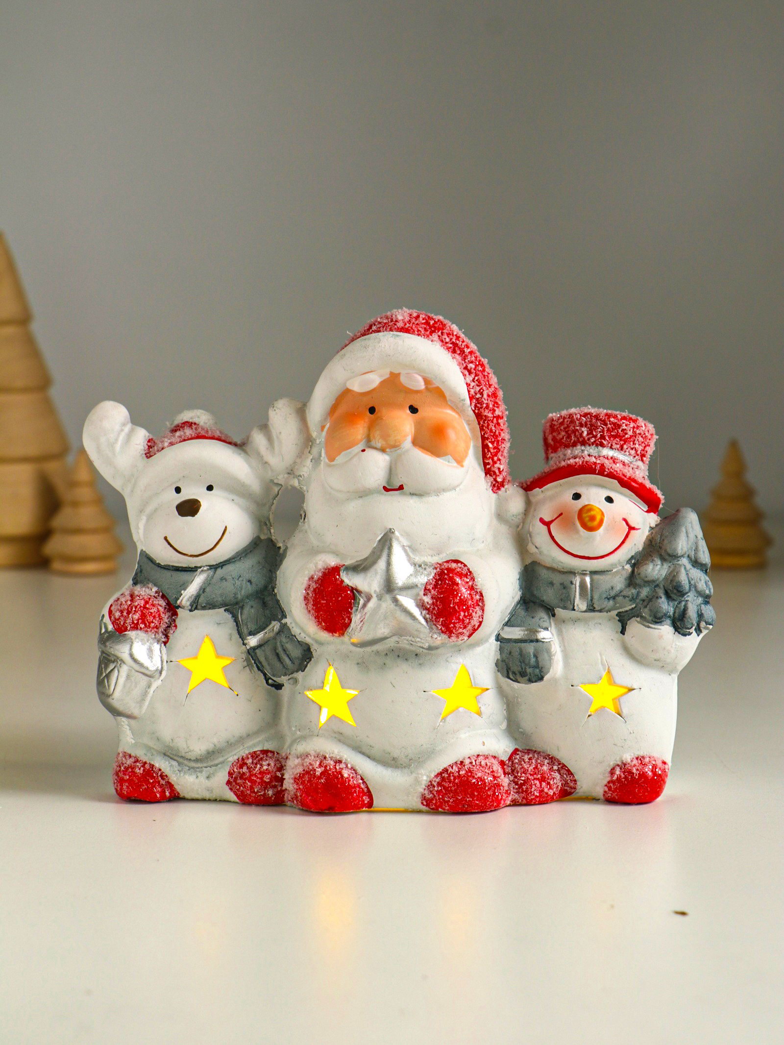 Фигурка светящаяся "Дед Мороз, снеговик и лосик", керамика, 15.5x5.8x11.5 см, 5.8x15.5x11.5 см., Китай