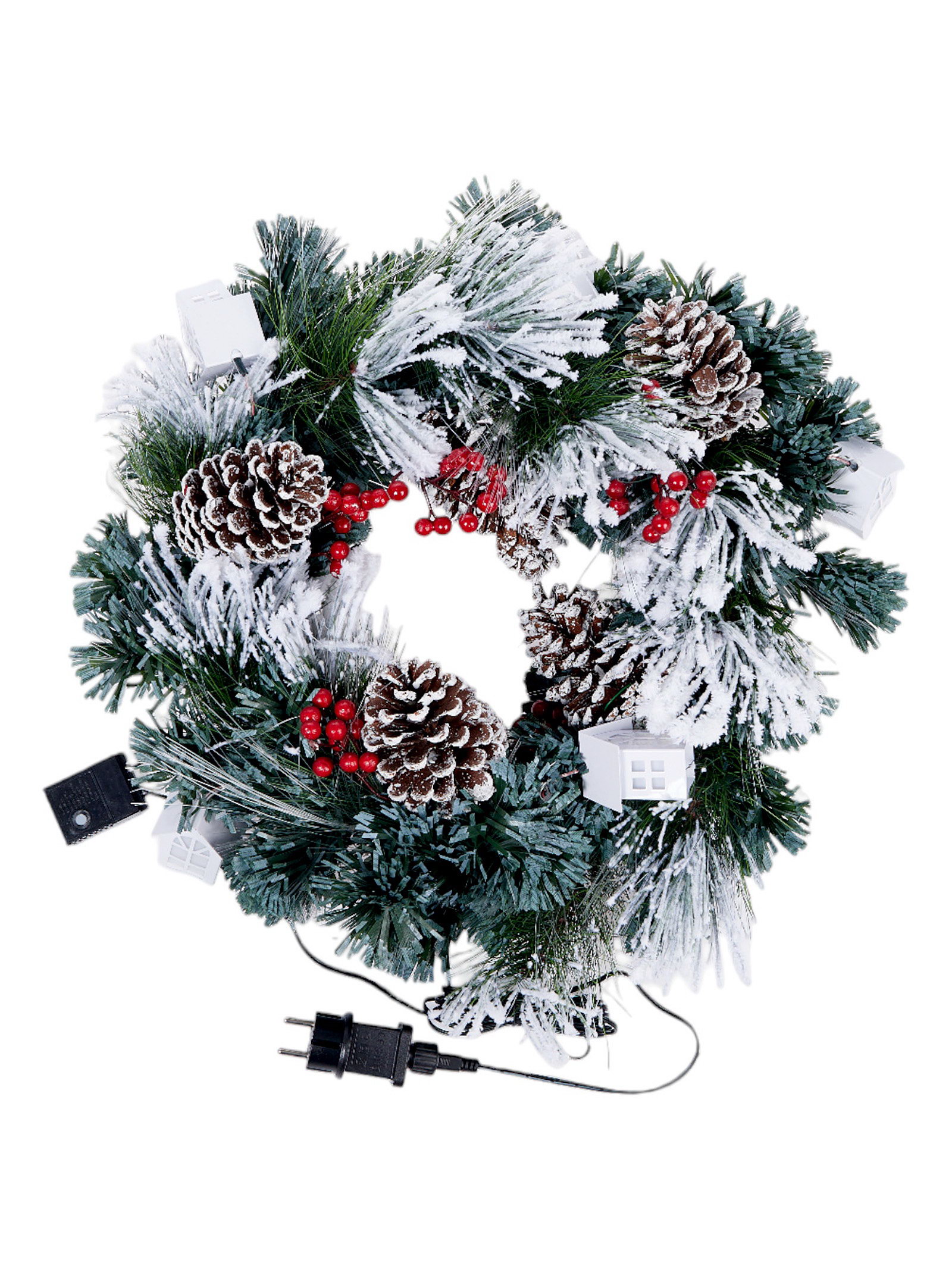 Венок фиброоптический "Заснеженный", d=50 см, 8 режимов, 50x20x50 см., Зимнее волшебство, Китай