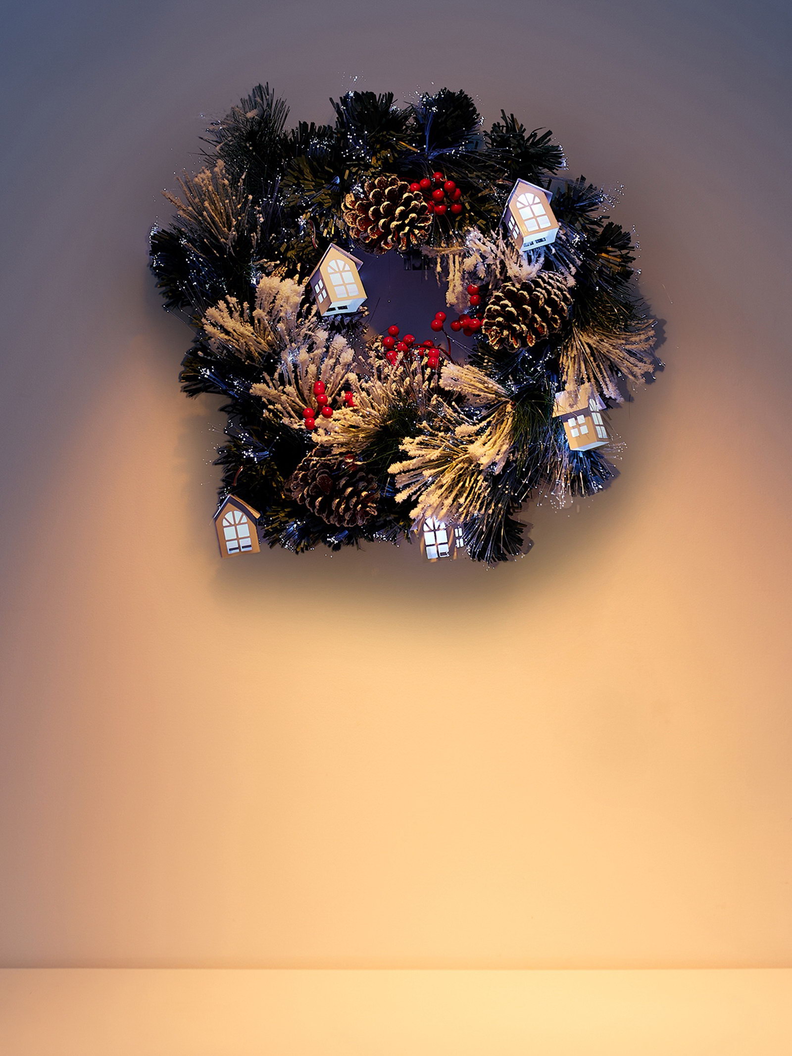 Особенности декора: Ёлочные украшения, Подсветка, Шишки, Ягоды Размер упаковки: 45 x 10 x 45 см. tnved: 9505109000 Высота, см: 50 Цвет декора: Разноцветный Цвет хвои: Зелёный Тип ёлки: Подвесная Крепление веток: Отгибающиеся Тип веток: ПВХ Форма фигуры: Венок Применение: Внутреннее Размер, см: 50 x 50 Режим работы: Задаётся контроллером Цвет свечения: Белый Тип питания: От сети 220 В Тематика праздника: Новый год Фиброоптический венок диаметром 50 см украшен зелёной ПВХ-хвоей и разноцветными деталями, включая шишки и ягоды. Восемь режимов подсветки создают эффект мерцающего снега, оживляя интерьер и создавая атмосферу зимнего праздника. Отгибающиеся ветки позволяют легко разместить венок на двери, окне или стене. | ||