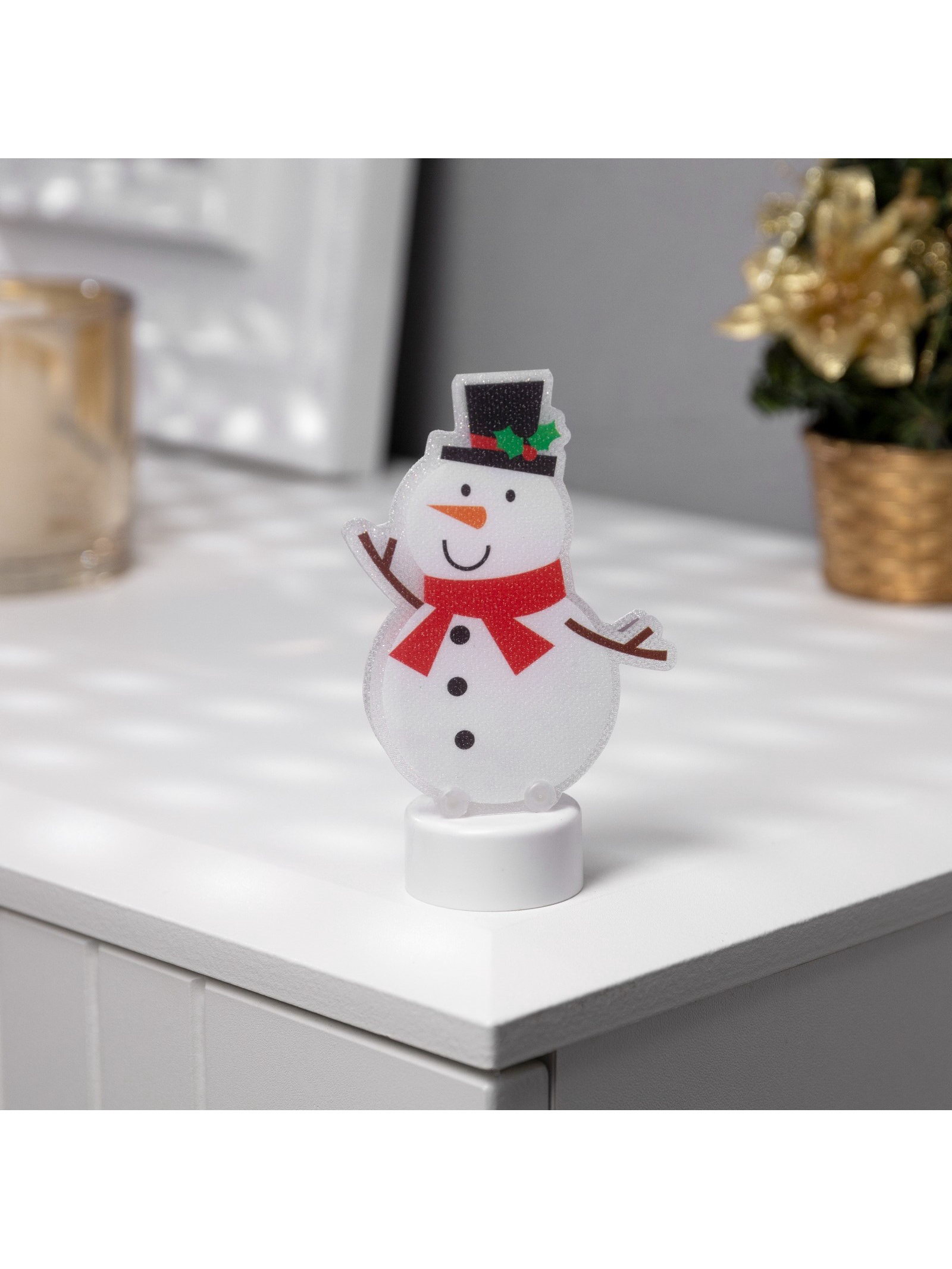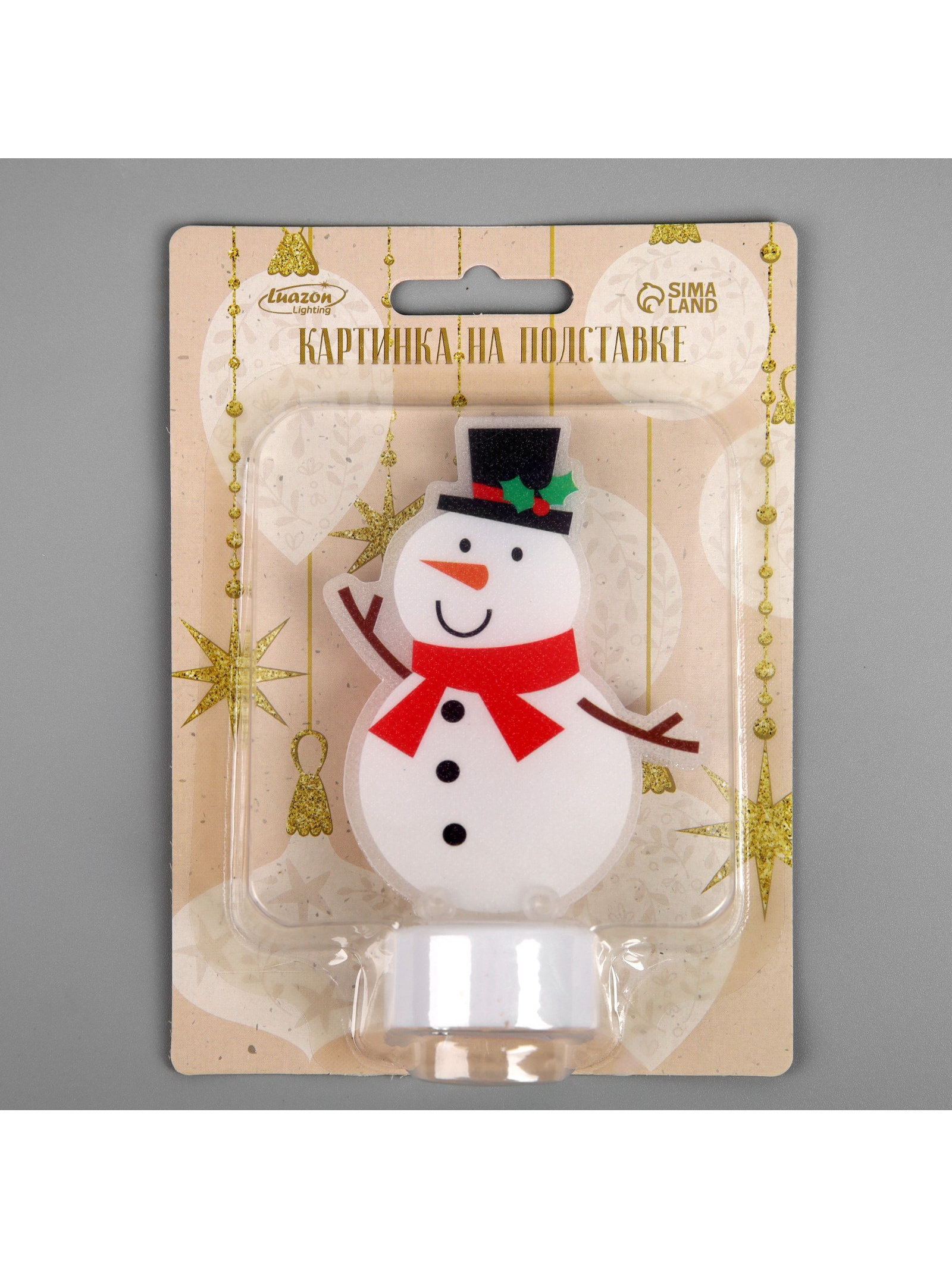 Световая картинка на подставке "Снеговик", 11 см, 1 LED, от батареек, свечение тёплое белое, 3x11x2 см., Luazon Lighting, Китай