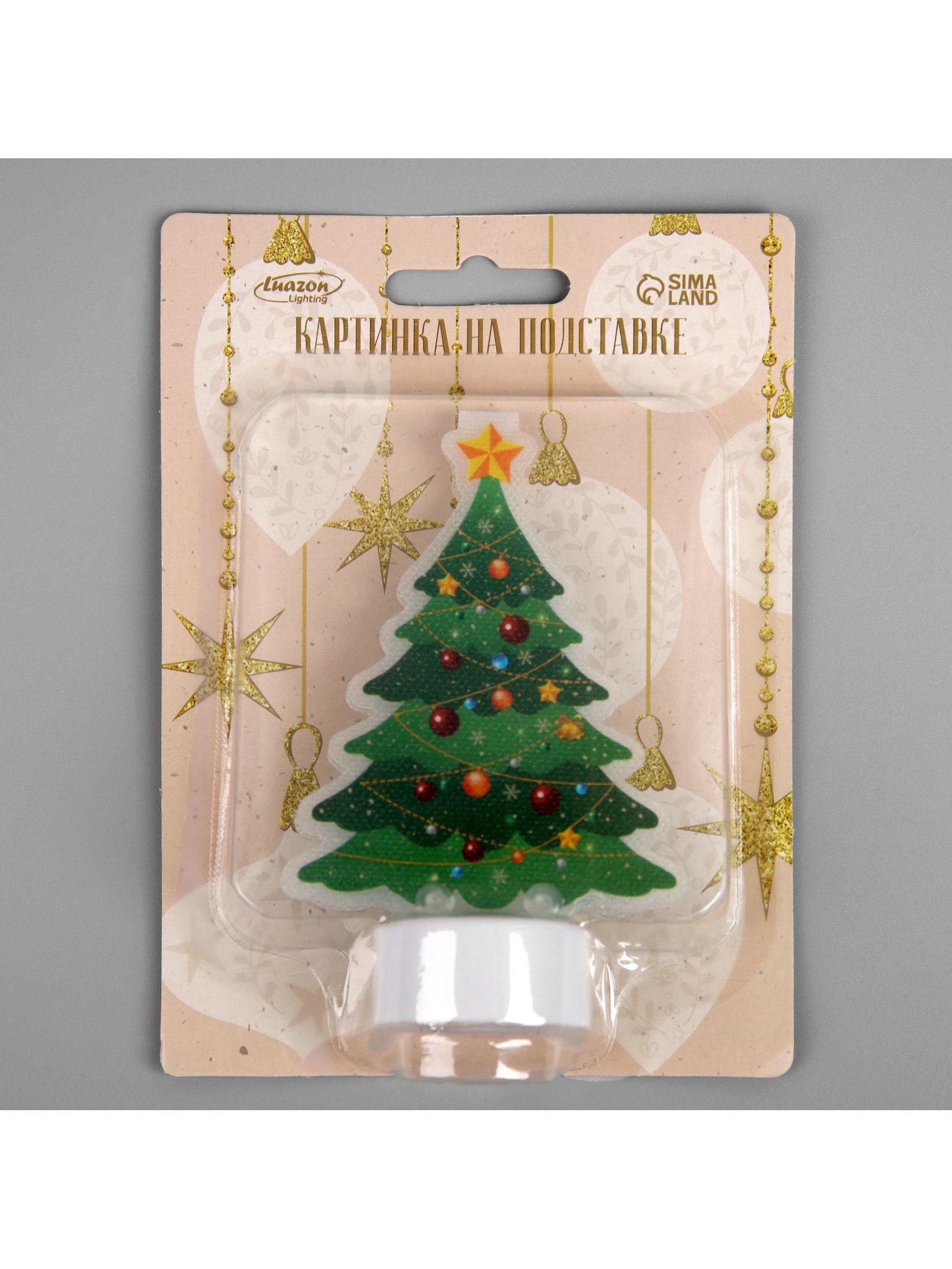 Световая картинка на подставке "Ёлочка", 11 см, 1 LED, от батареек, свечение тёплое белое, 3x11x2 см., Luazon Lighting, Китай