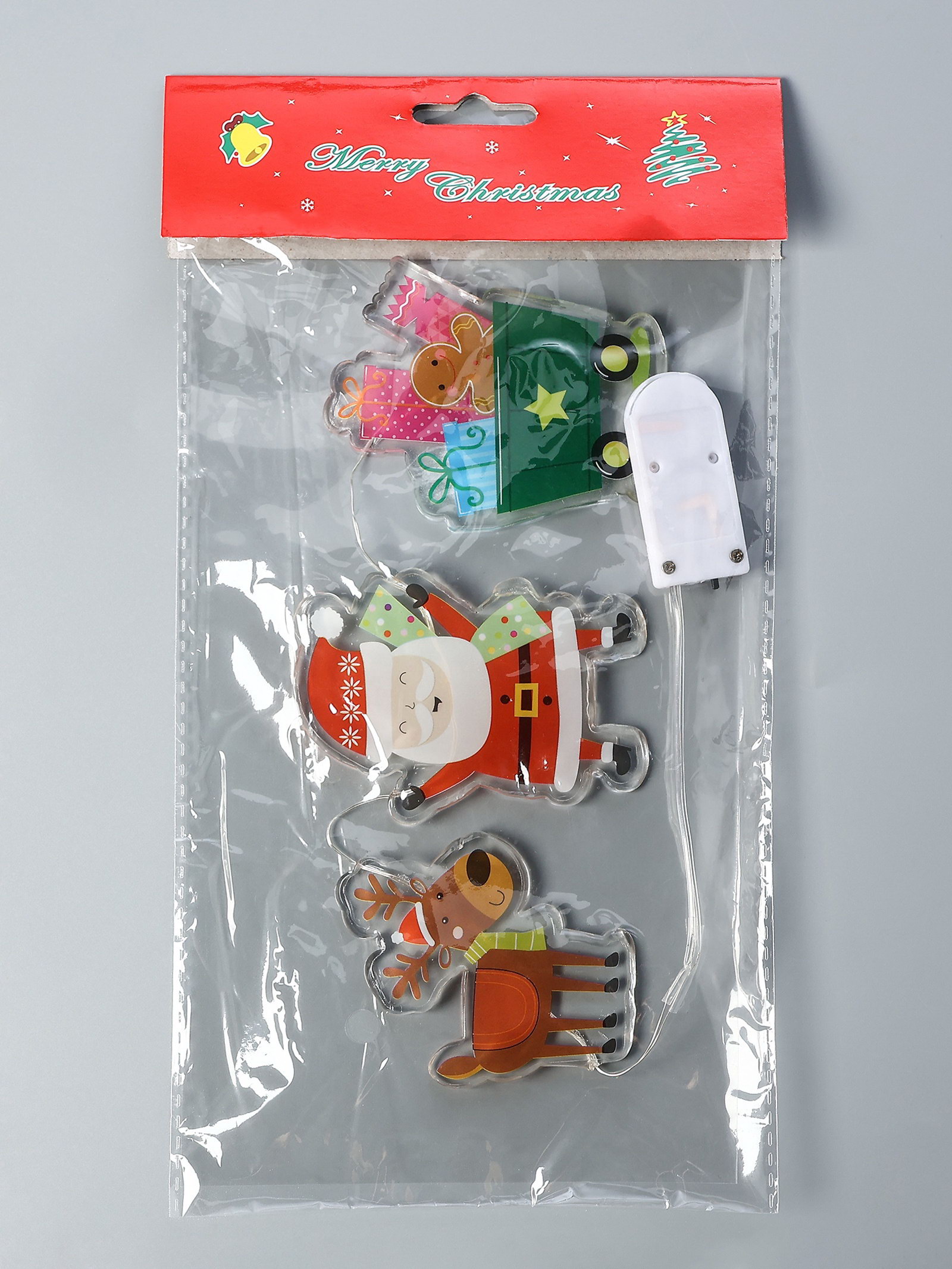 Светодиодная наклейка на окна "Дед Мороз с подарками", 0.5 м, 3 LED, от батареек CR2032x2, свечение тёплое белое, 15x30x0.5 см., Luazon Lighting, Китай