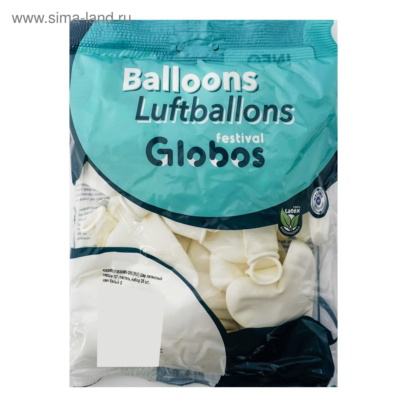 Шар латексный 12", сердце, пастель, набор 25 шт., цвет белый, 13x17 см., GLOBOS FESTIVAL S.A., Испания