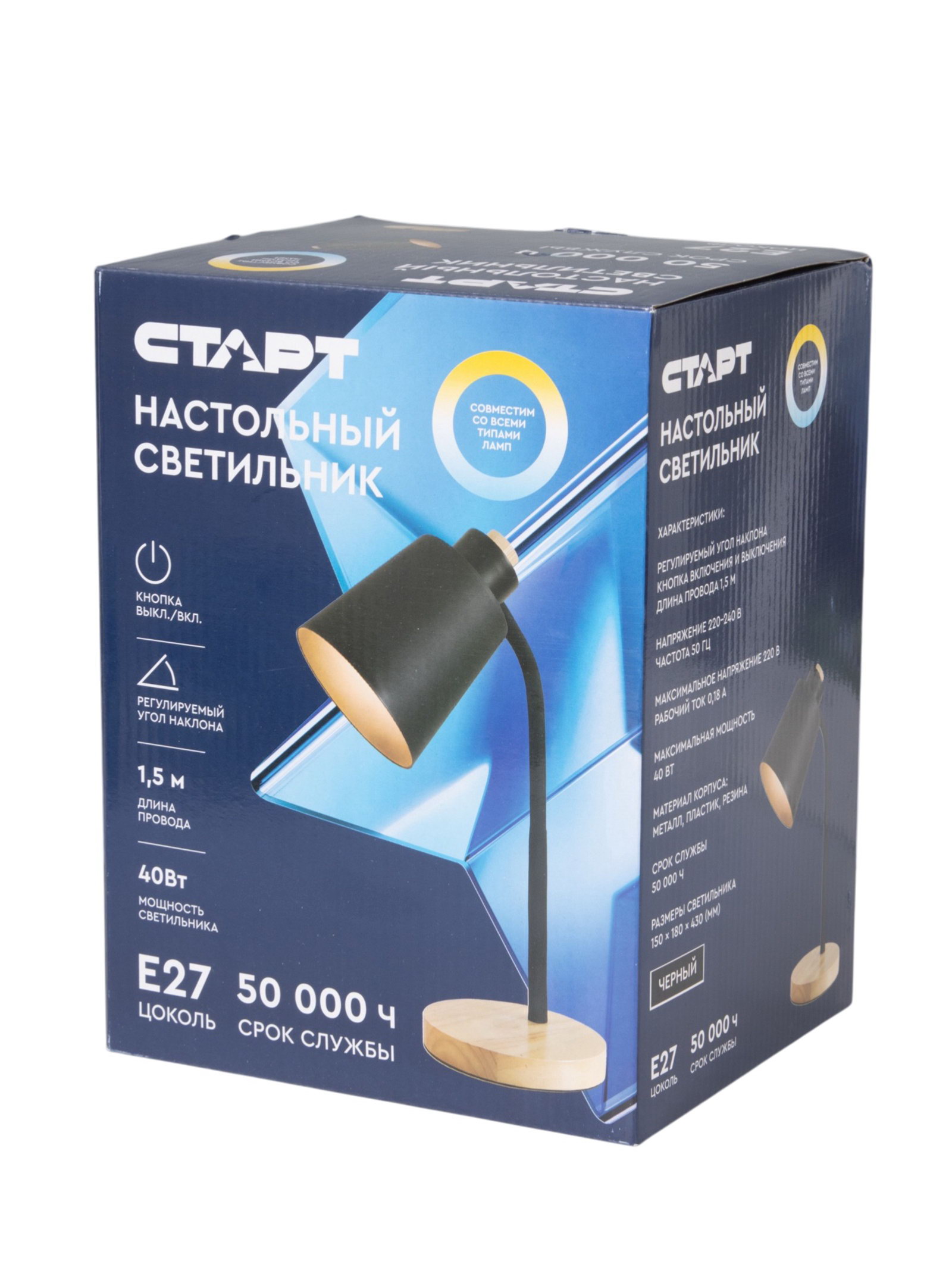 Лампа настольная CT902, E27, 1x40 Вт, 15x18x43 см, чёрная, СТАРТ, Китай