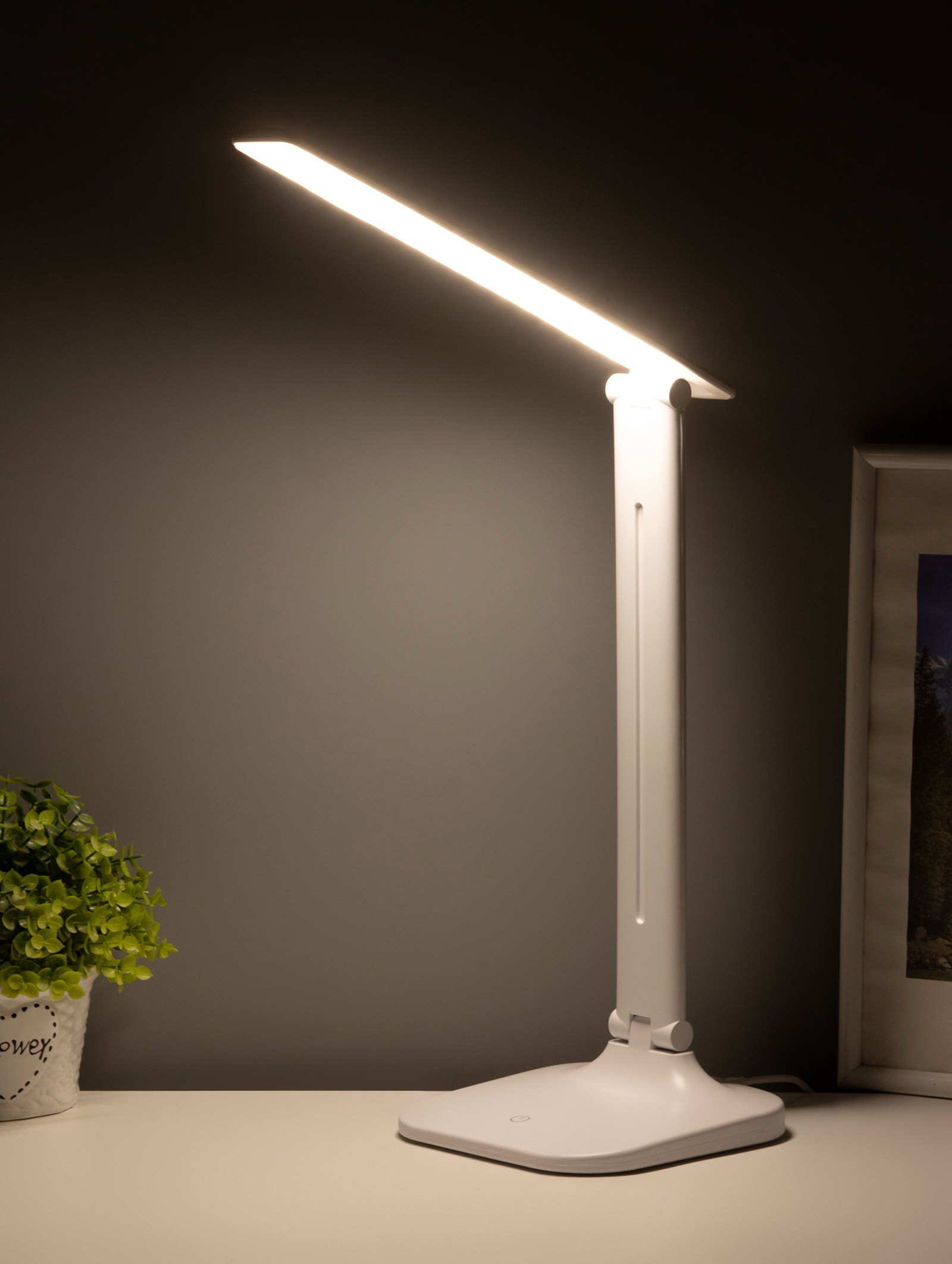 Размер упаковки: 6 x 39.5 x 13 см. tnved: 9405210000 Температурное ограничение: Нет Материал основания: Пластик Материал рассеивателя: Пластик Вид лампы: Светодиодная Длина, см: 29 Высота, см: 48 Цвет основания: Белый Количество ламп: 1 Мощность на цоколь, Вт: 8 Направление рассеивателя: Вниз Тип питания: От USB Цоколь: Встроенные LED Тип крепления: На подставке Тип рассеивателя: Без плафонов Особенности светильника: Без особенностей Вид: Офисная/Школьная Управление светильником: С выключателем на корпусе Оттенок рассеивателя: Светлые тона Ширина, см: 15 Цвет рассеивателя: Белый Тип источника освещения: Встроенная LED Световой поток, лм: 500 Настольная лампа с LED?подсветкой мощностью 8? Вт создаёт мягкое и нейтральное освещение с цветовой температурой около 4500?К и световым потоком примерно 500? Лм, что делает её идеальным решением для организации комфортного рабочего пространства дома или в офисе. Компактные размеры 48x29x15 ?см и белый корпус из пластика позволяют легко вписать её в любой интерьер, а питание от USB делает эксплуатацию удобной и универсальной. | ||