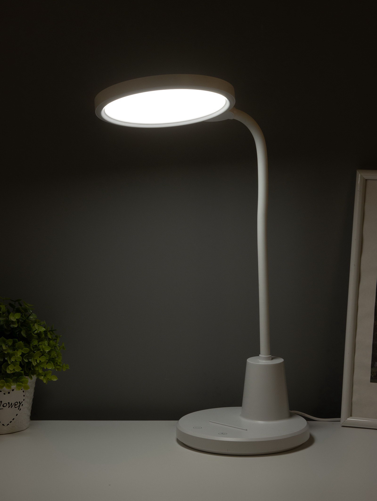 Размер упаковки: 16 x 30 x 16 см. tnved: 9405210000 Температурное ограничение: Нет Материал основания: Пластик Вид лампы: Светодиодная Высота, см: 50 Длина, см: 16 Цвет основания: Белый Тип крепления: На подставке Управление светильником: С выключателем на корпусе Оттенок рассеивателя: Светлые тона Цоколь: Встроенные LED Материал рассеивателя: Пластик Количество ламп: 1 Мощность на цоколь, Вт: 12 Направление рассеивателя: В стороны Тип питания: От USB Вид: Офисная/Школьная Тип рассеивателя: Без плафонов Особенности светильника: Без особенностей Ширина, см: 16 Световой поток, лм: 500 Тип источника освещения: Встроенная LED Цвет рассеивателя: Белый Настольная лампа с LED?освещением мощностью 12? Вт создаёт яркий и равномерный световой поток до 500? Лм с регулируемой цветовой температурой от 3000 до 6000?К, что позволяет адаптировать освещение под разные задачи от тёплого уютного света до более прохладного, комфортного для работы и учебы. Белый корпус из прочного пластика и компактные размеры 48x29x15 ?см делают её универсальным решением для дома, офиса или учебной зоны. | ||