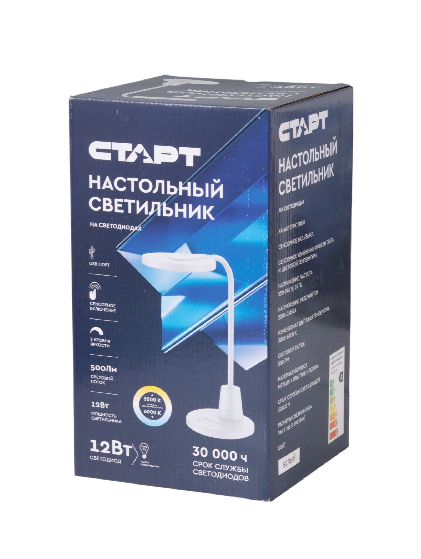 Лампа настольная CT91, LED, 12 Вт, 3000-6000К, 16x16x50 см, белая, СТАРТ, Китай