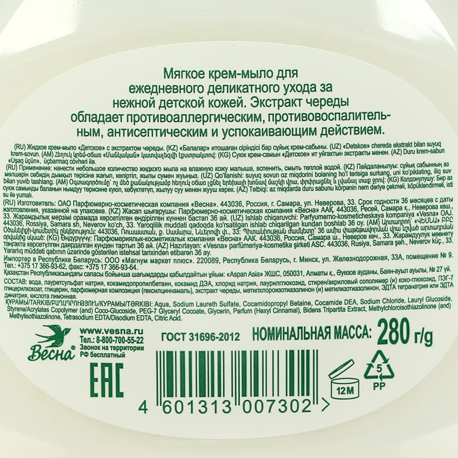 Детское крем-мыло с экстрактом череды, 280 мл, 5x8.5x14.5 см., Весна, Россия