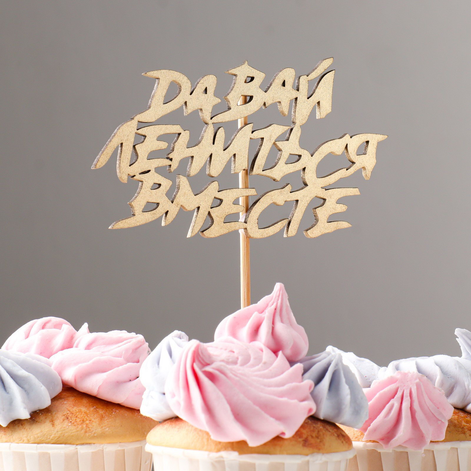 Топпер "Давай лениться вместе" на подвесе, золотой, Дарим Красиво, Россия