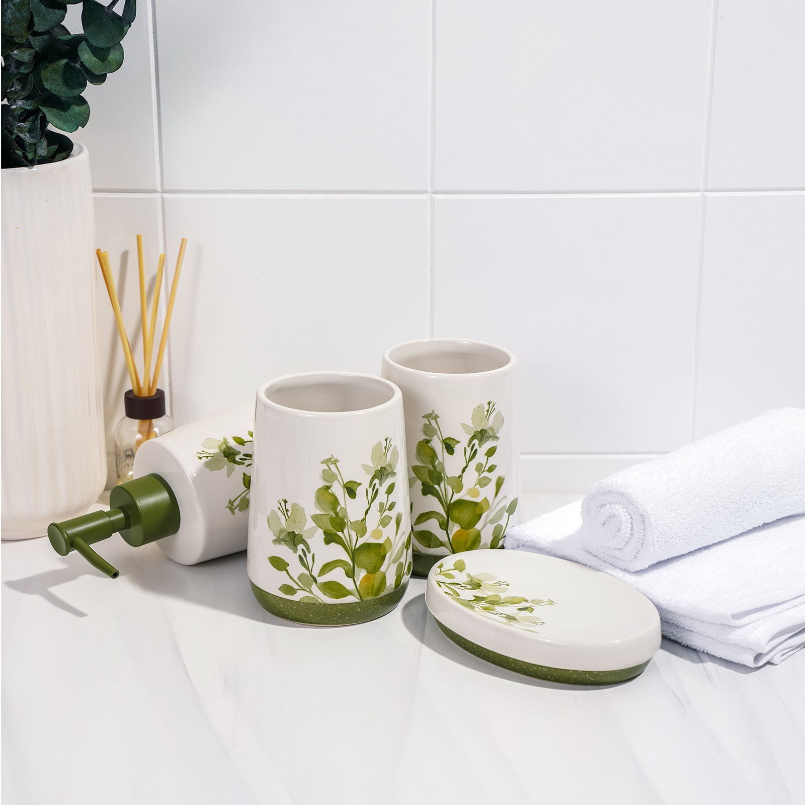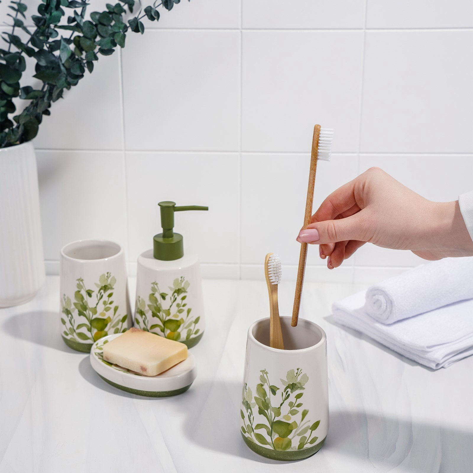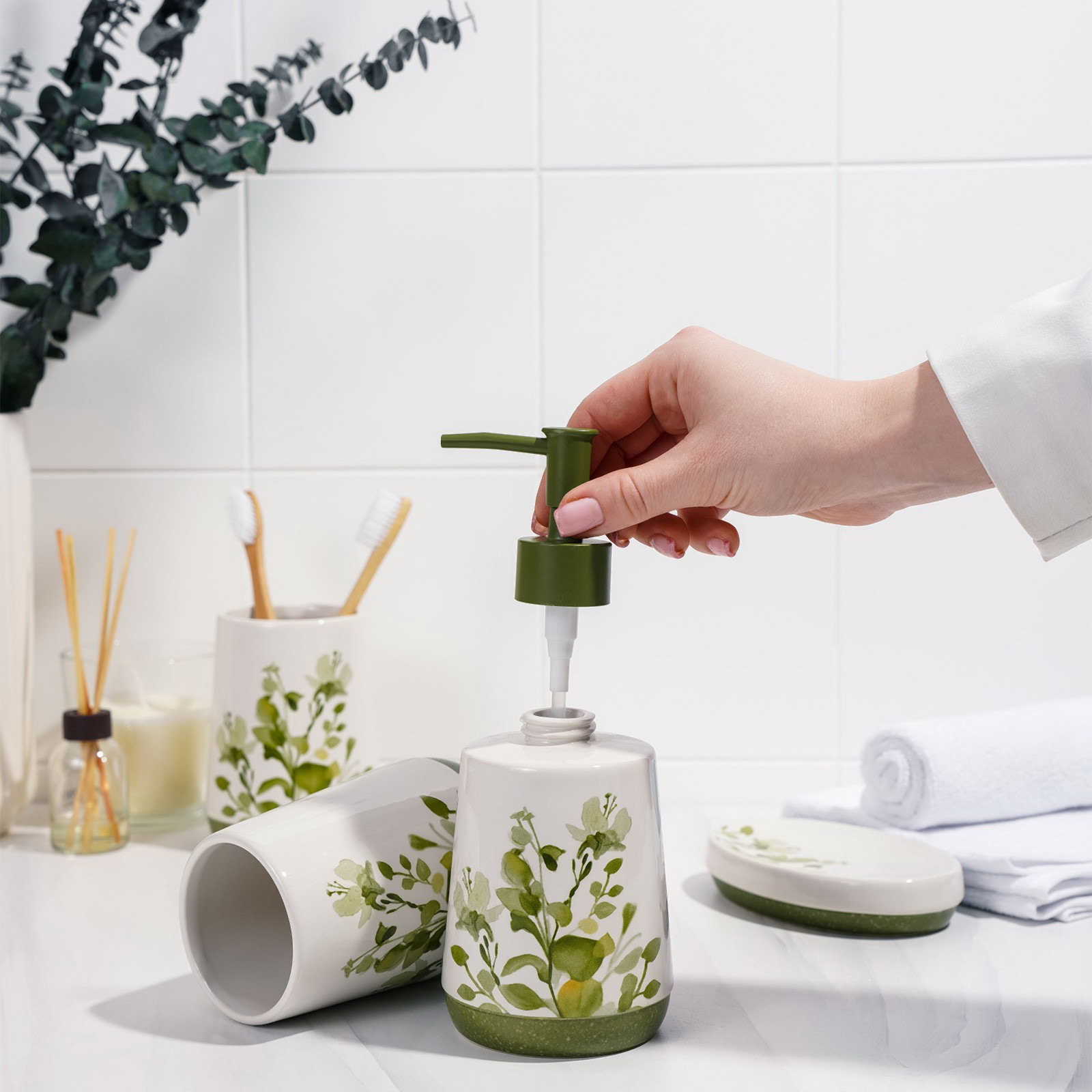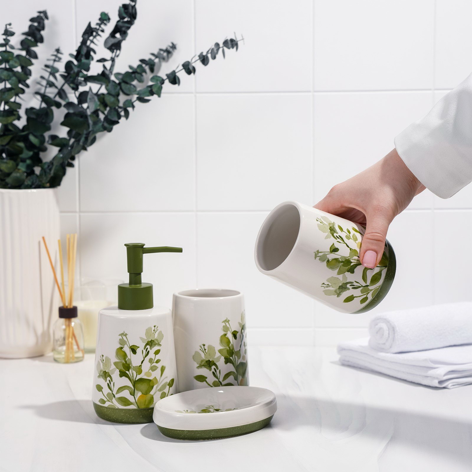 Размер упаковки: 21 x 8.5 x 27 см. tnved: 6912008700 Рисунок: Да В наборе, шт.: 4 Цвет: Зелёный Тематика: Цветочно-растительная Набор: Да Запрет реализации по сегментам: 00000000485 Ванную комнату мы посещаем несколько раз в день. Поэтому хочется, чтобы она была уютной, стильной и заряжала по утрам бодростью и хорошим настроением. Секрет её удачного оформления яркие аксессуары! Набор аксессуаров организует пространство и станет стильным украшением Вашей ванной комнаты. За счет сдержанного дизайна данный керамический набор в ванную подойдет к любому дизайну ванной комнаты. Набор состоит из 4 предметов: 2 стакана, мыльница, дозатор. Преимущества: