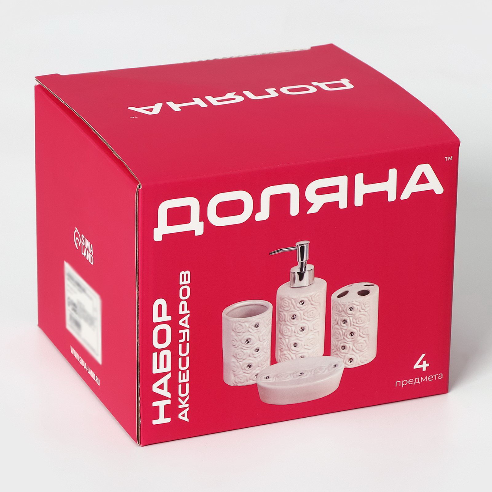 Аксессуары для ванной "Дерево", 4 предмета, дозатор 300 мл, мыльница, 2 стакана, белые, 14.5x15.8x13 см., Доляна, Китай