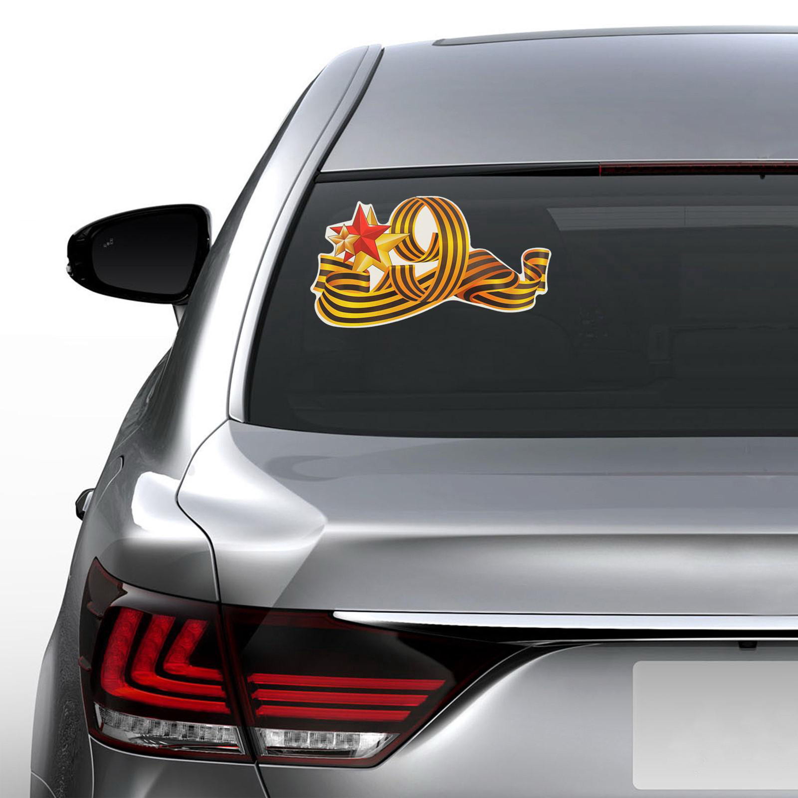 Наклейка на авто "9 мая", 255x135 мм, с георгиевской лентой, Сима-ленд, Россия