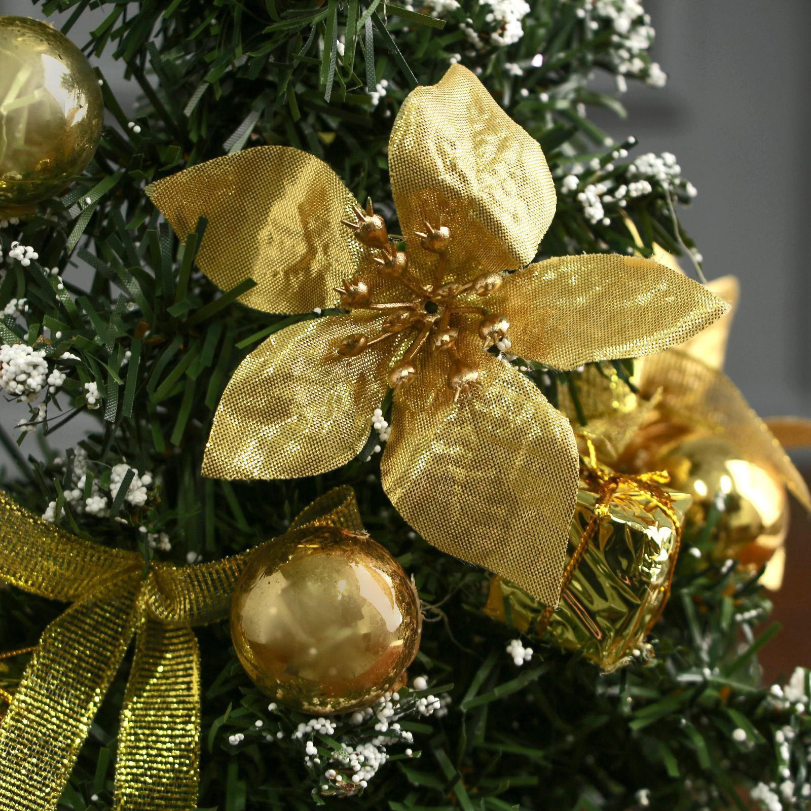 Искусственная ёлка настольная "Зимнее волшебство. Новогодний восторг", 30 см, золотая пуансетия, d нижнего яруса 13 см, ветки ПВХ отгибаются, 30 см., Зимнее волшебство, Китай