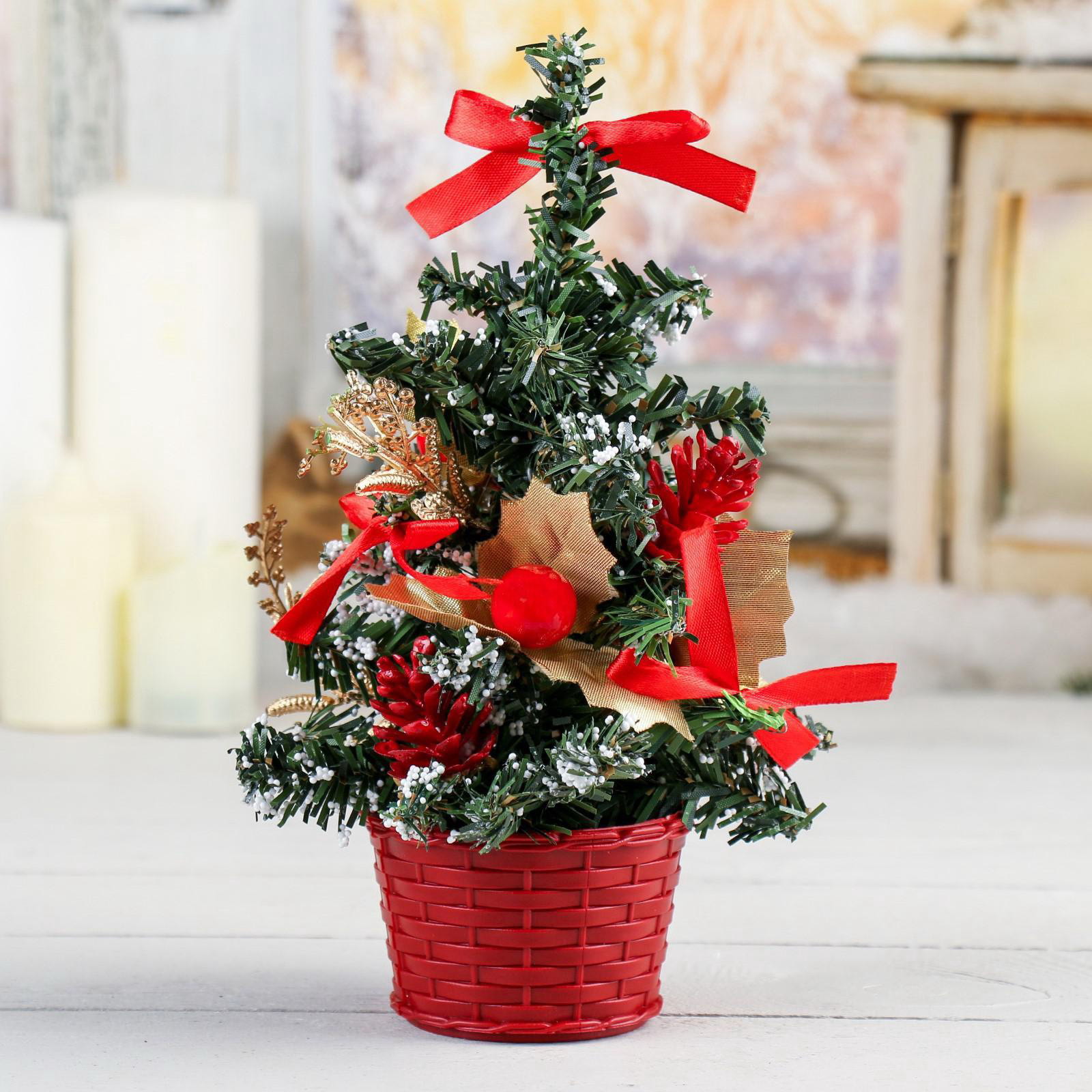 Искусственная ёлка настольная "Зимнее волшебство. Новогодний восторг", 20 см, красные банты, ветки ПВХ отгибаются, 20 см., Зимнее волшебство, Китай