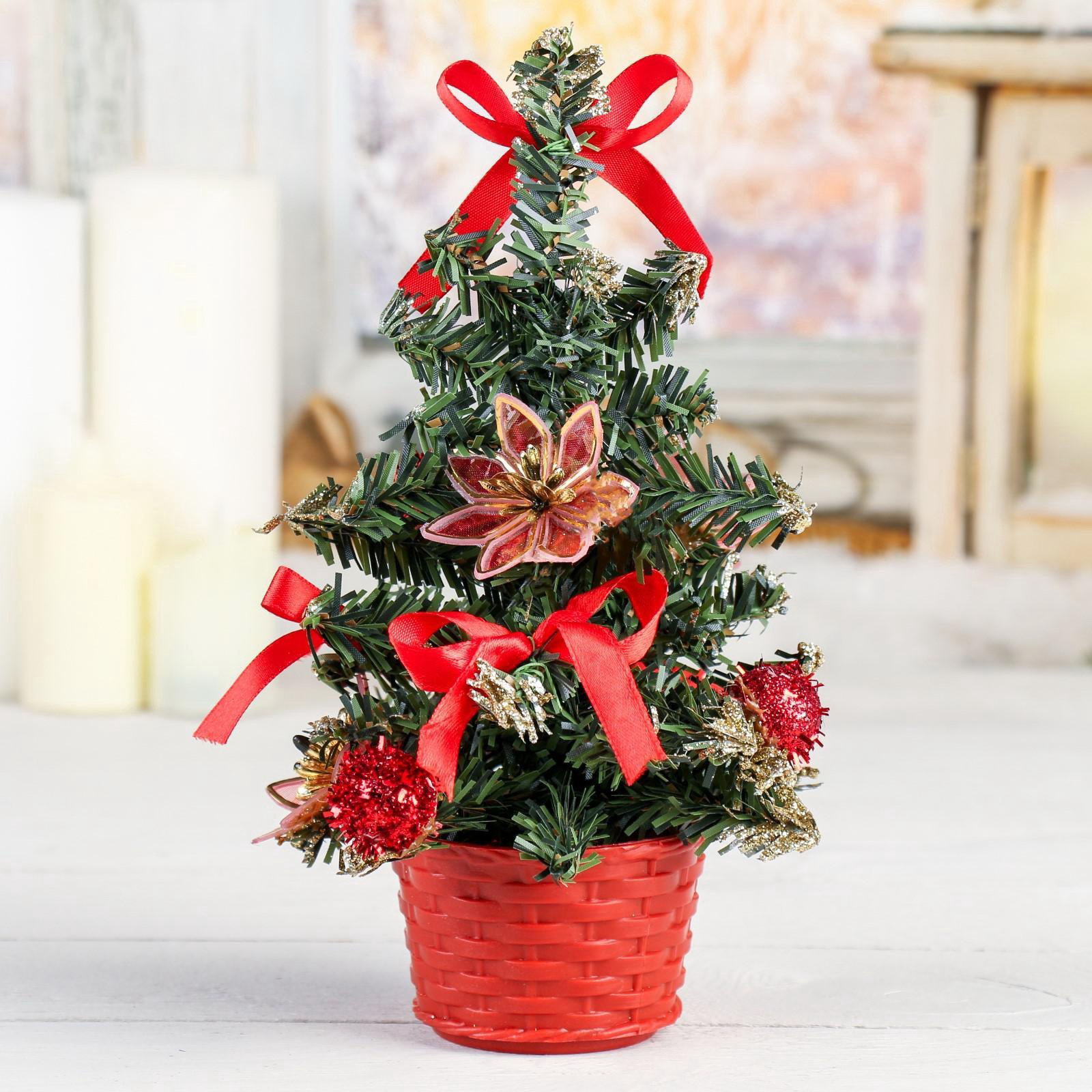 Искусственная ёлка настольная "Зимнее волшебство. Цветок", 20 см, красный, ПВХ ветки отгибаются, 20 см., Зимнее волшебство, Китай